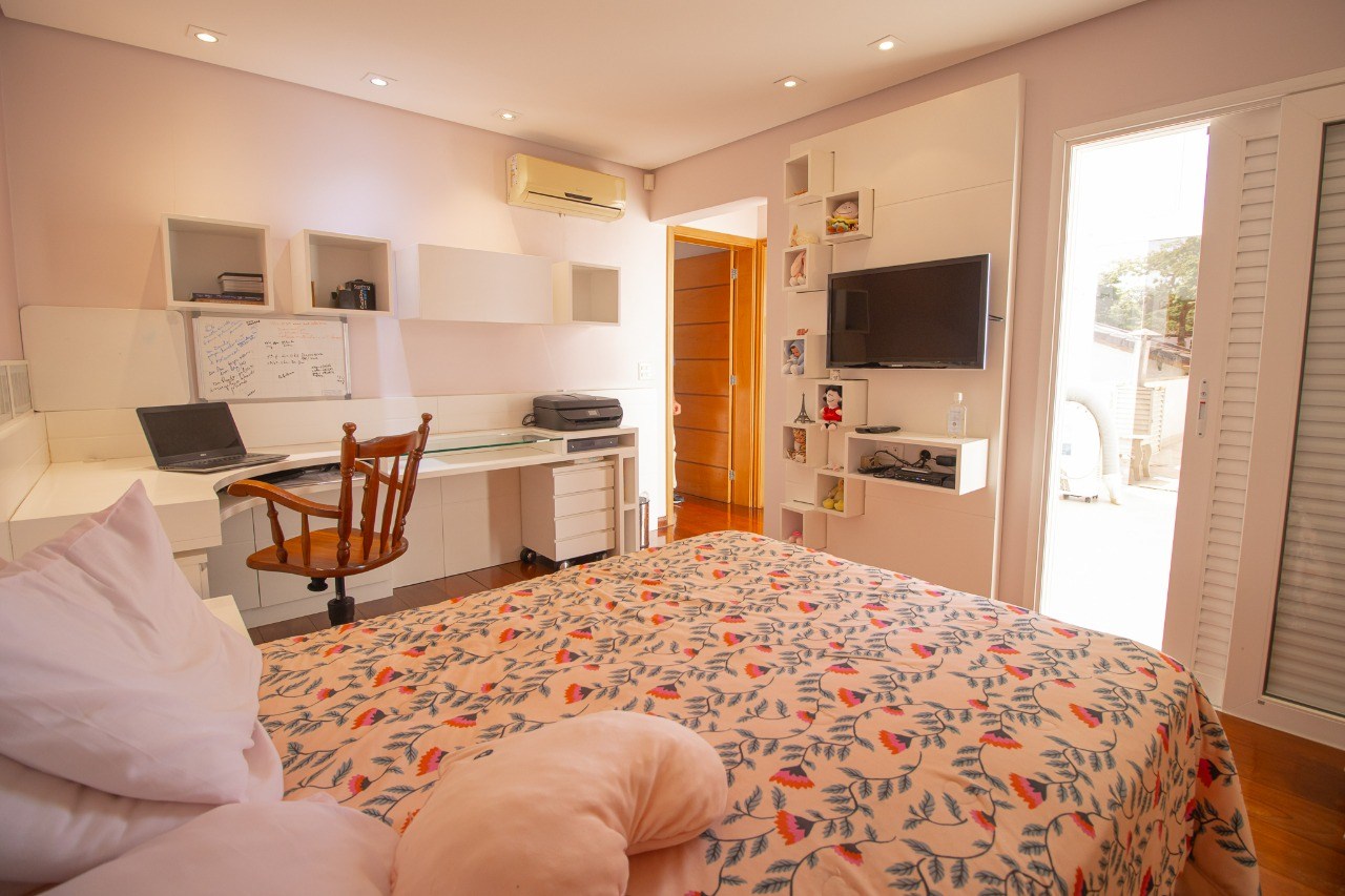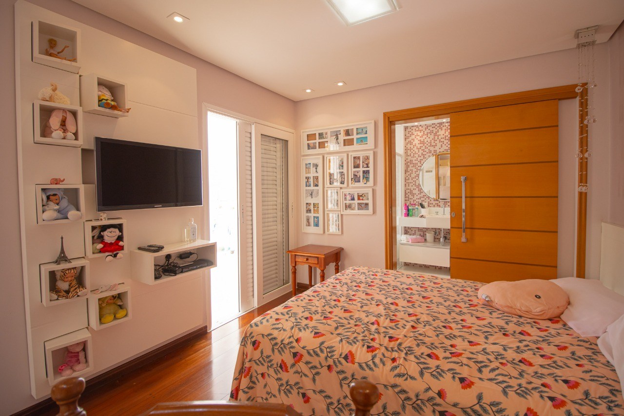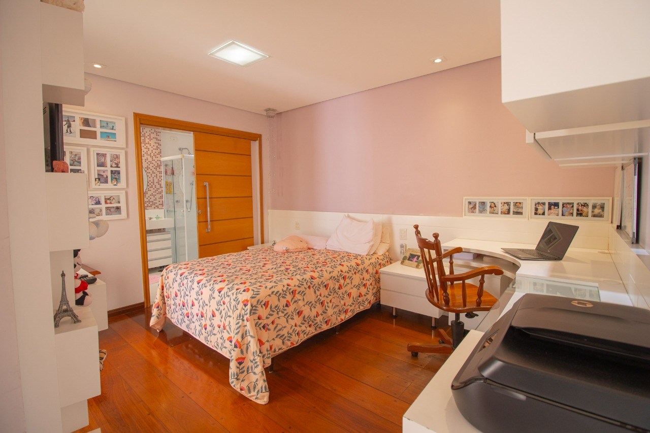 O imóvel possui 3 quartos, sendo 2 suítes, 5 banheiros e 3 vaga de garagem.