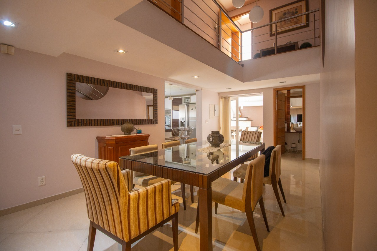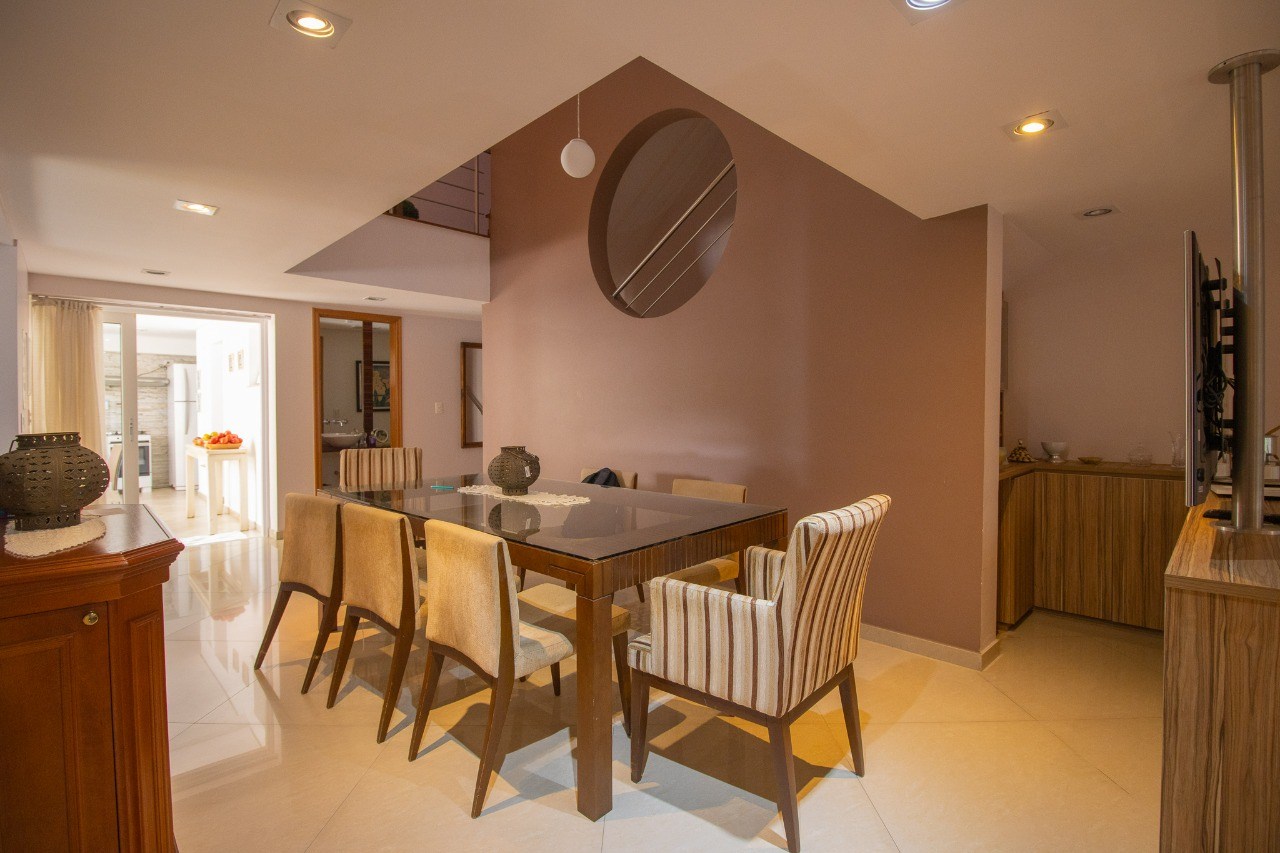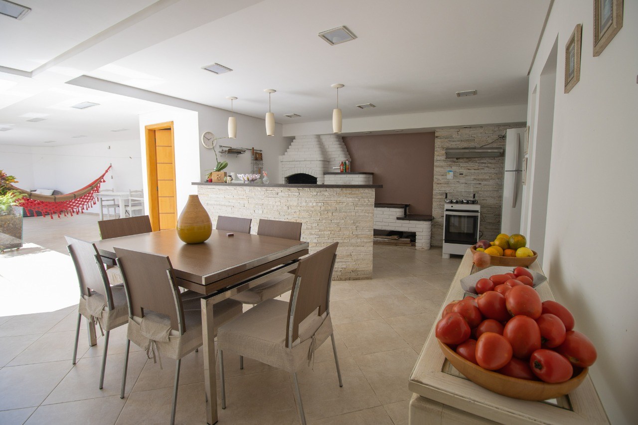 Sala de jantar integrada, próxima à cozinha.