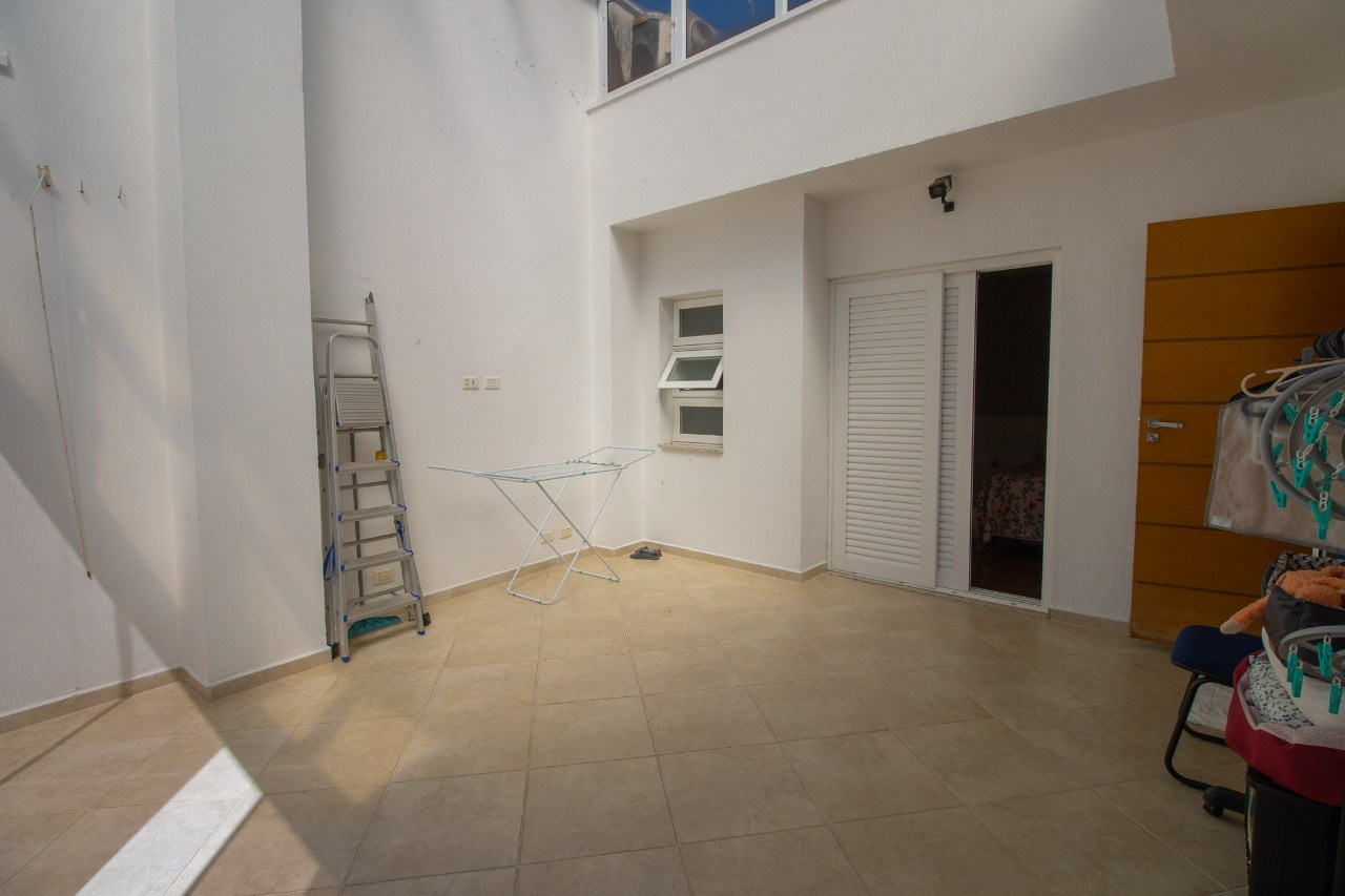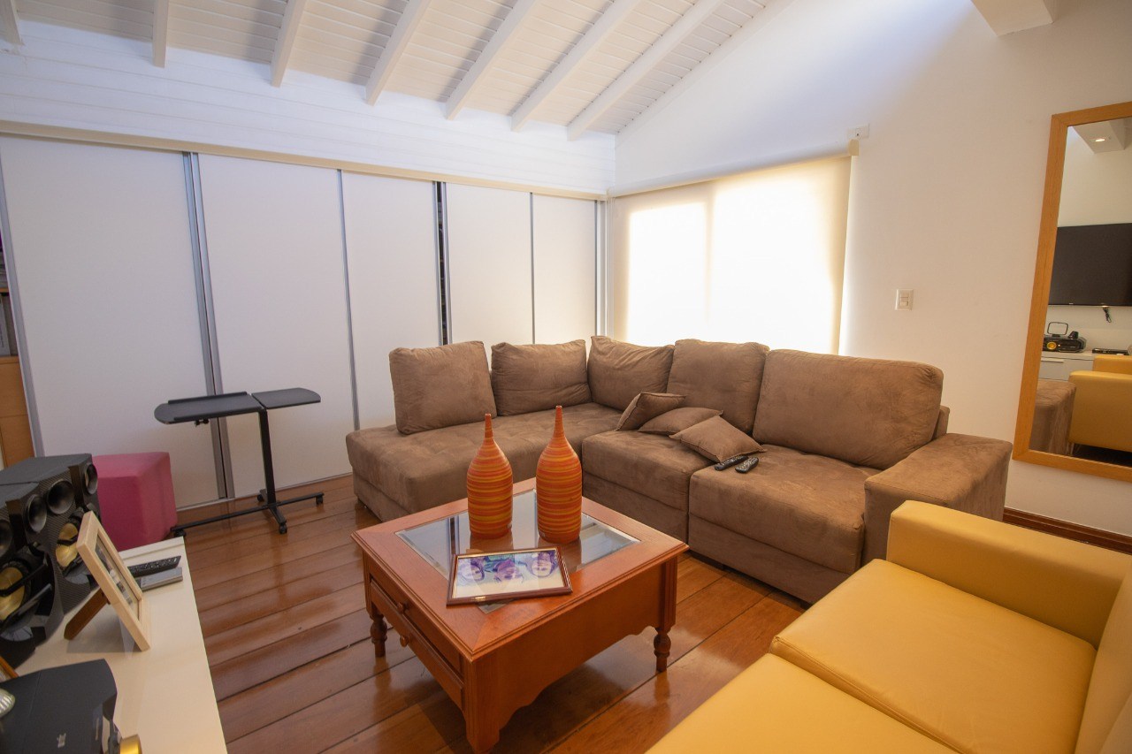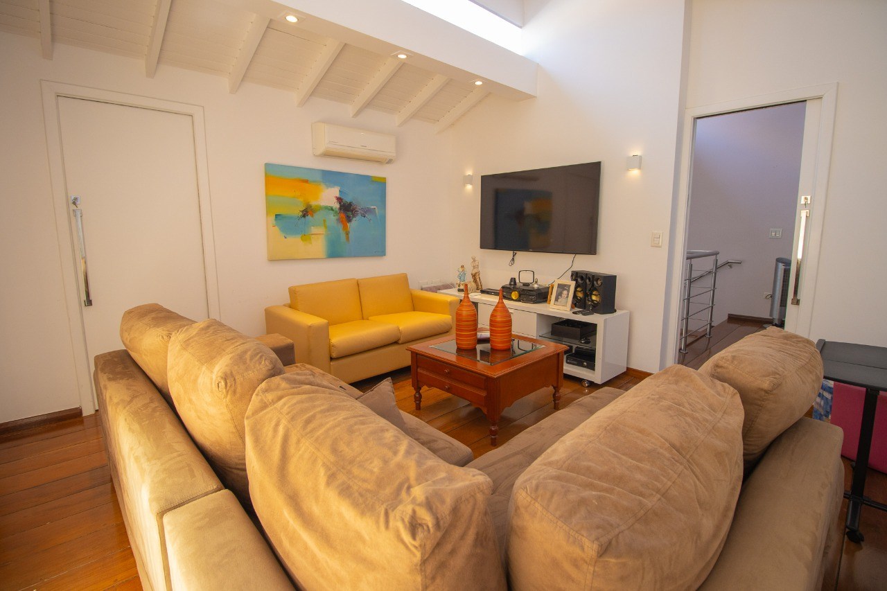 Sala de estar ampla e bem iluminada.