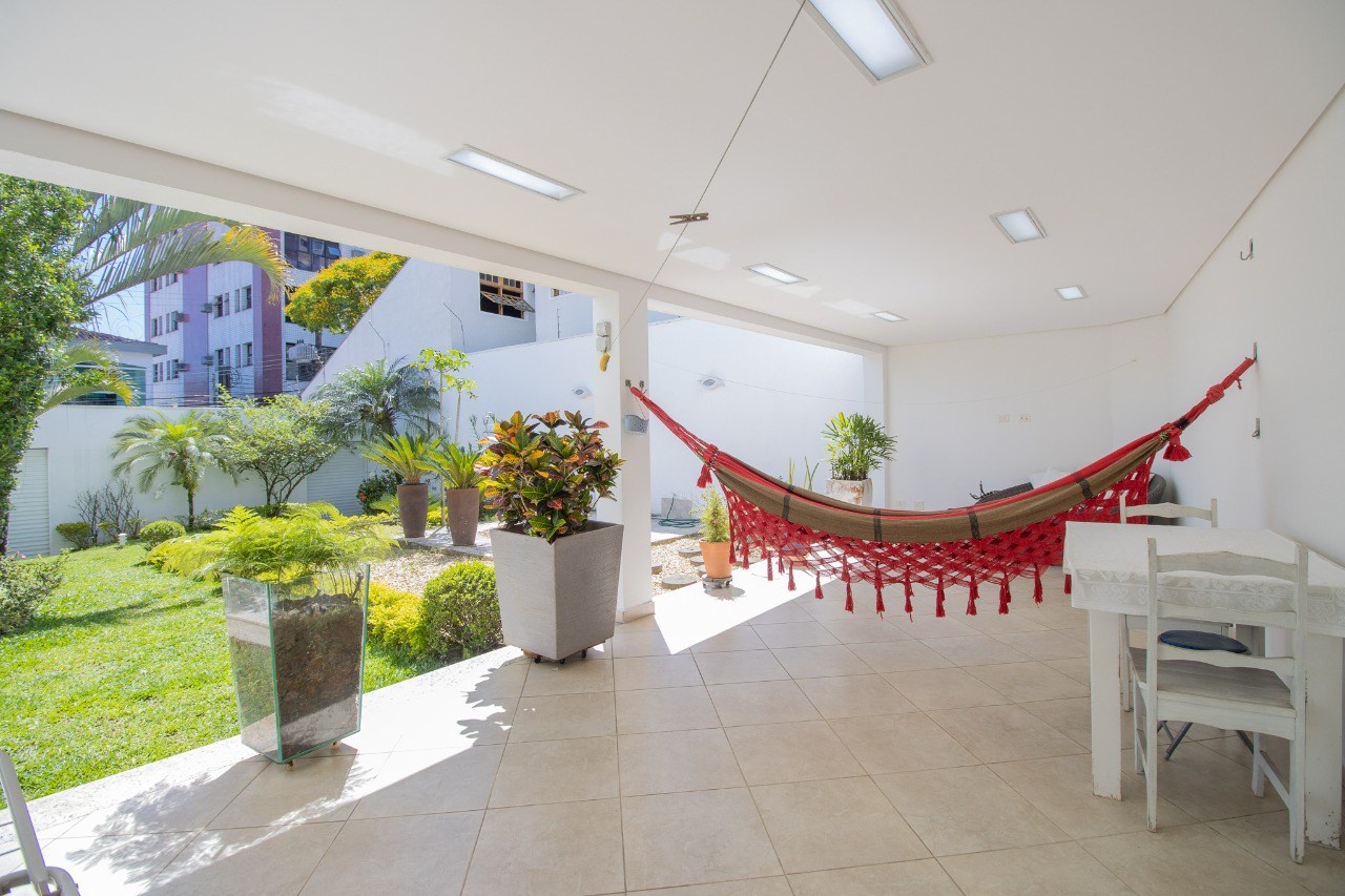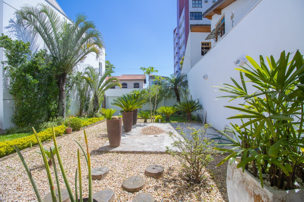 Jardim amplo, ideal para momentos de lazer e descanso.