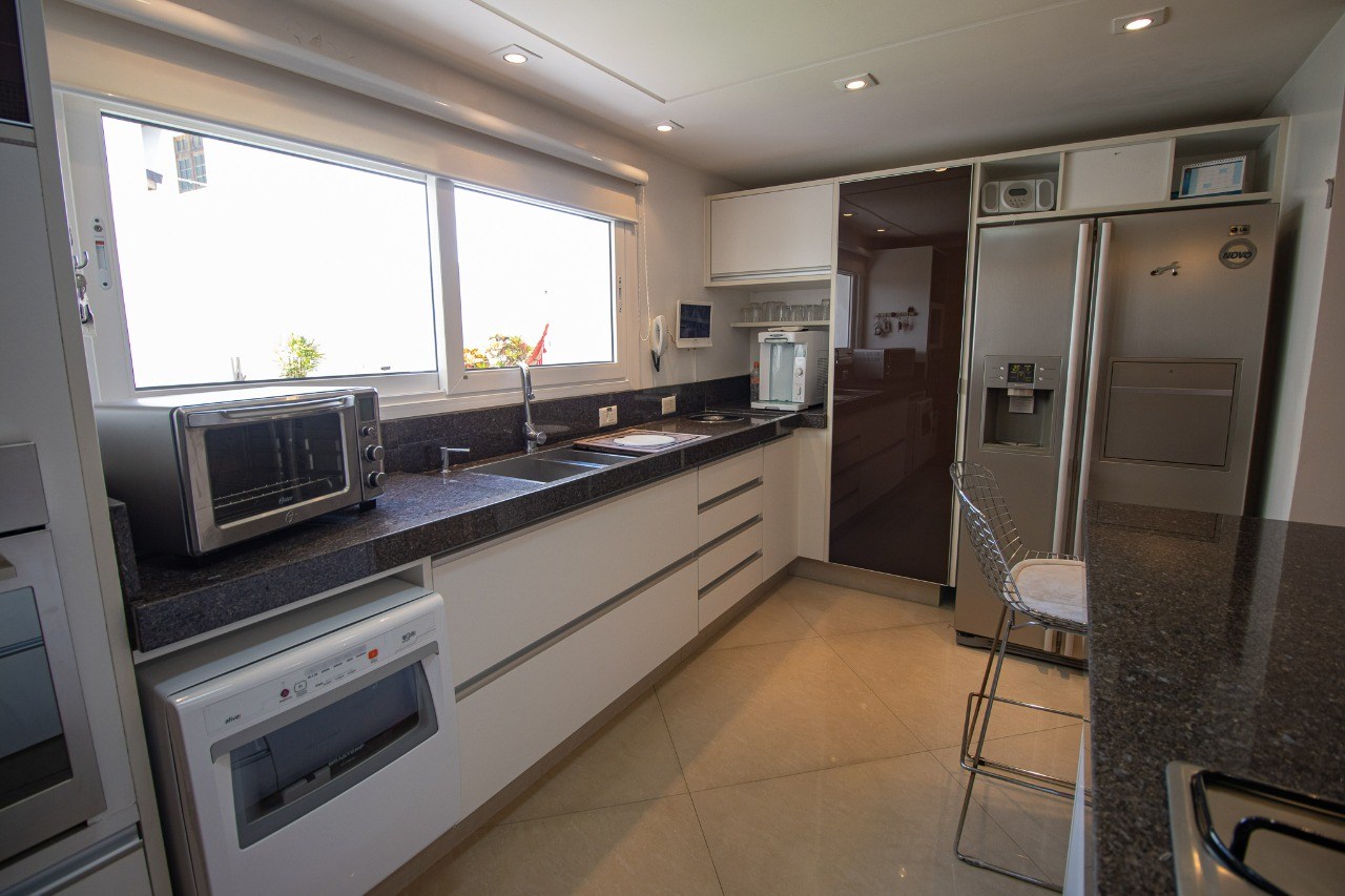 Cozinha ampla com armários planejados de alta qualidade.