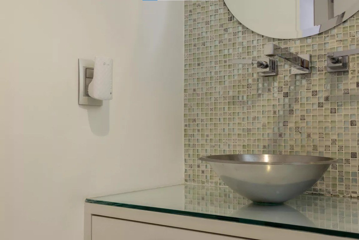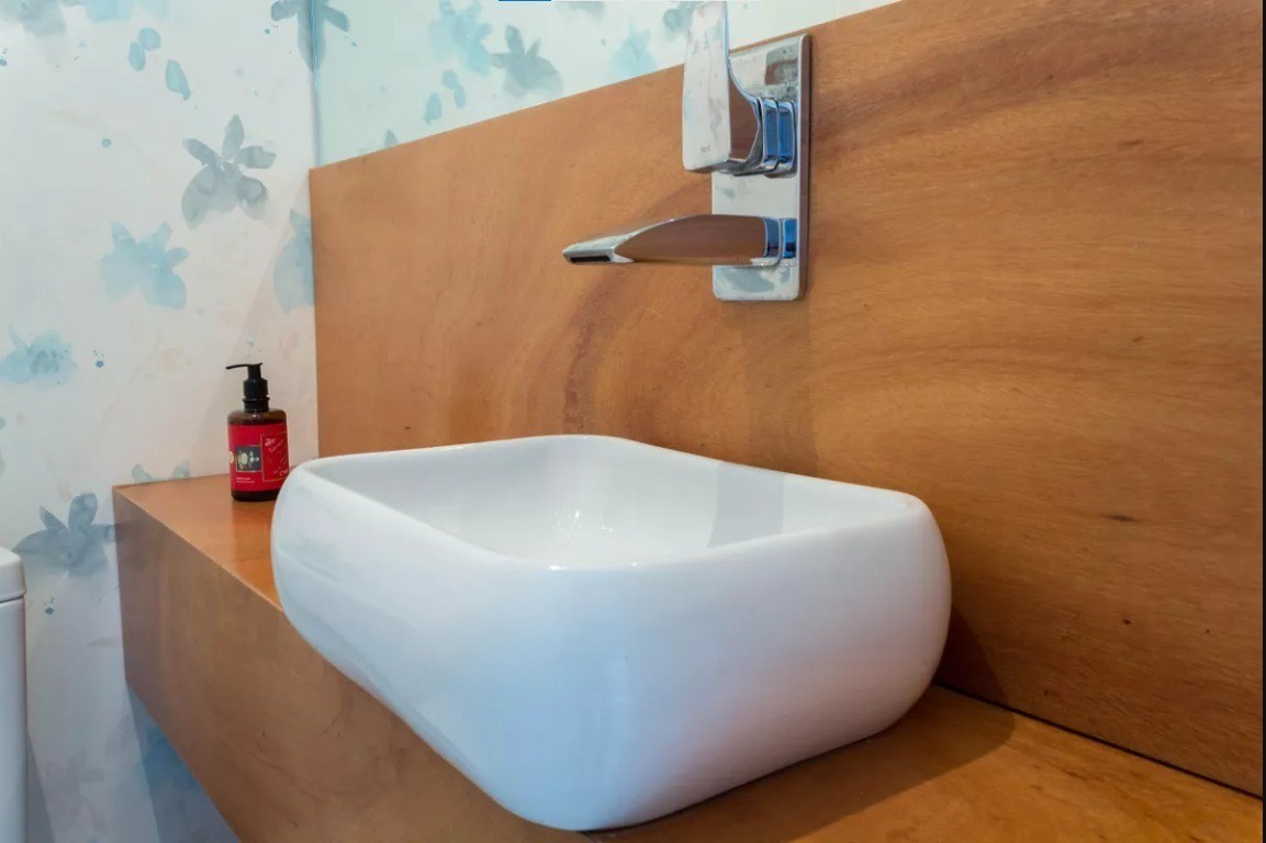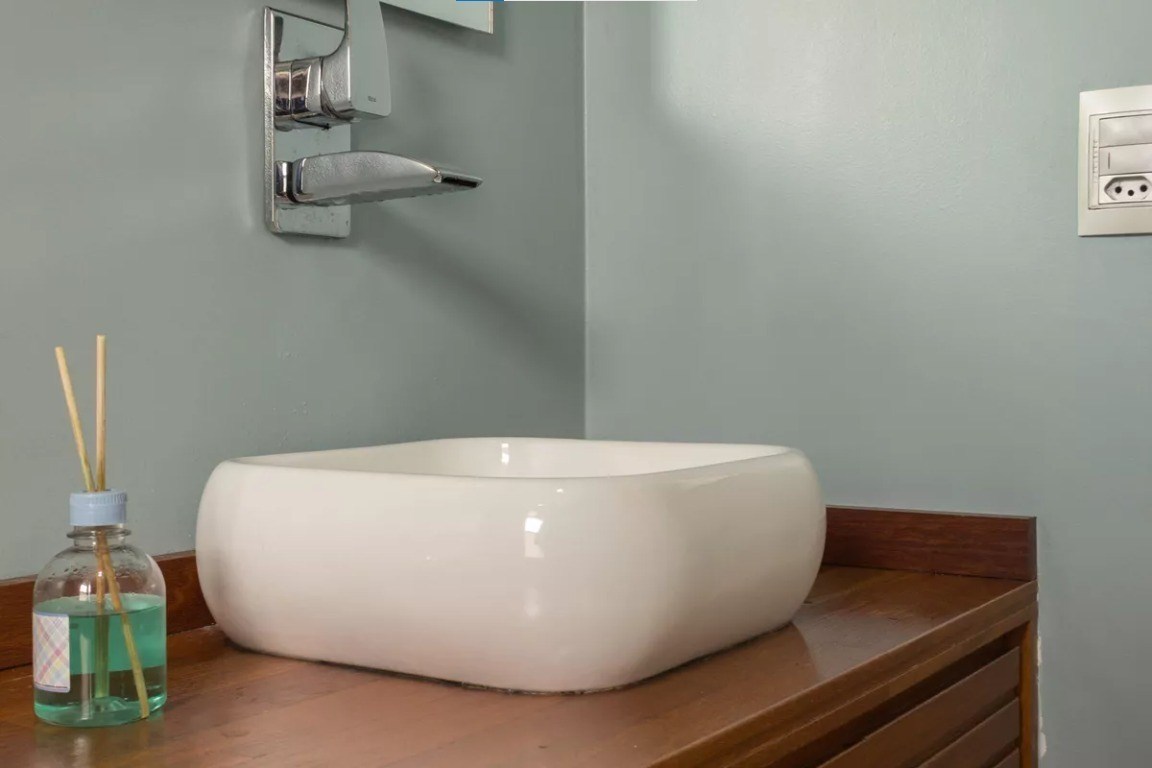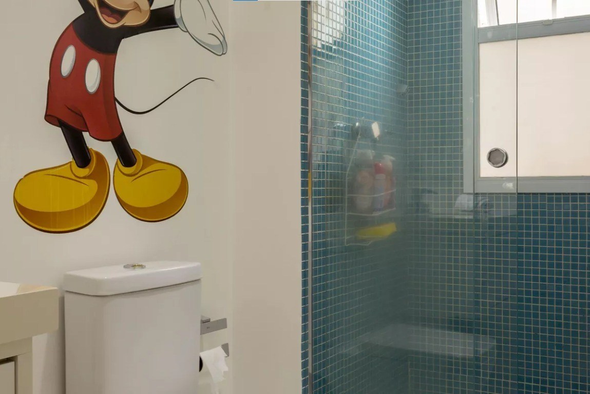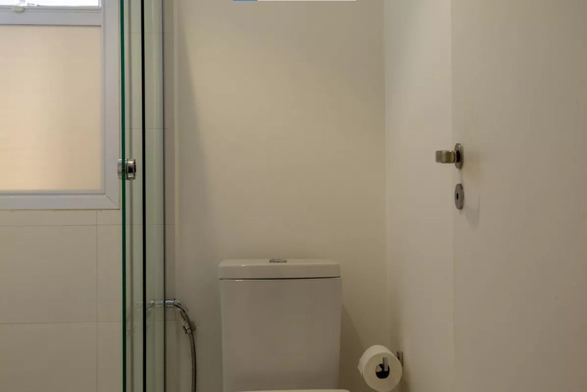 Banheiro com box em vidro.