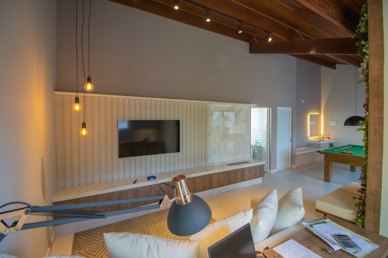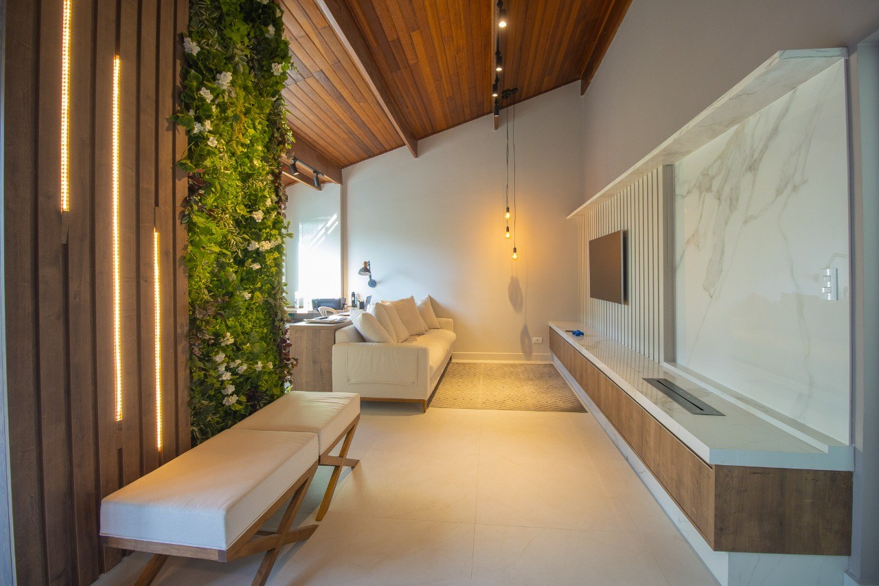 Logo ao entrar, você será recebido por uma iluminação natural espetacular, que percorre toda a extensão do apartamento. O projeto de iluminação foi cuidadosamente pensado para realçar a beleza e proporcionar um ambiente aconchegante.