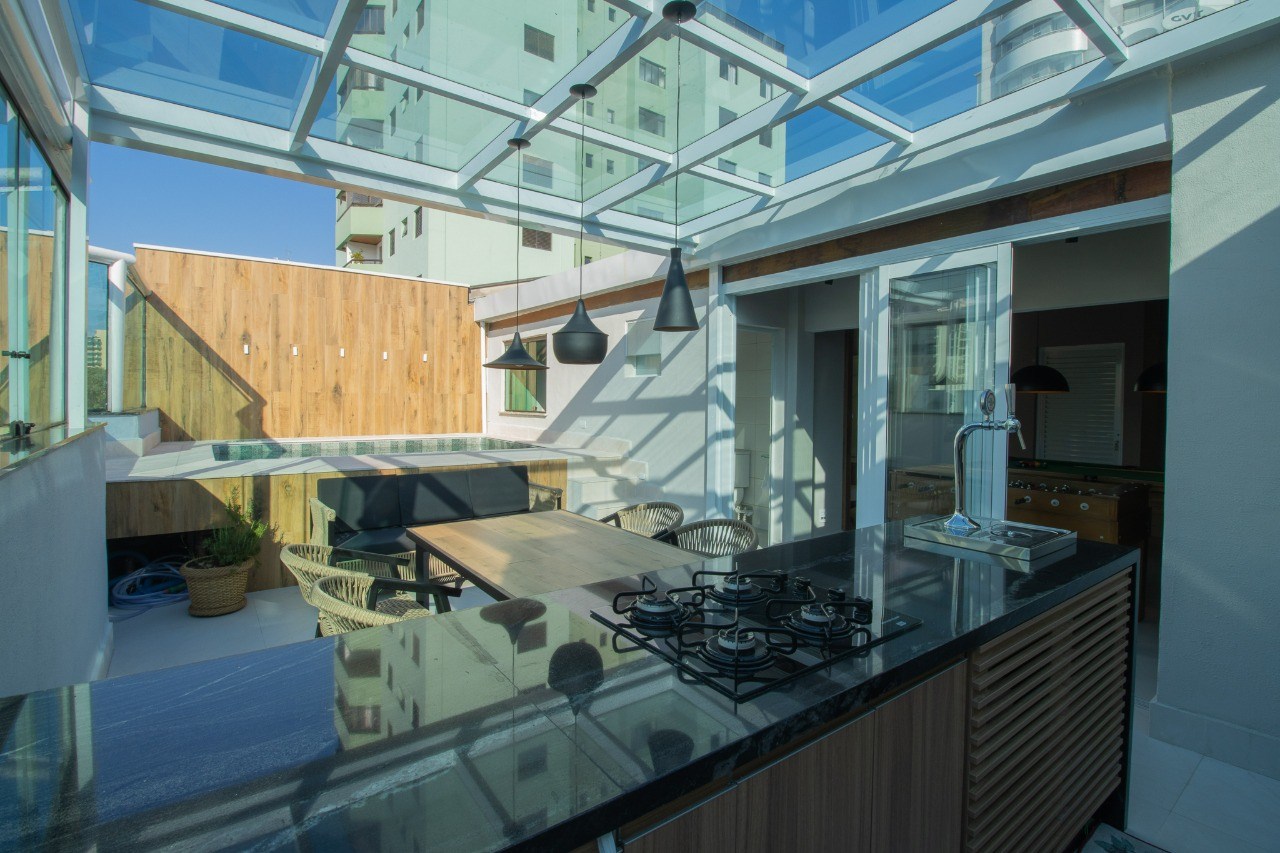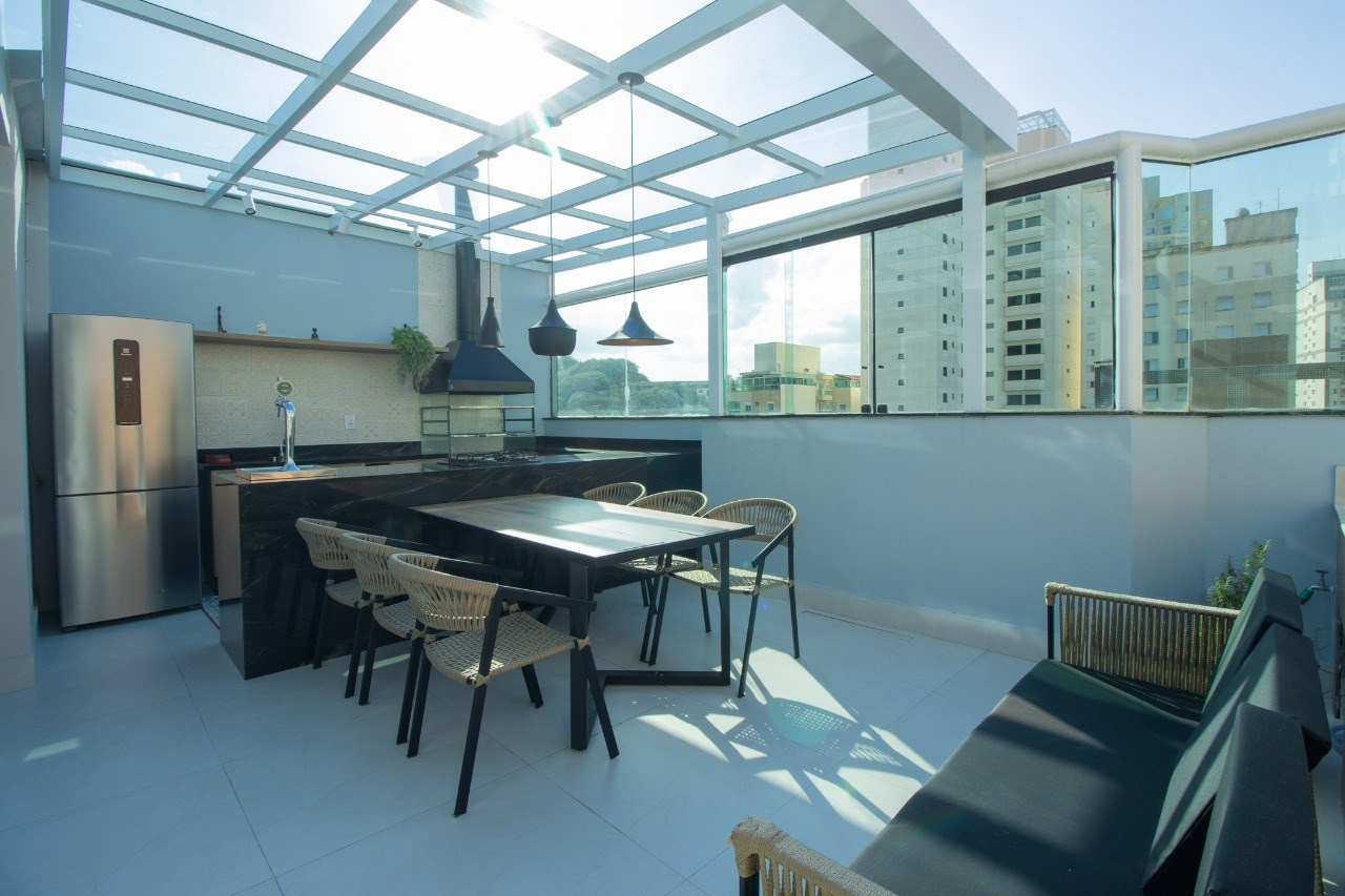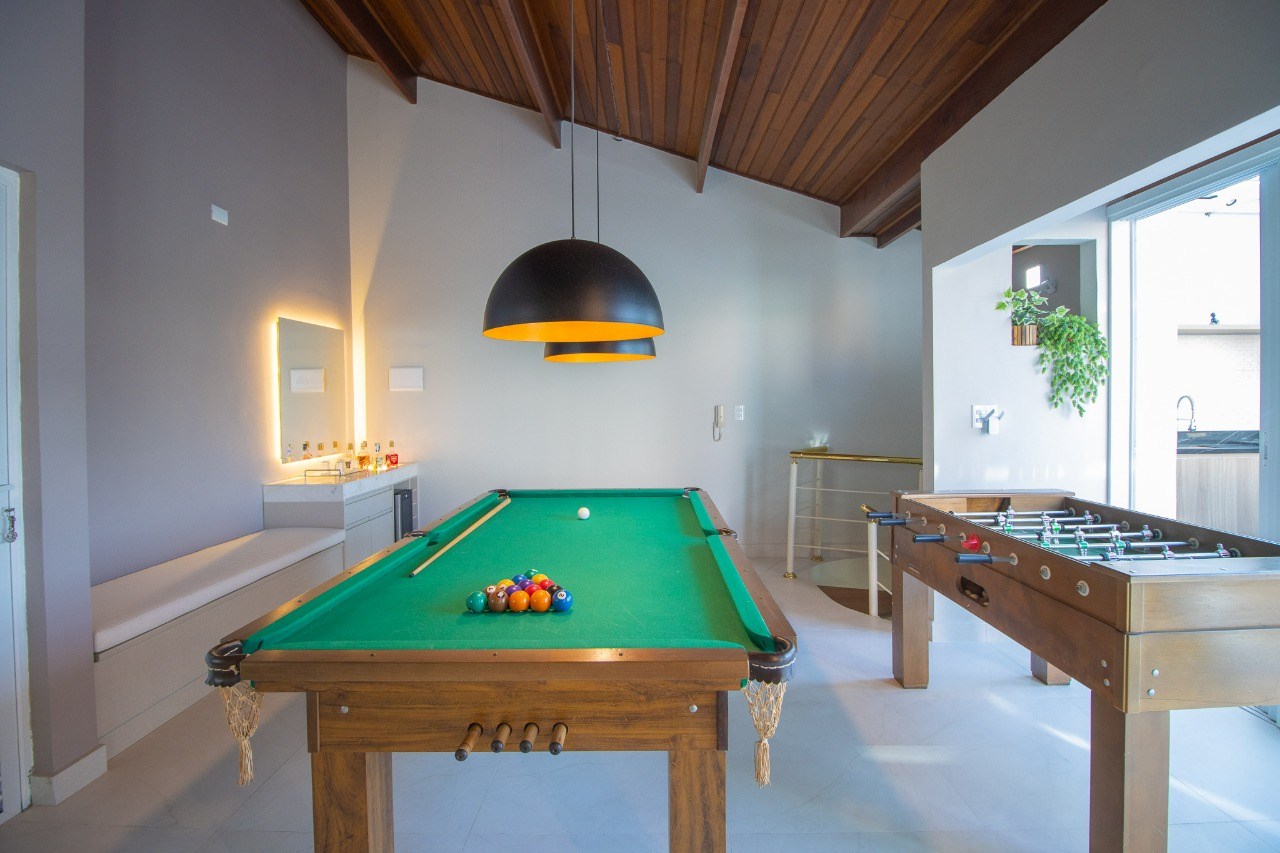 A cobertura é ampla e extremamente sofisticada. O ambiente transmite sensações de tranquilidade e aconchego, sendo ideal para a realização de festas e comemorações especiais. A piscina é um convite para se refrescar e relaxar nos dias ensolarados. Além disso, você encontrará uma mesa de sinuca e uma mesa de pimbolim, perfeitas para momentos de diversão e entretenimento.