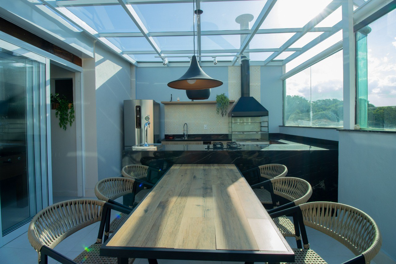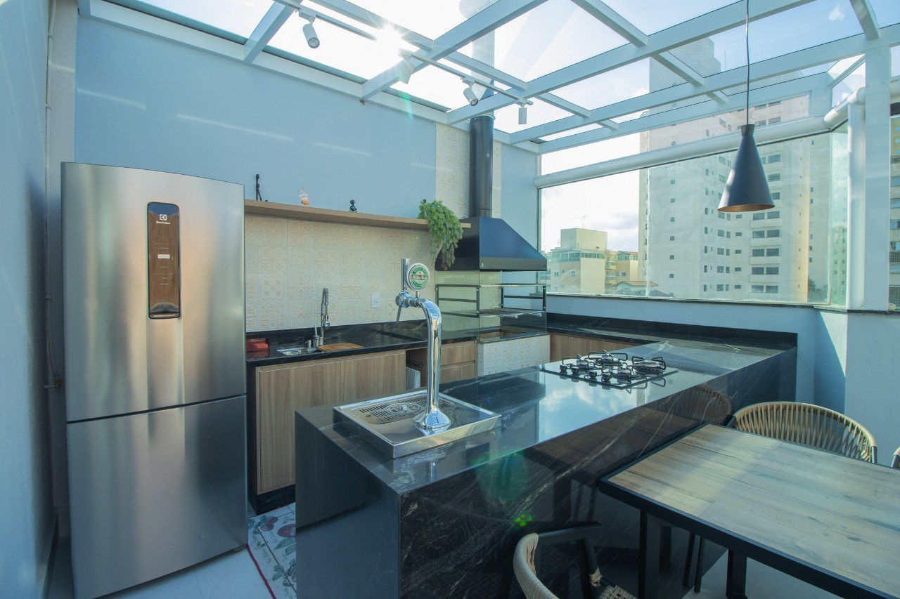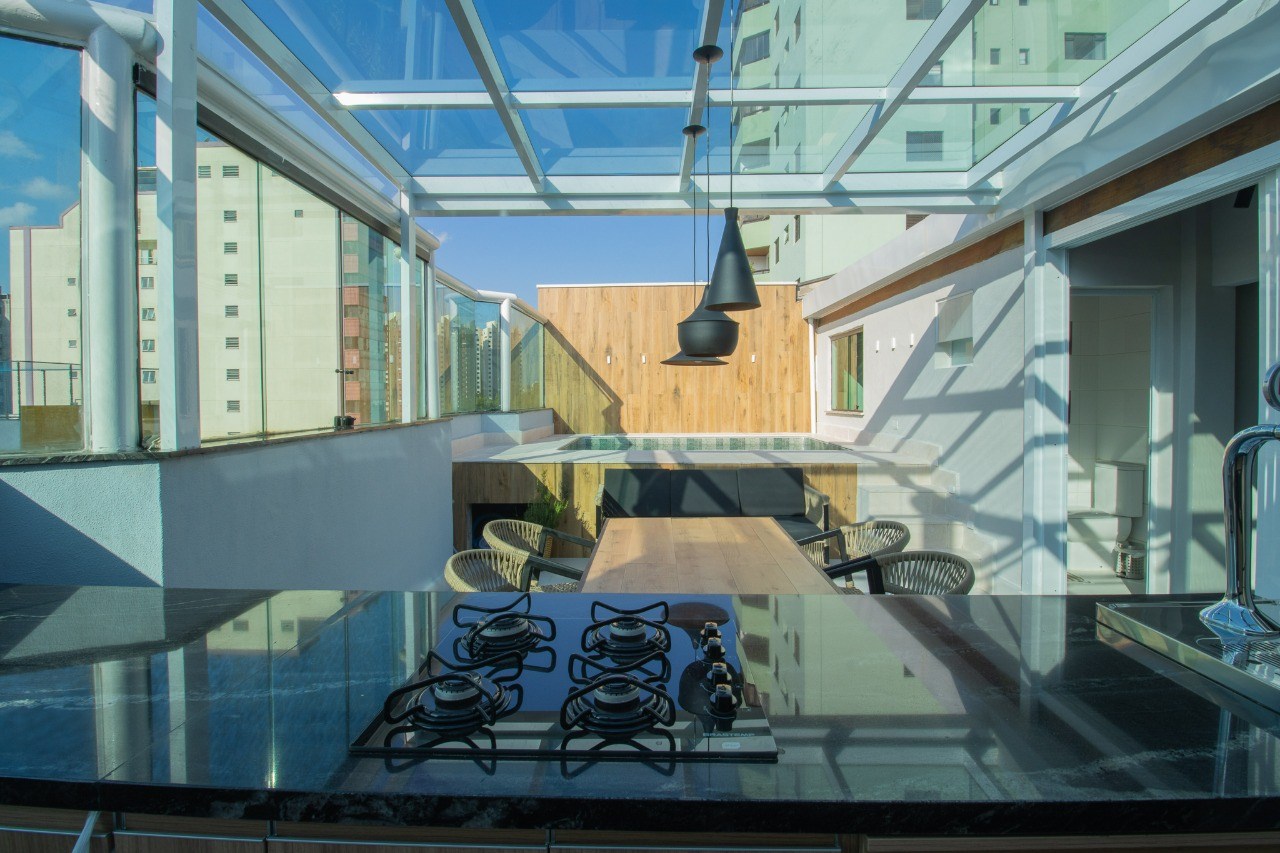A cobertura é ampla e extremamente sofisticada. O ambiente transmite sensações de tranquilidade e aconchego, sendo ideal para a realização de festas e comemorações especiais. A piscina é um convite para se refrescar e relaxar nos dias ensolarados. Além disso, você encontrará uma mesa de sinuca e uma mesa de pimbolim, perfeitas para momentos de diversão e entretenimento.