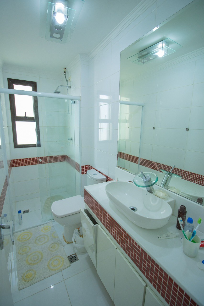 Os banheiros são equipados com box em vidro, gabinetes embutidos e belos acabamentos. Além disso, contam com ventilação natural, garantindo um ambiente sempre fresco e agradável.