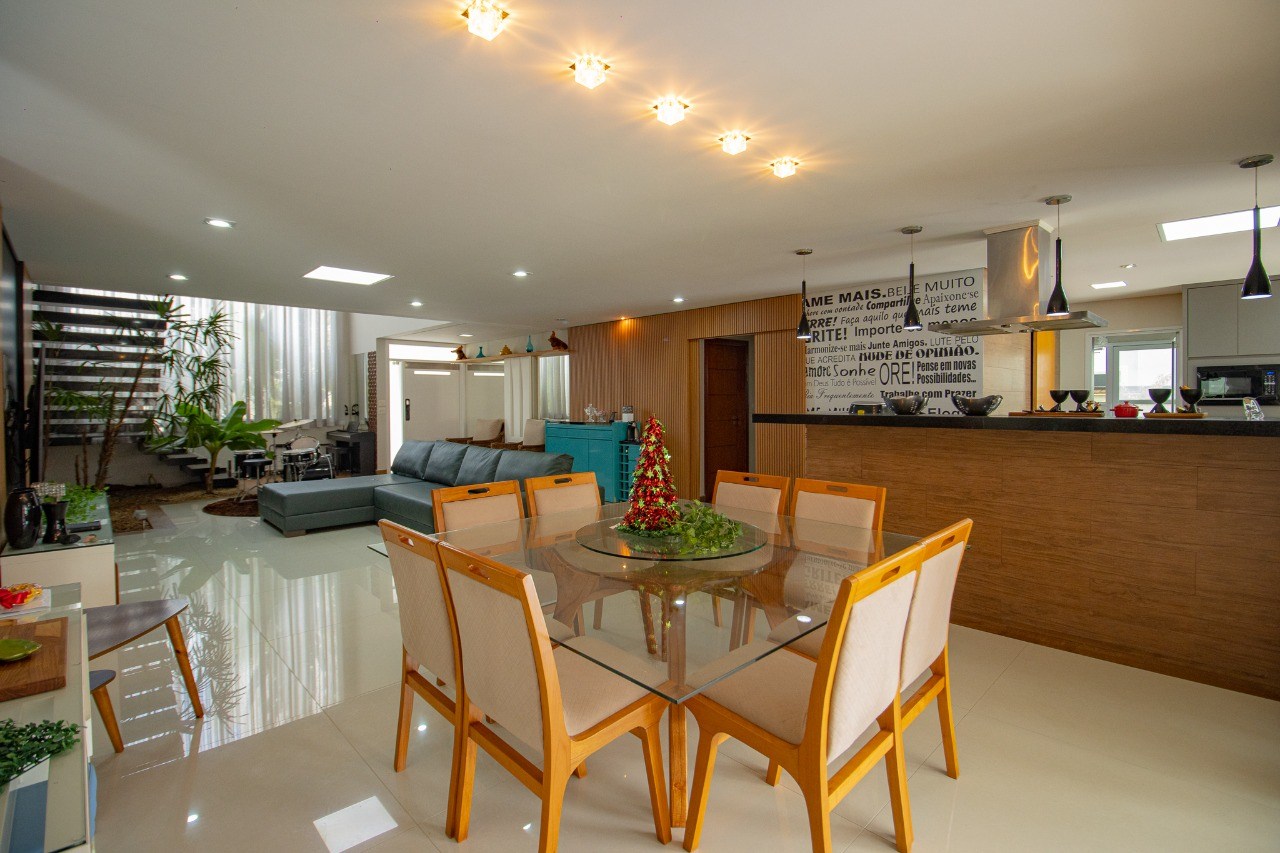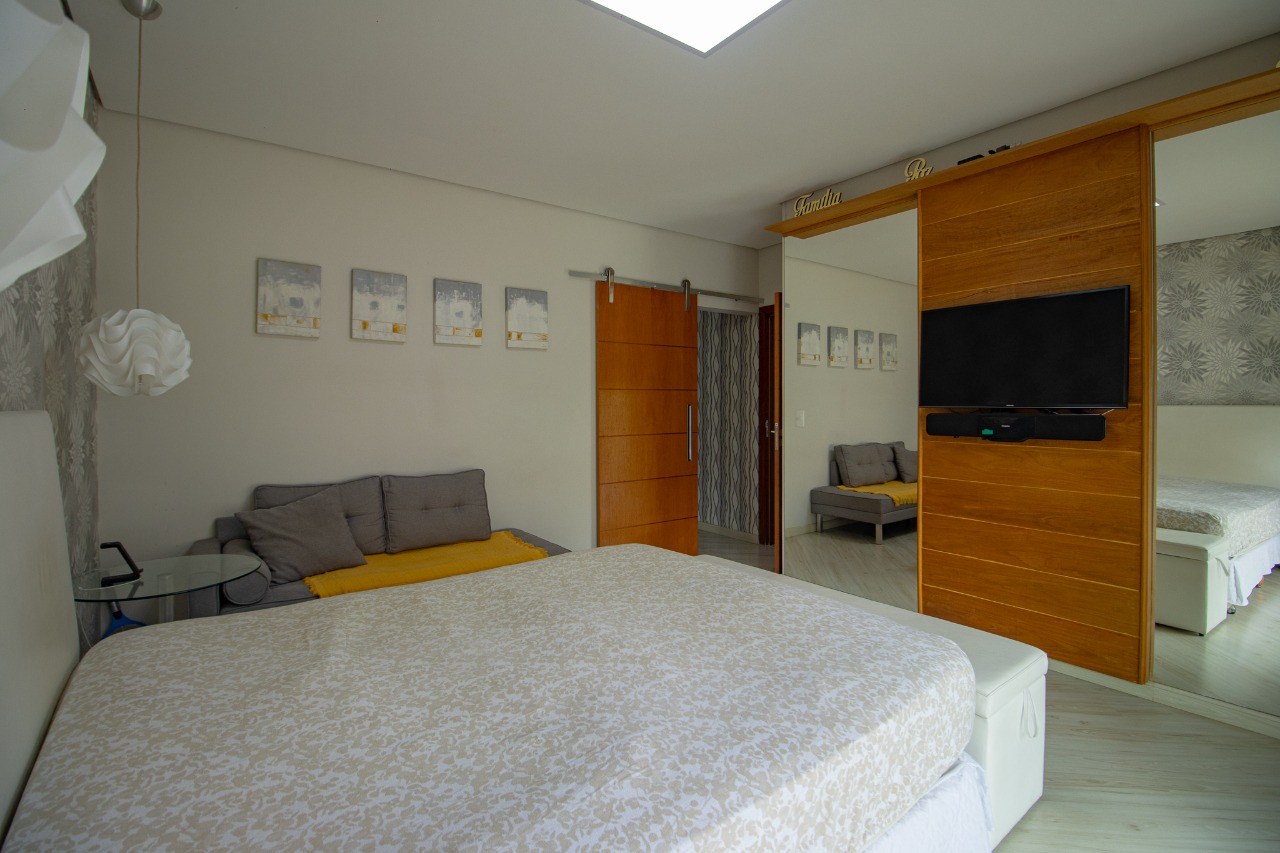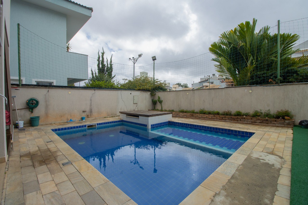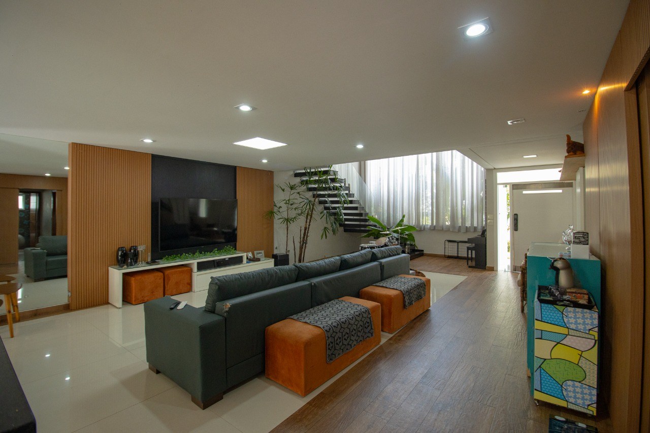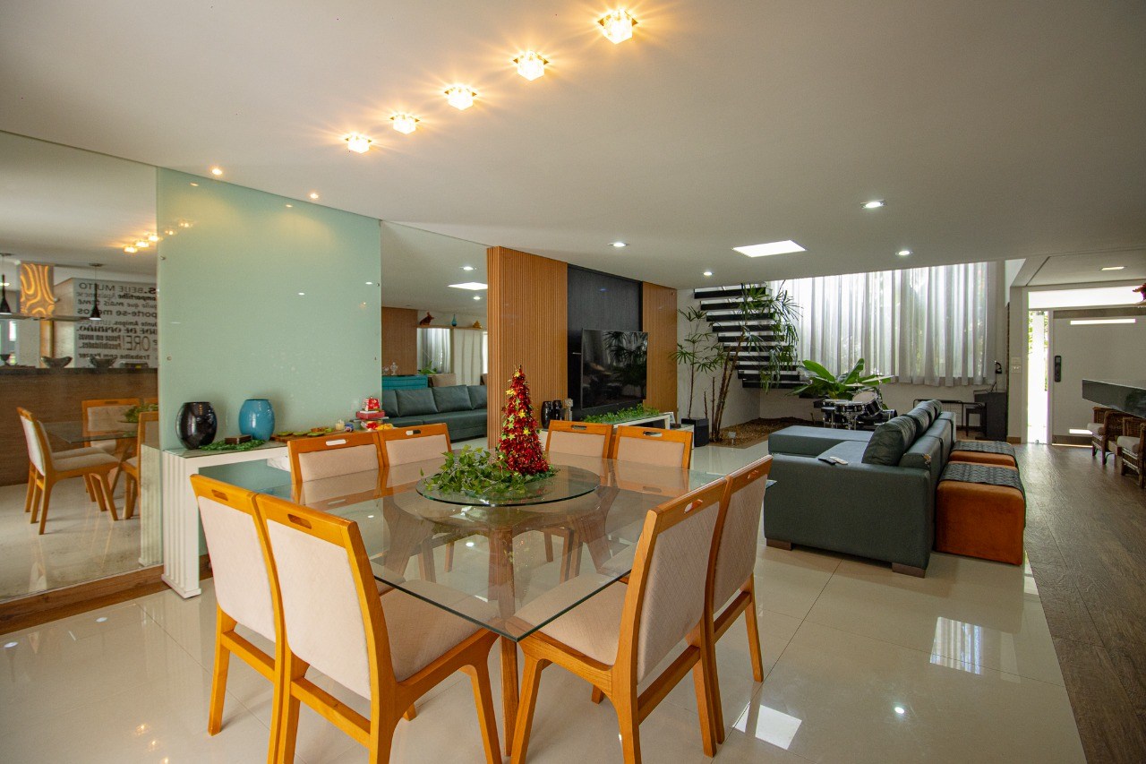 O imóvel possui 5 quartos, sendo 3 suítes, 6 banheiros e 5 vagas de garagem.
