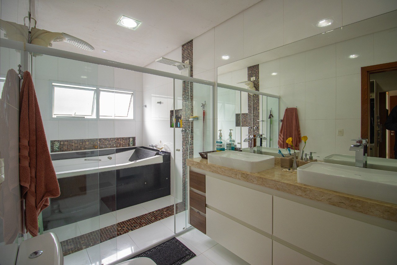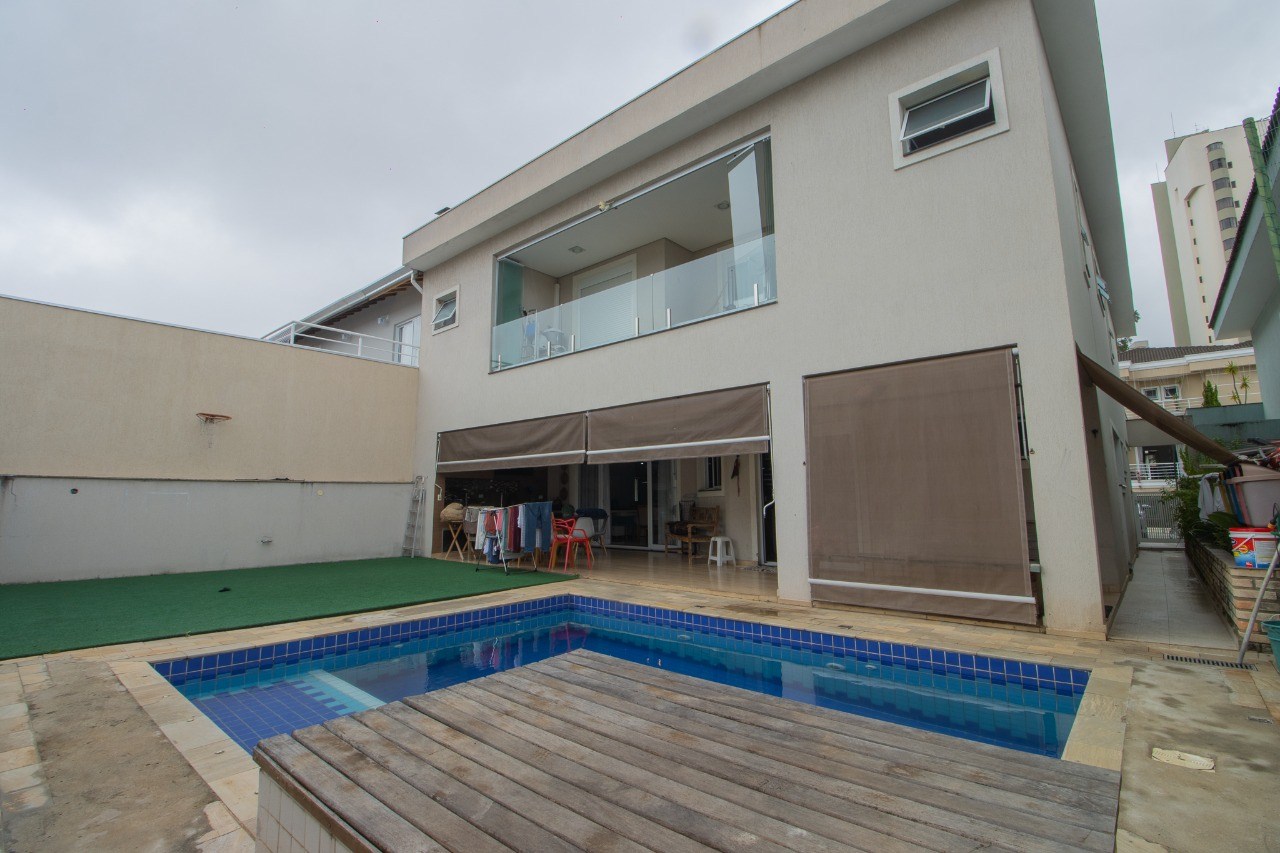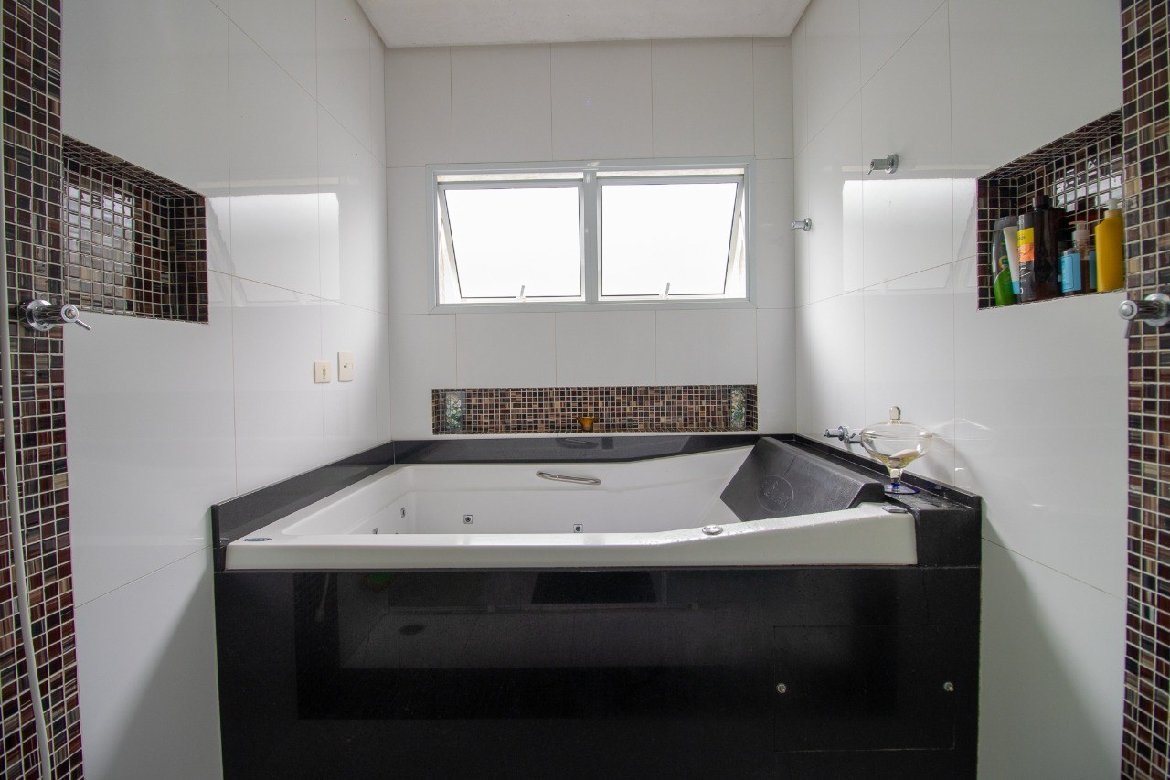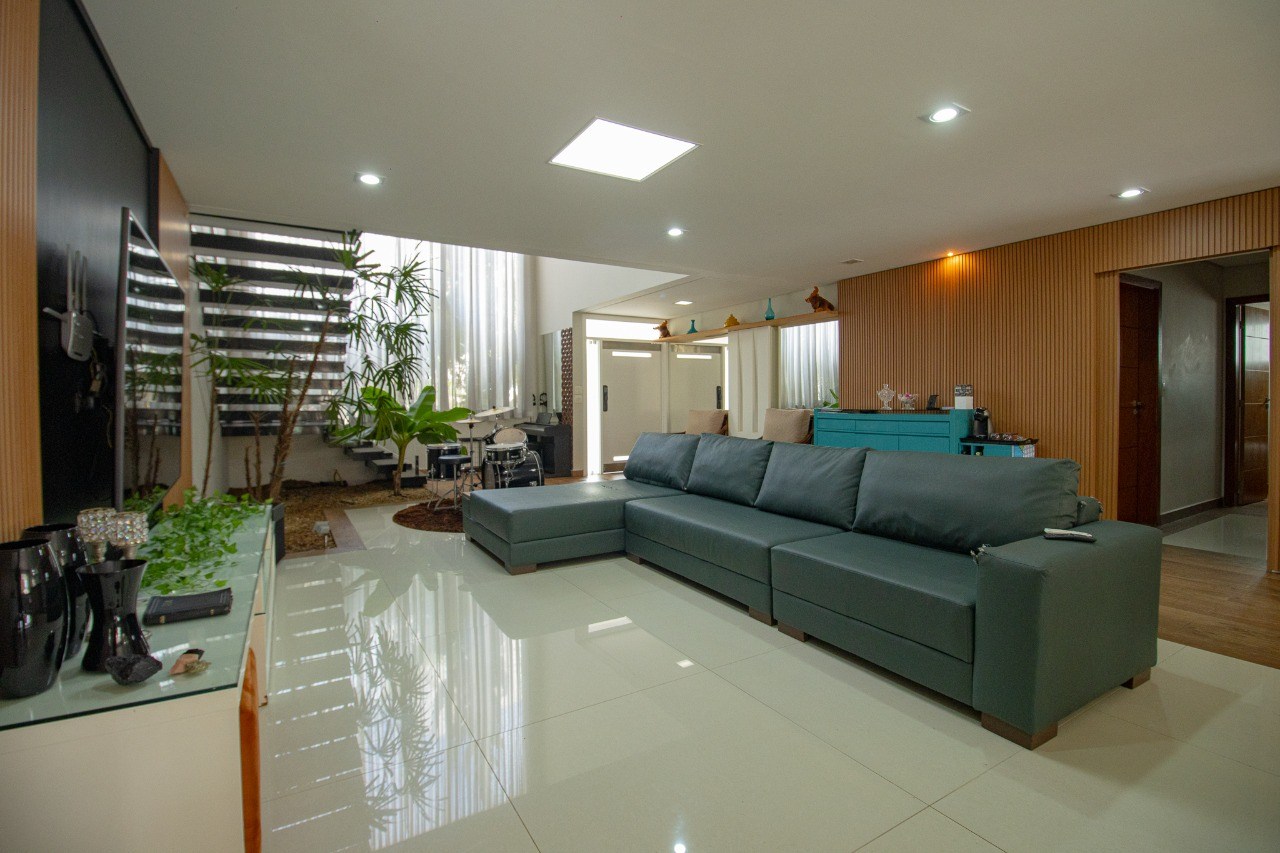 O imóvel possui 5 quartos, sendo 3 suítes, 6 banheiros e 5 vagas de garagem.