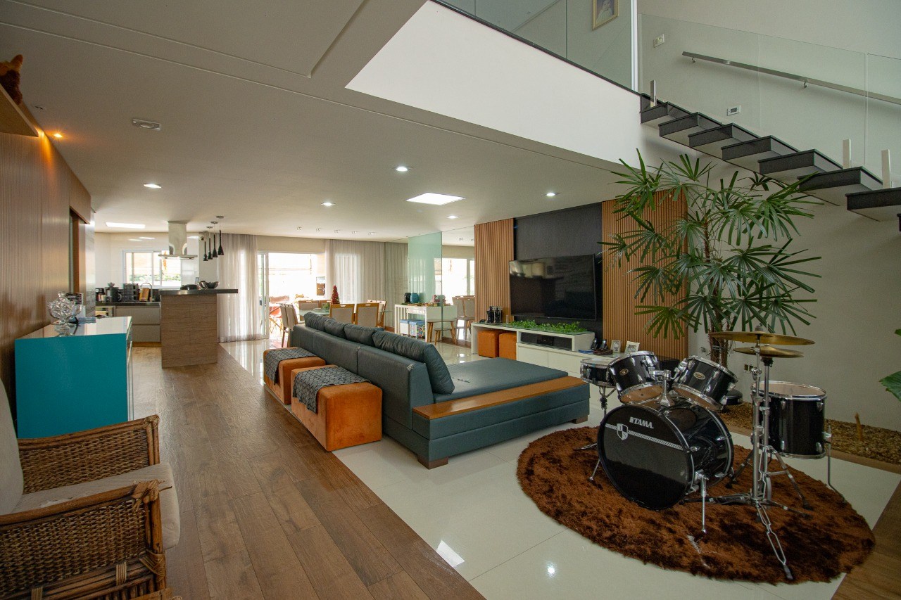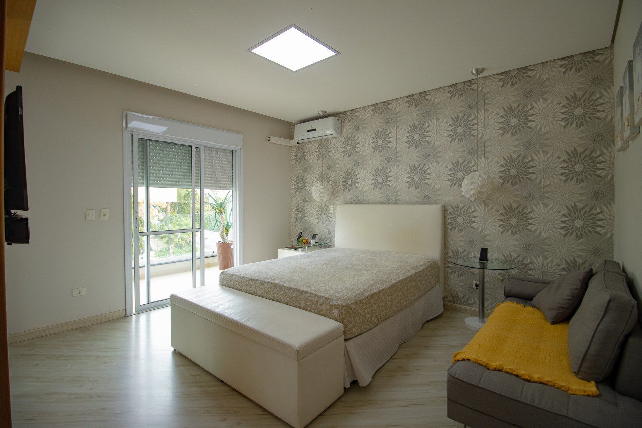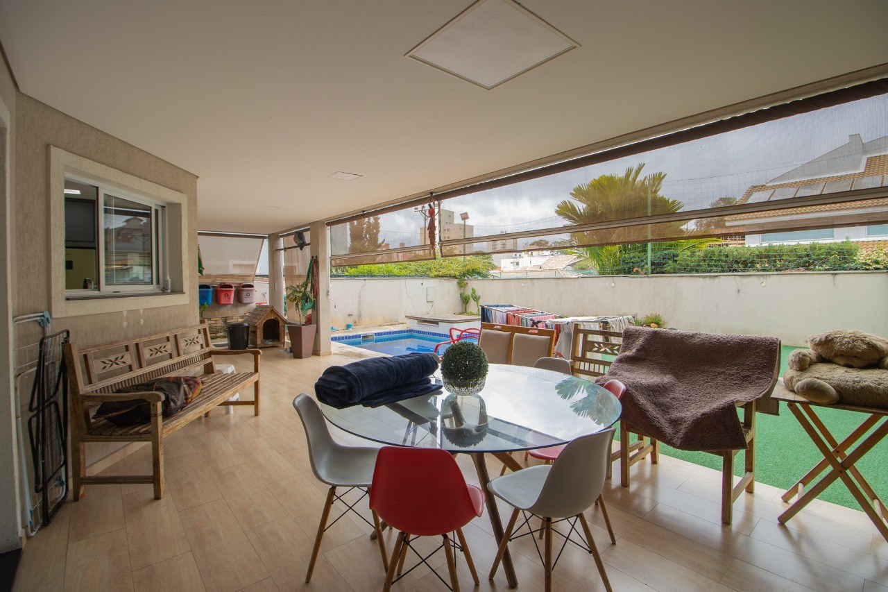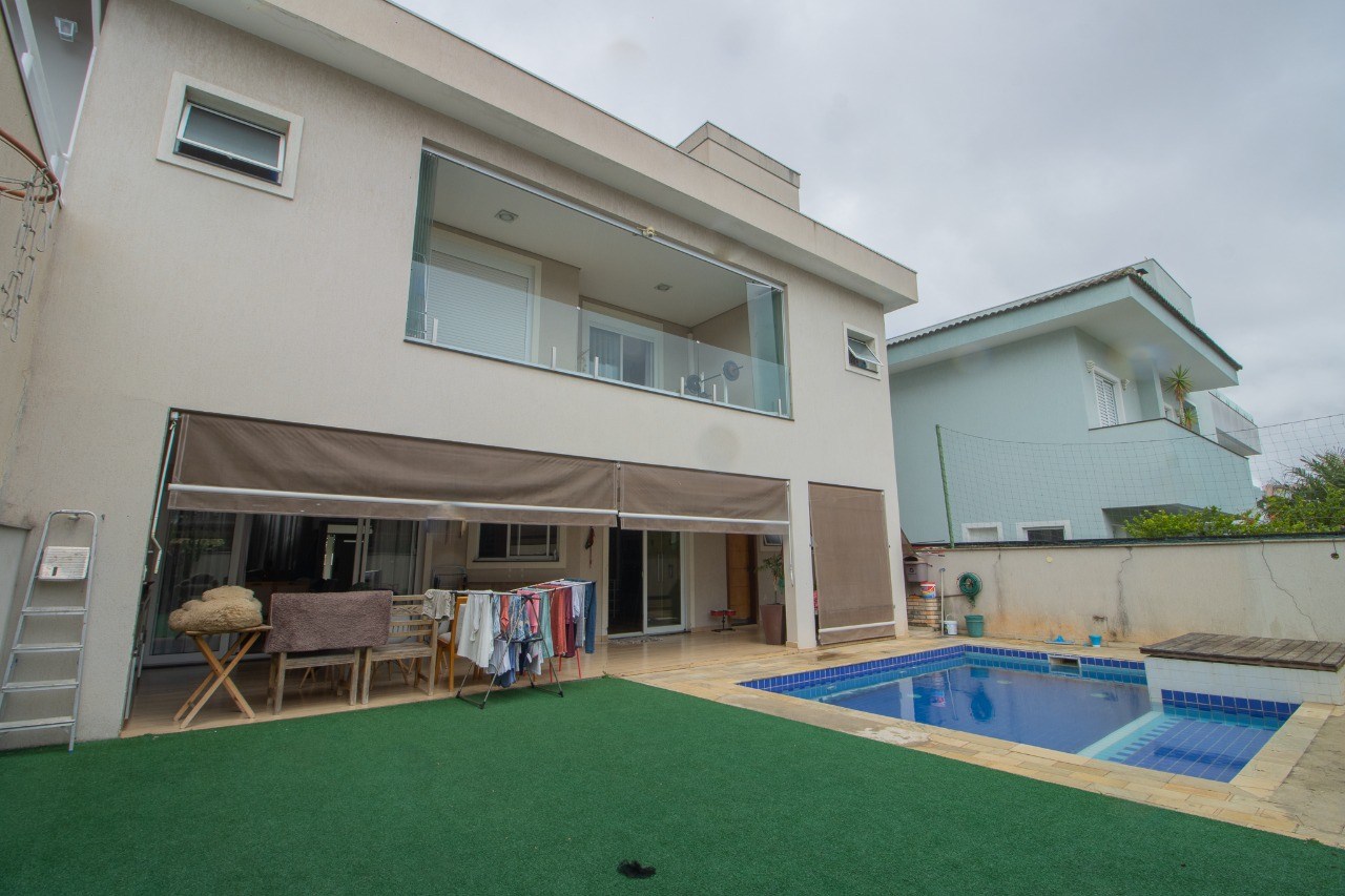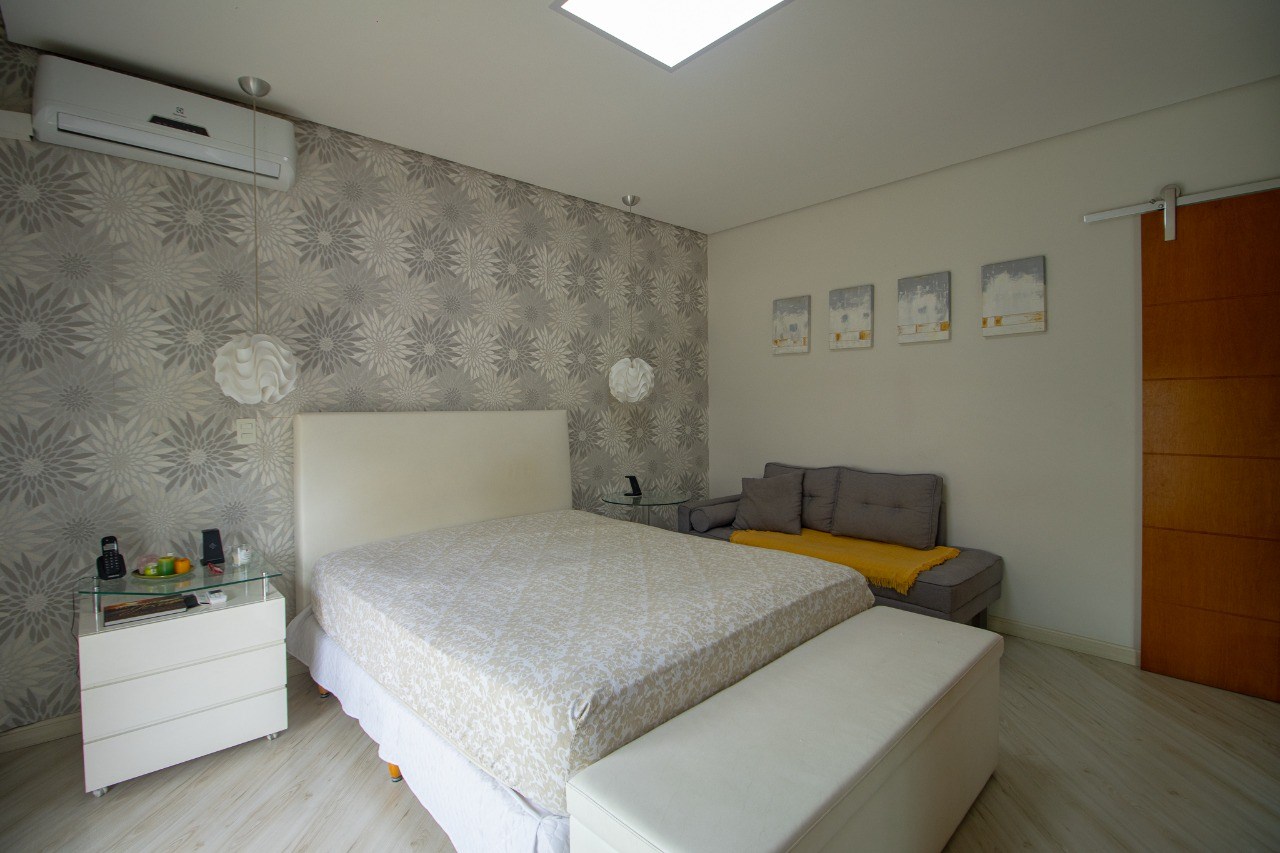 O imóvel possui 5 quartos, sendo 3 suítes, 6 banheiros e 5 vagas de garagem.