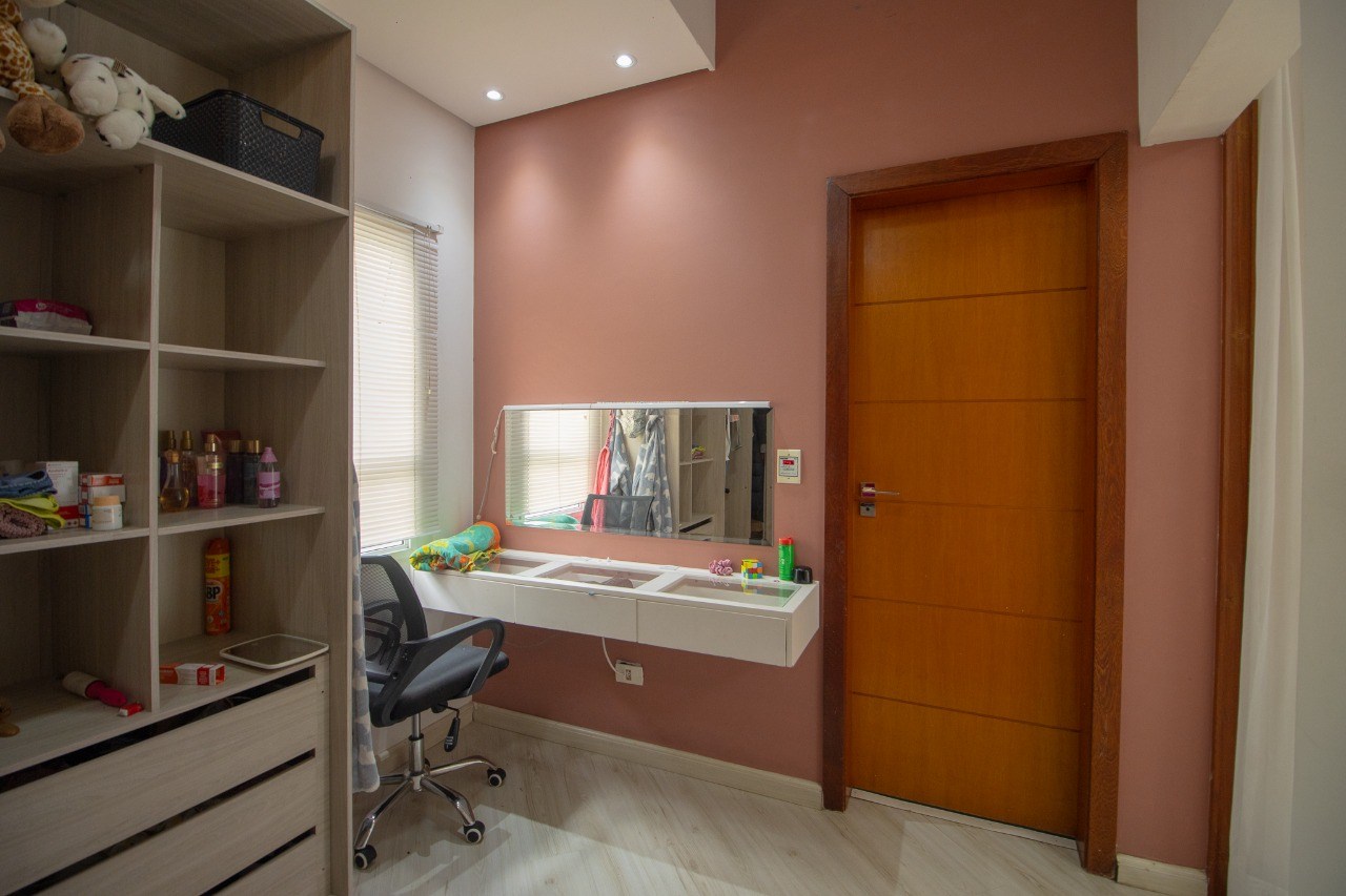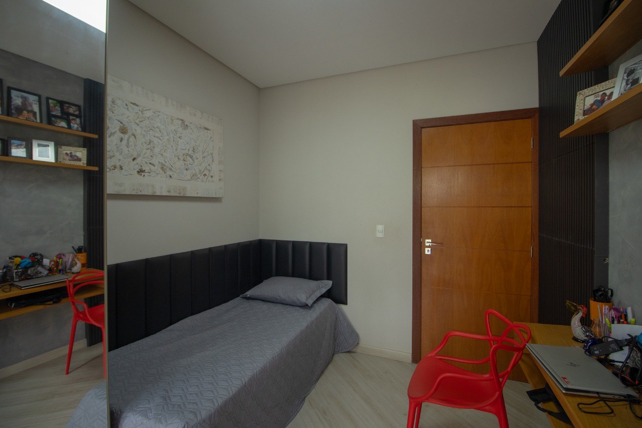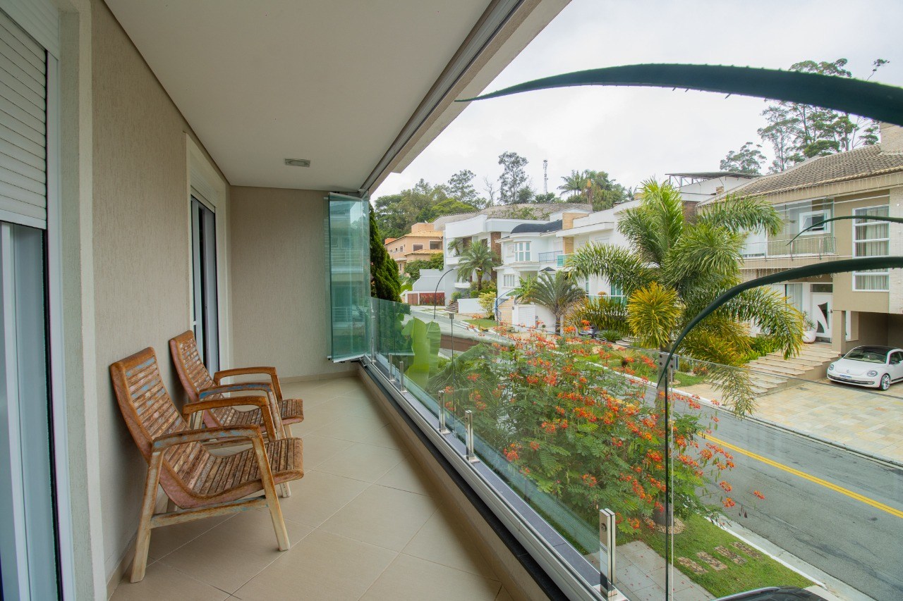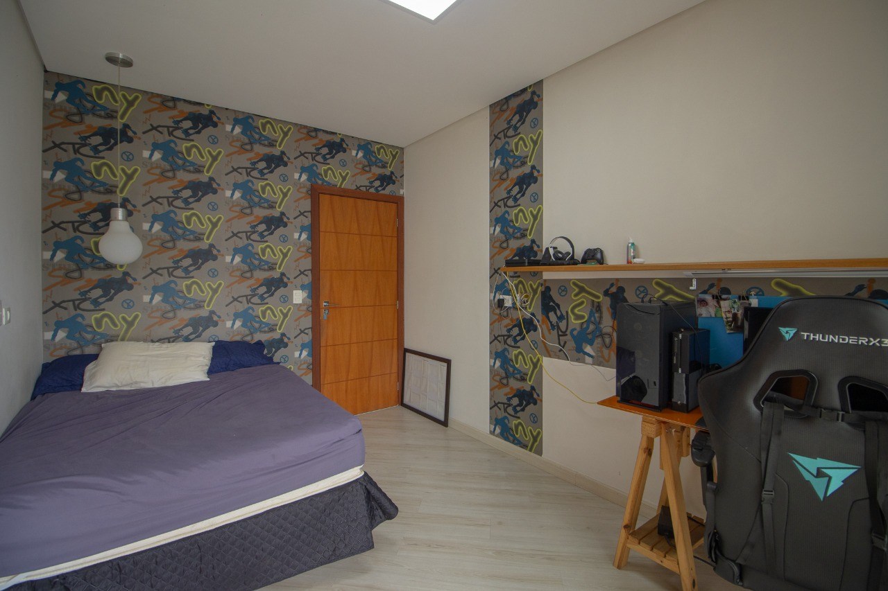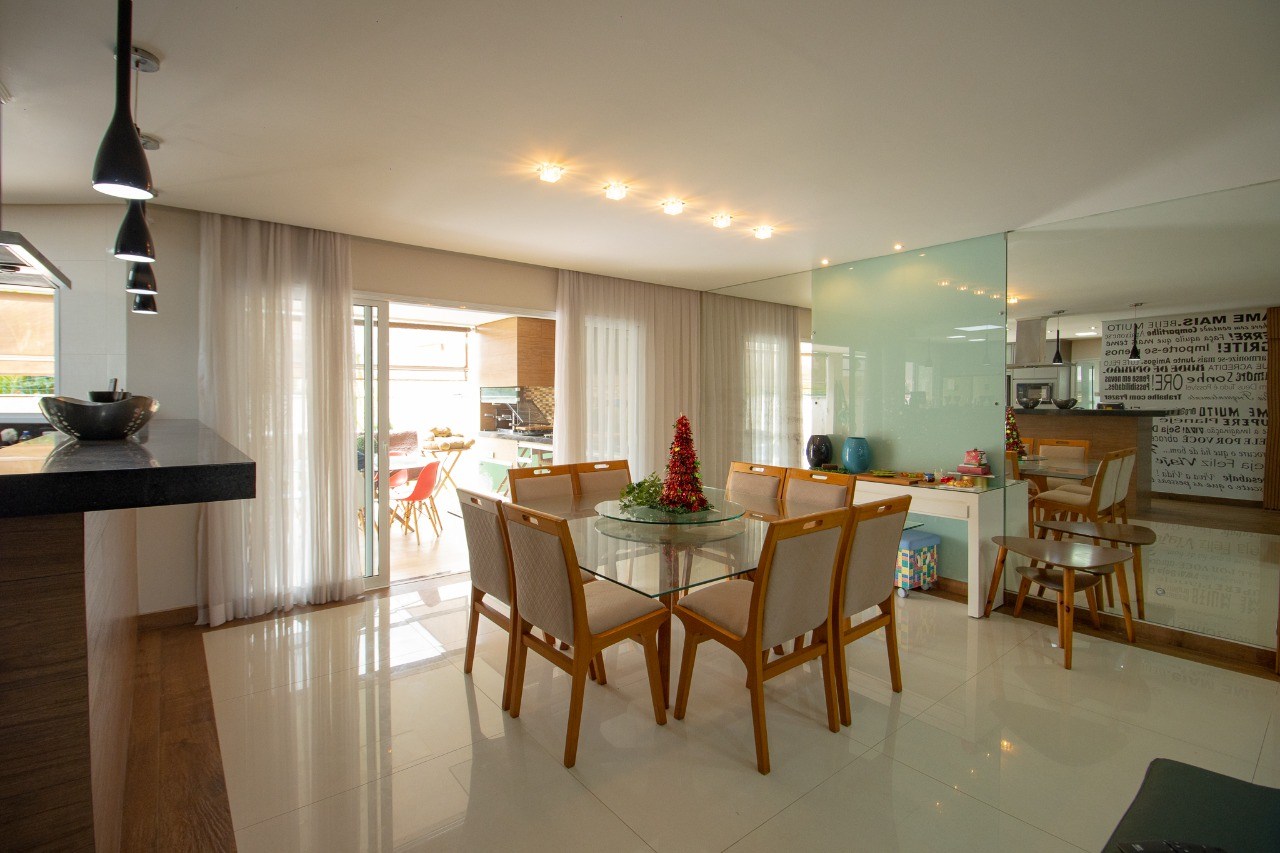 O imóvel possui 5 quartos, sendo 3 suítes, 6 banheiros e 5 vagas de garagem.