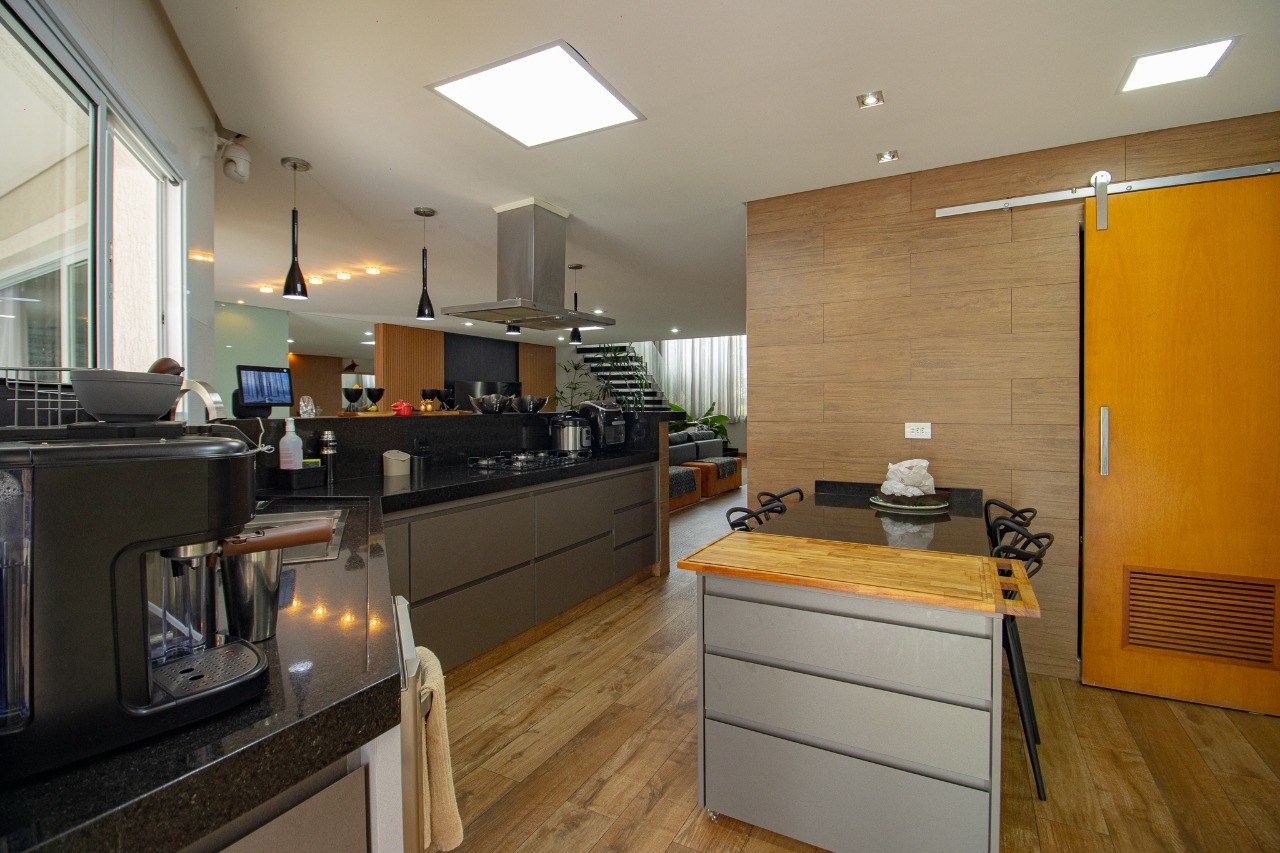 Cozinha equipada e planejada.