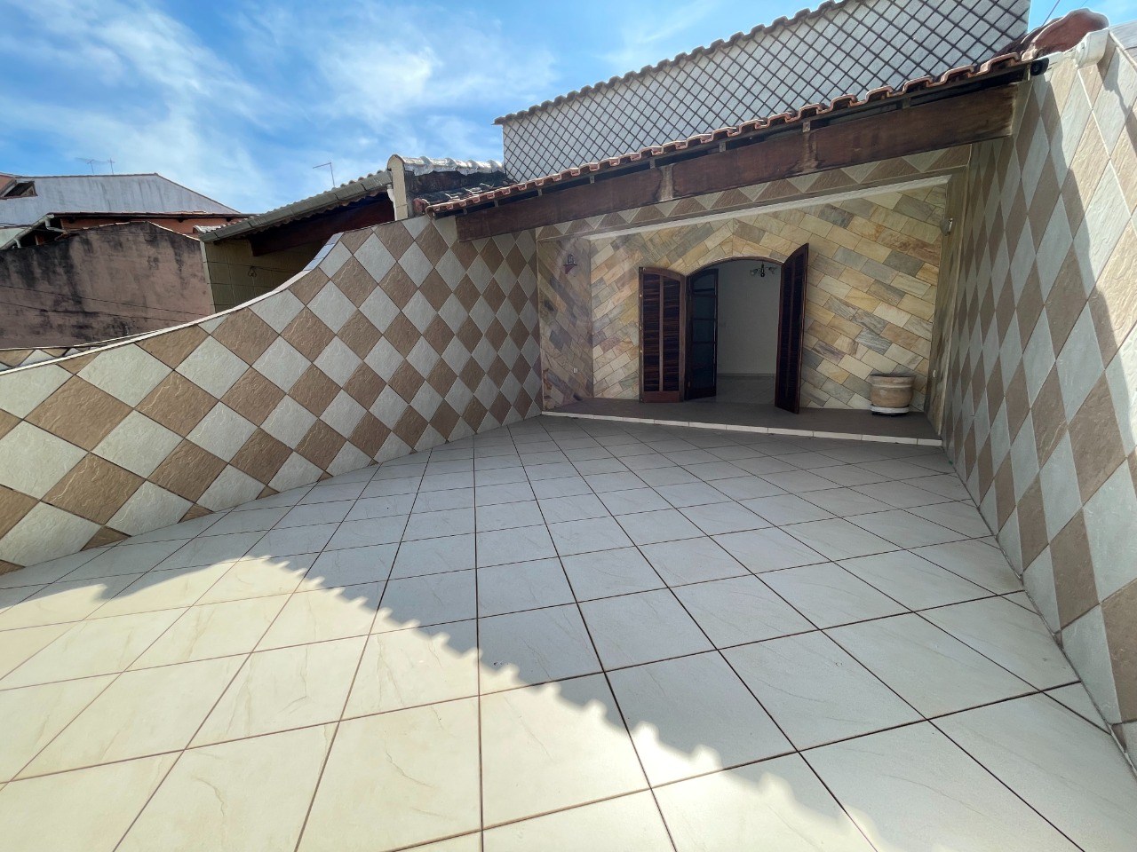 O imóvel possui 2 quartos, 3 banheiros, 2 vagas de garagem cobertas e corredor lateral.