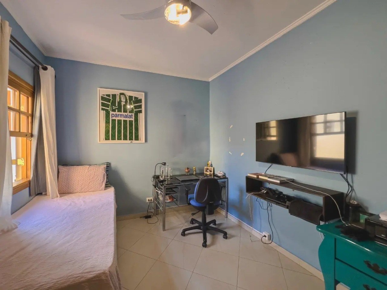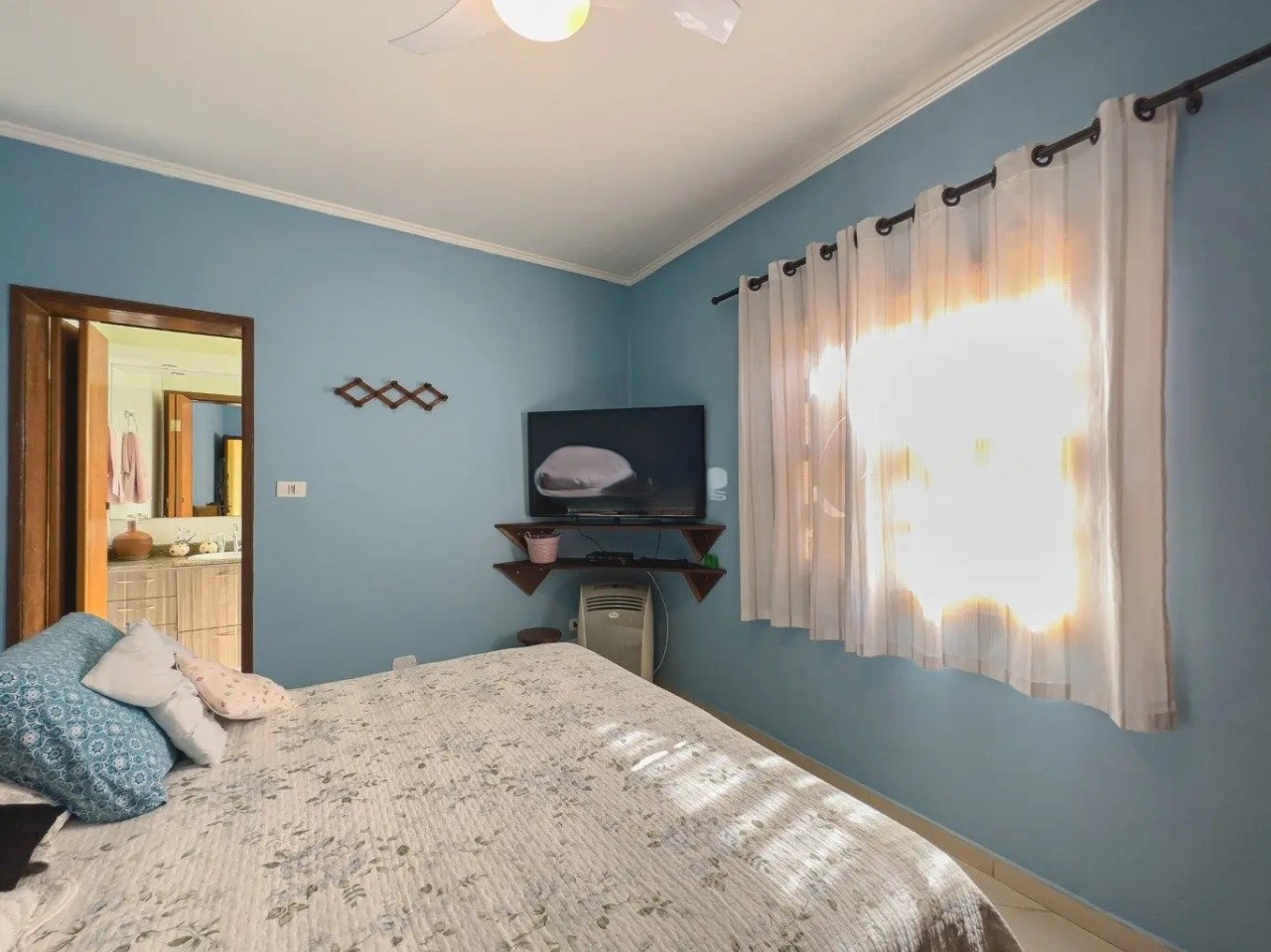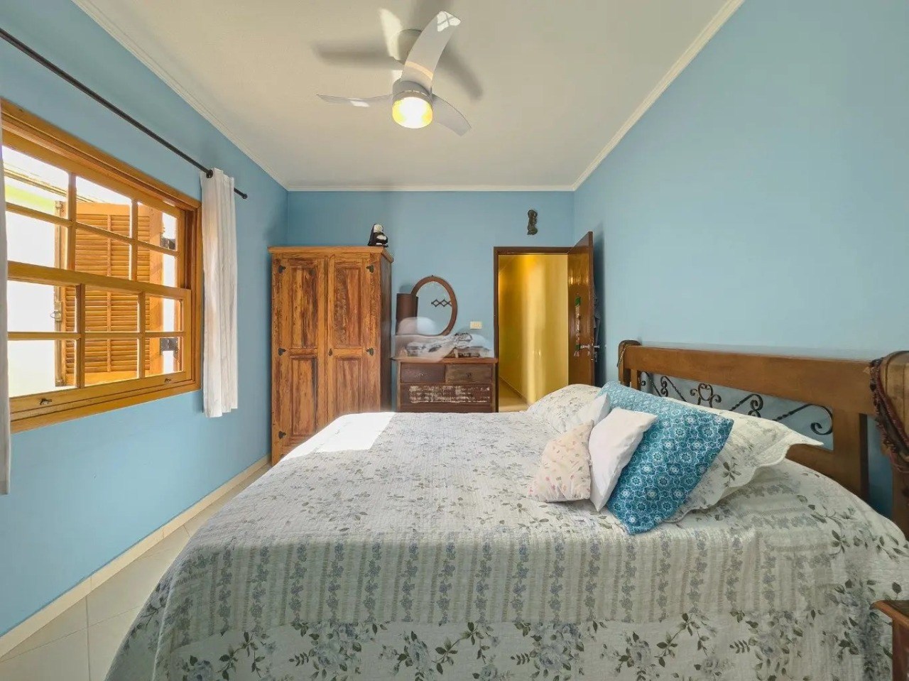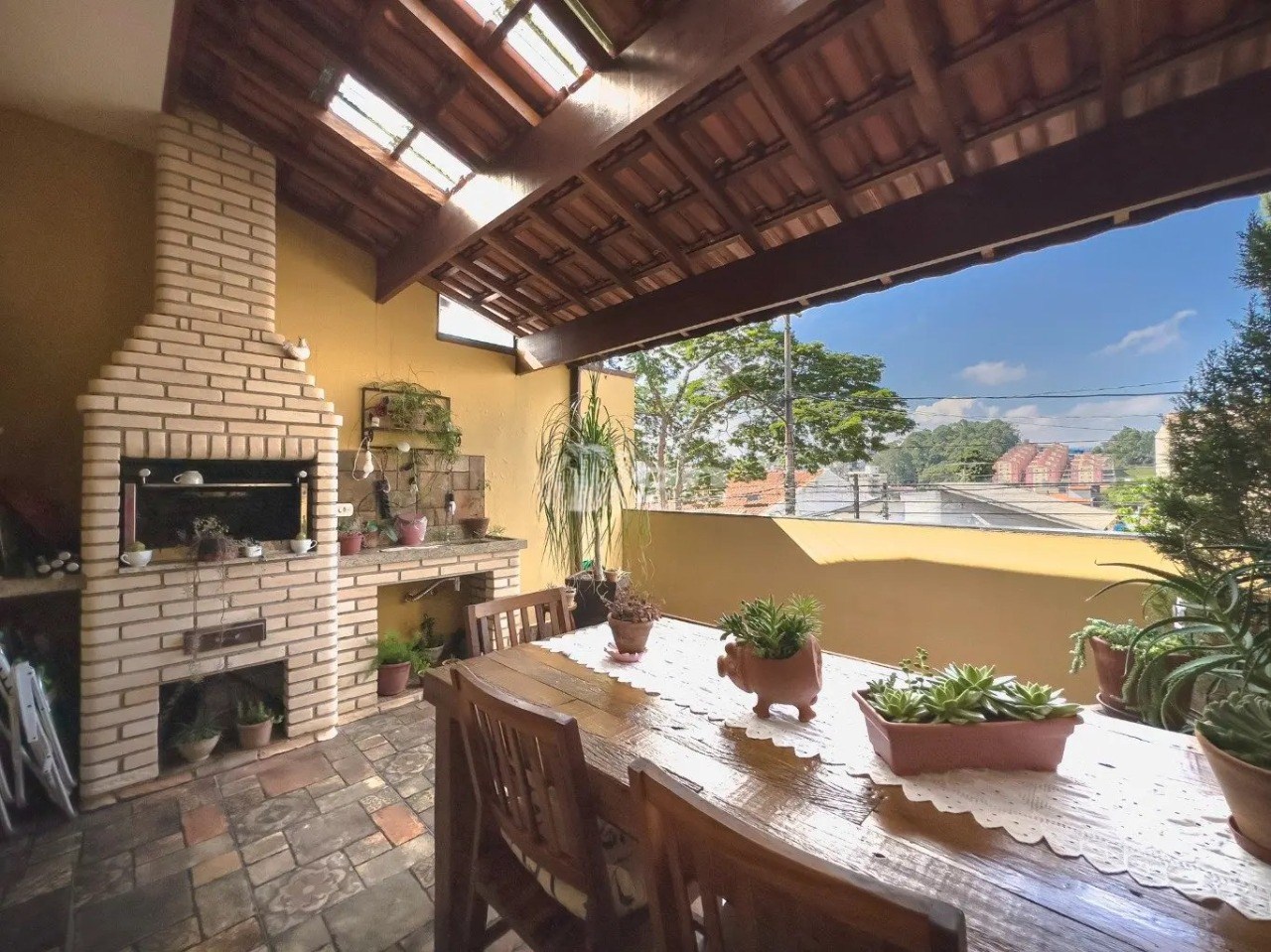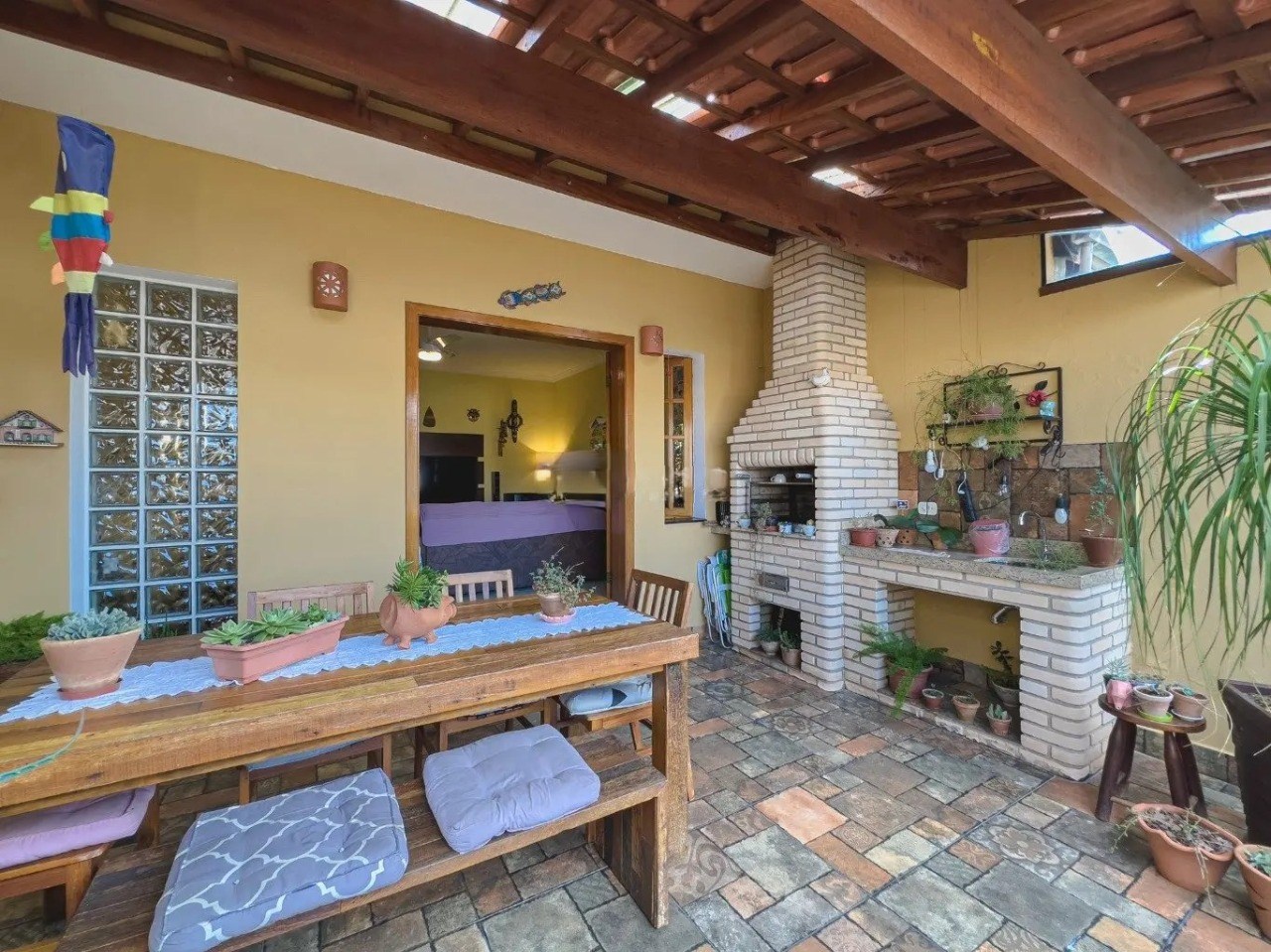 O imóvel possui 4 quartos, sendo 2 suítes, 3 banheiros e 2 vagas de garagem cobertas.