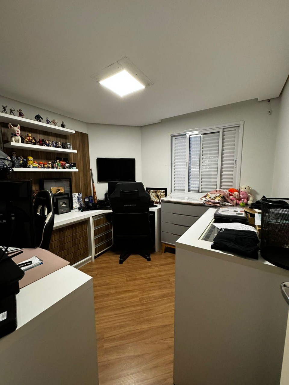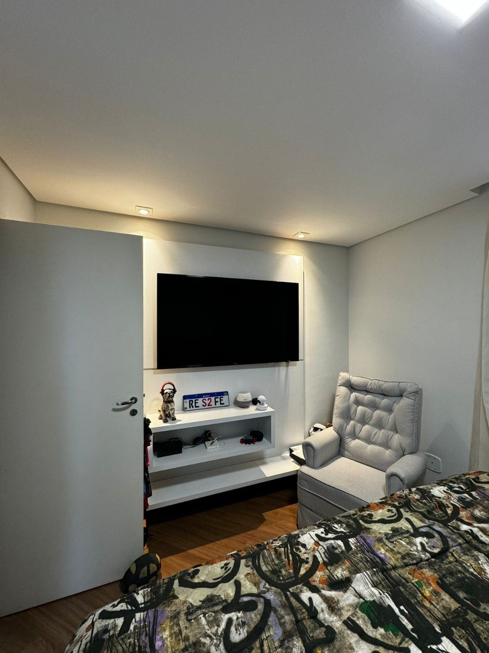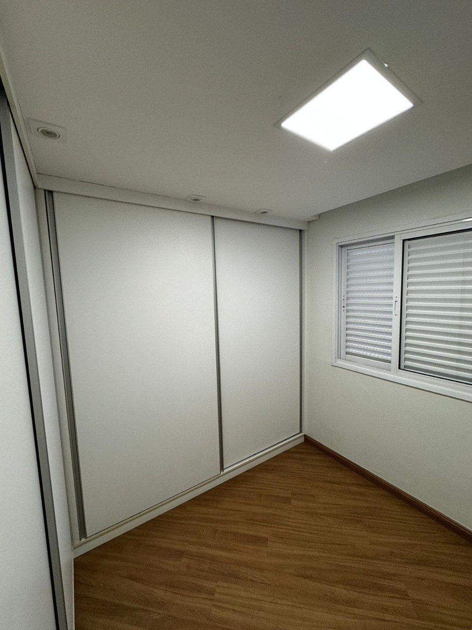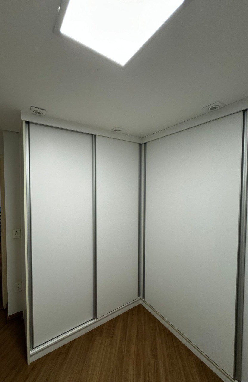 Teto com rebaixamento de gesso e iluminação em LED embutida.