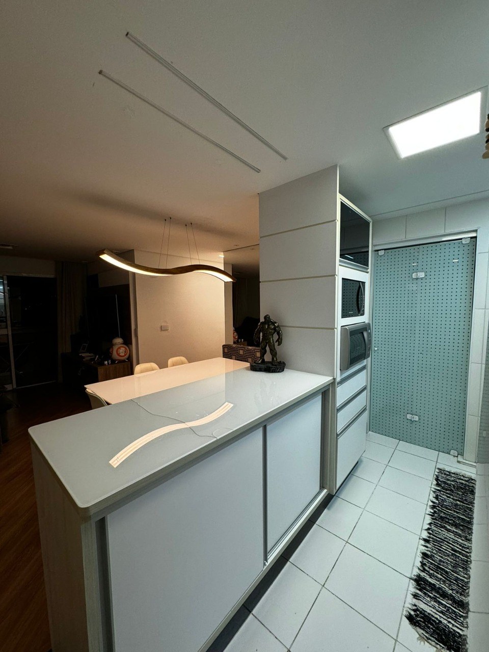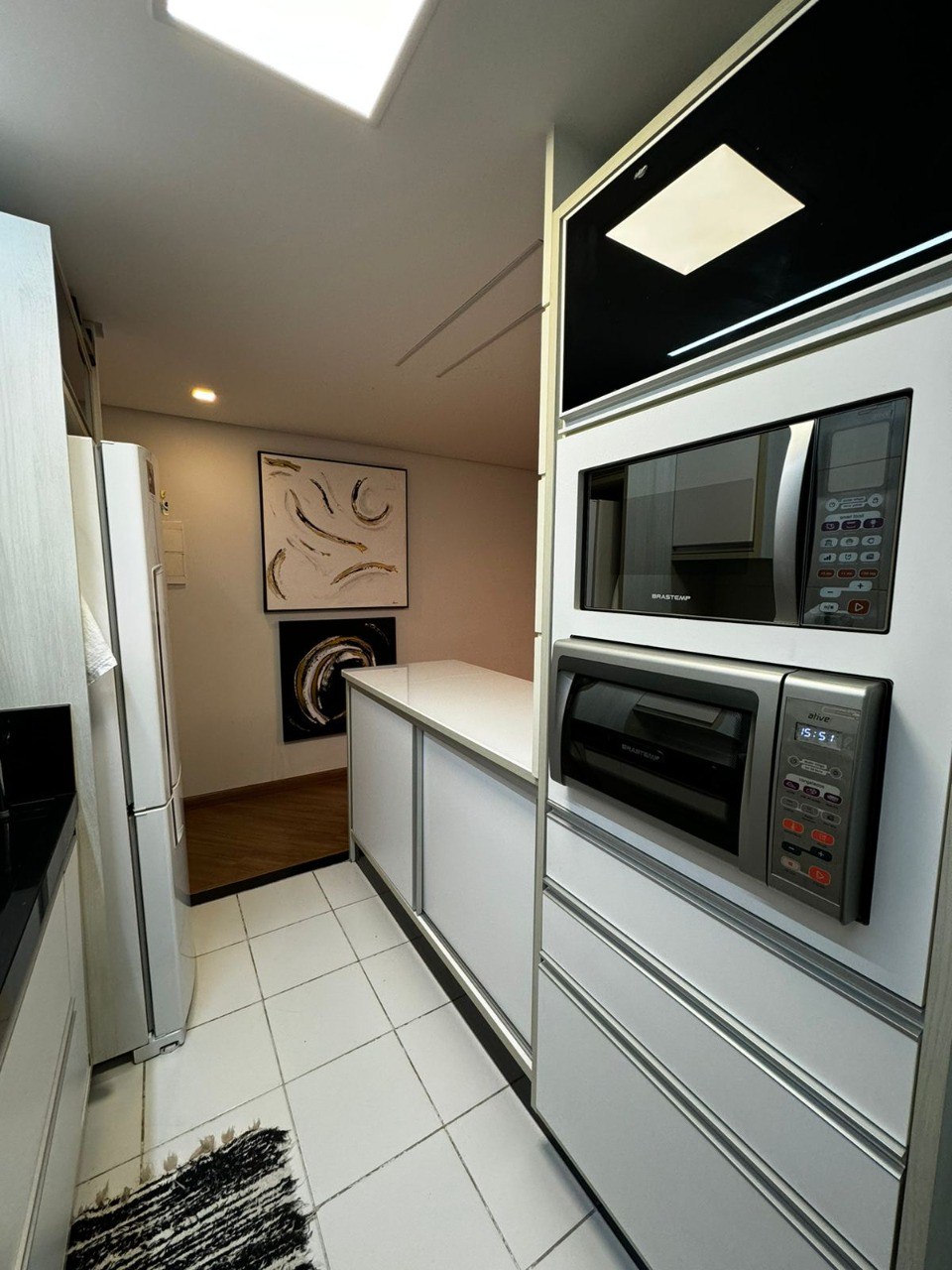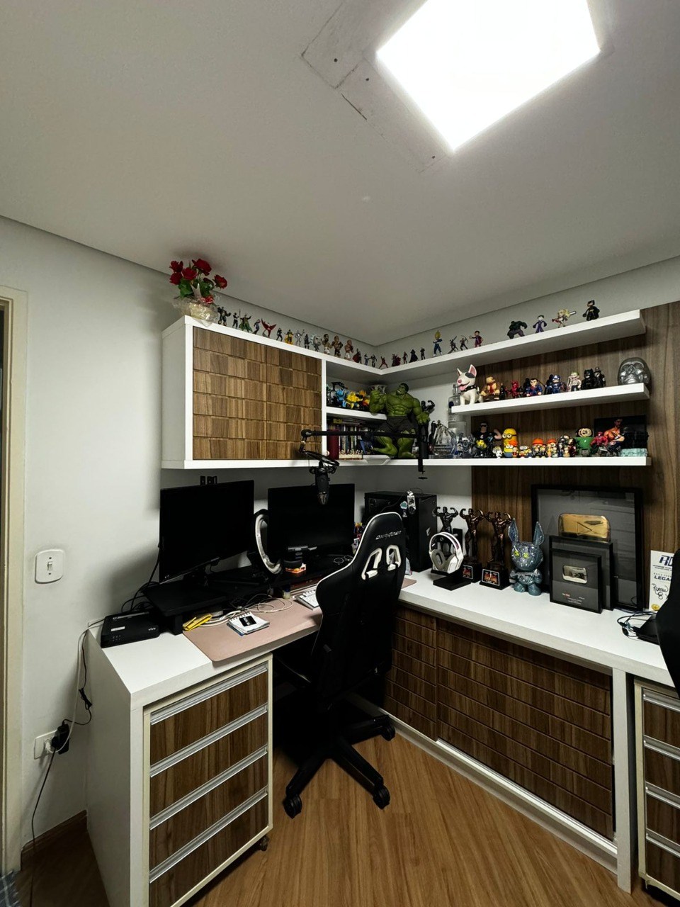Teto com rebaixamento de gesso e iluminação em LED embutida.