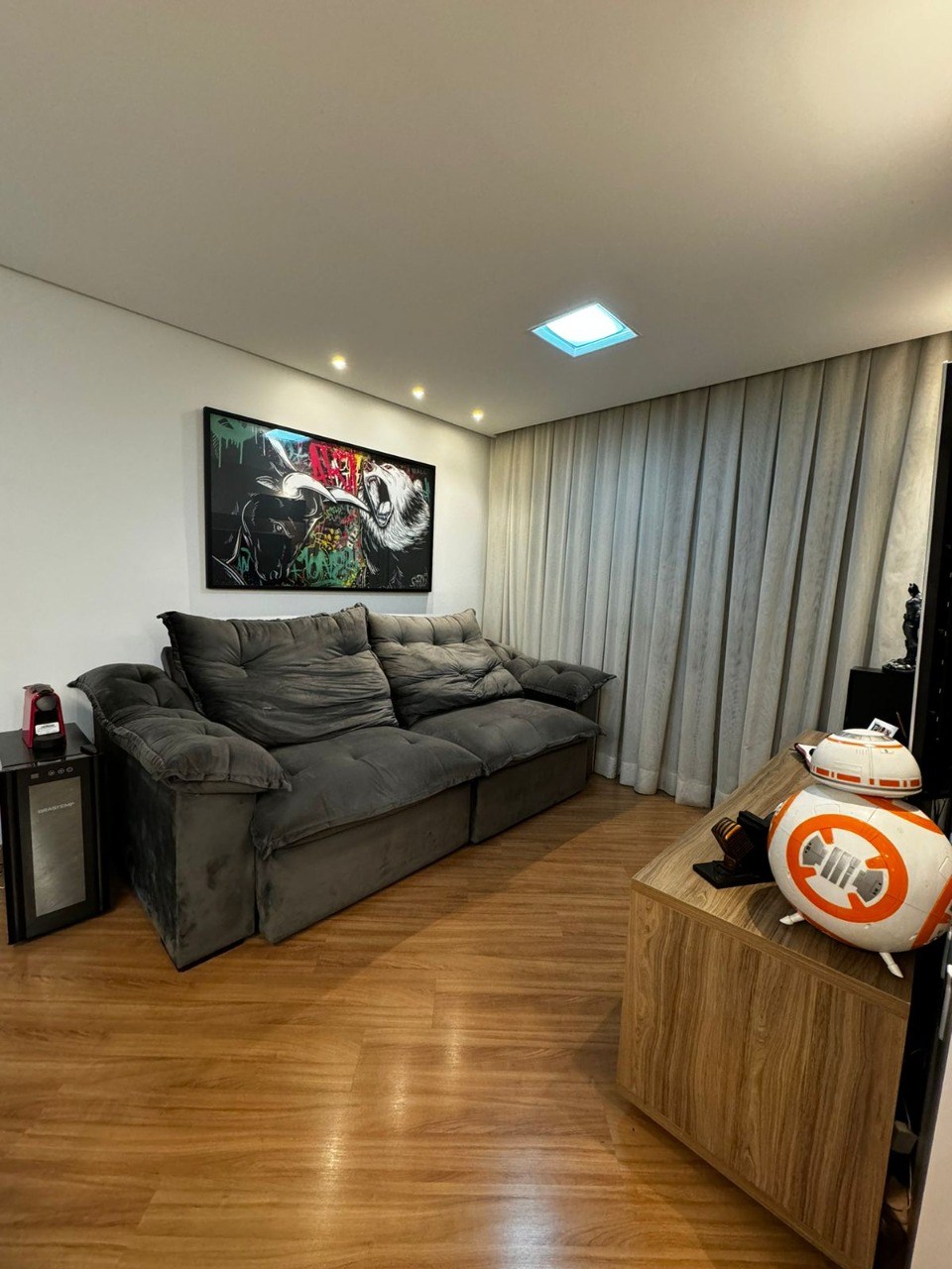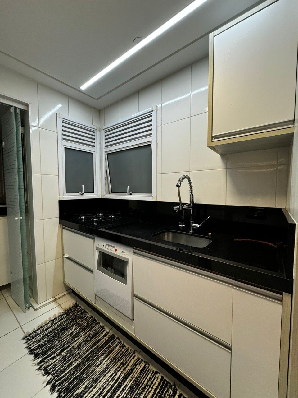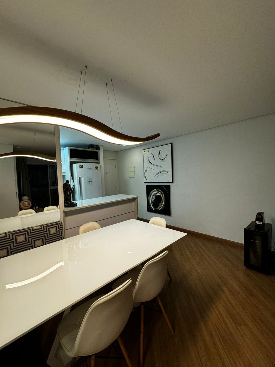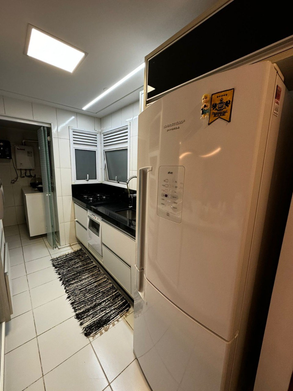 Teto com rebaixamento de gesso e iluminação em LED embutida.