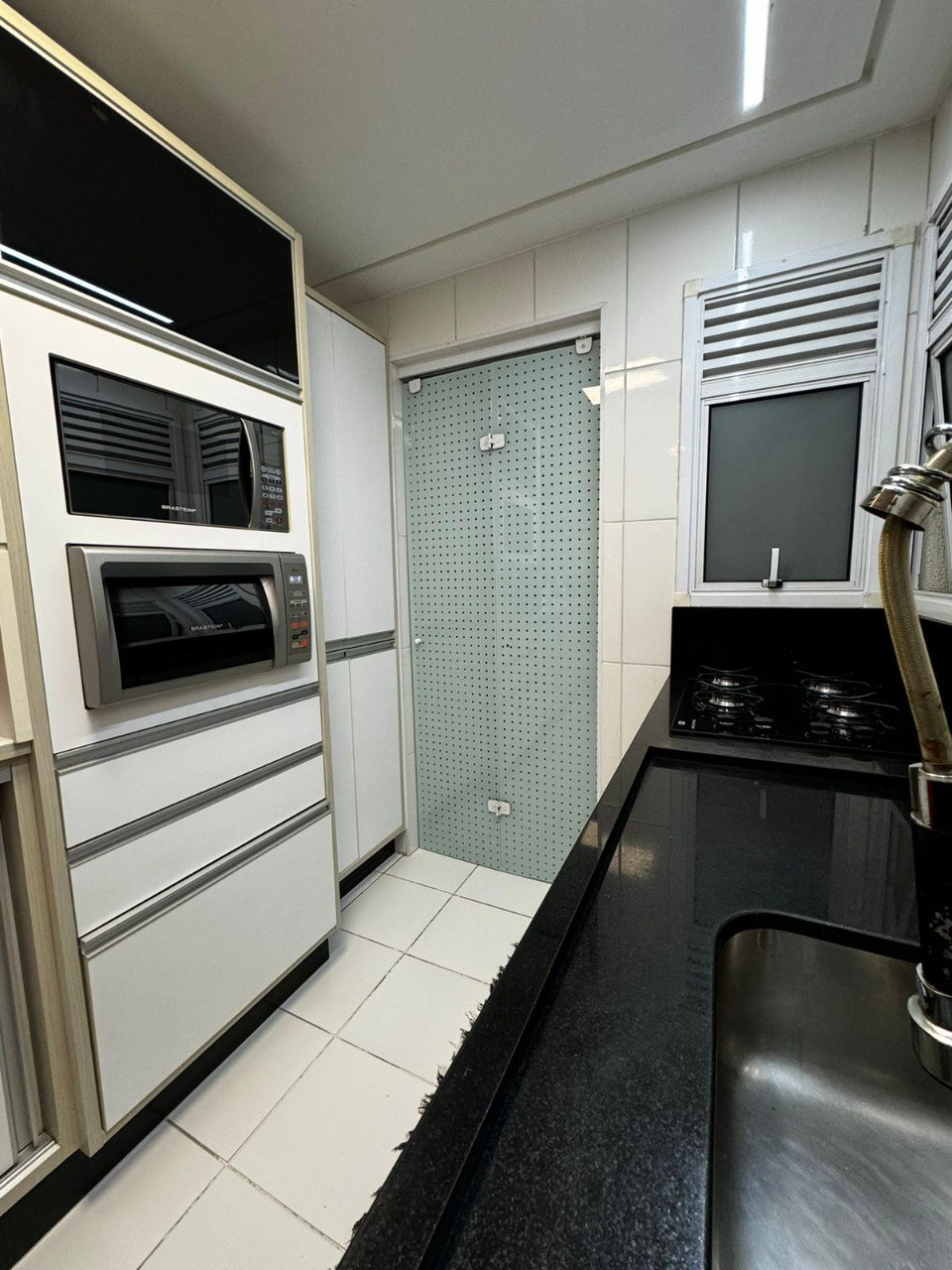 Varanda gourmet com fechamento em vidro.