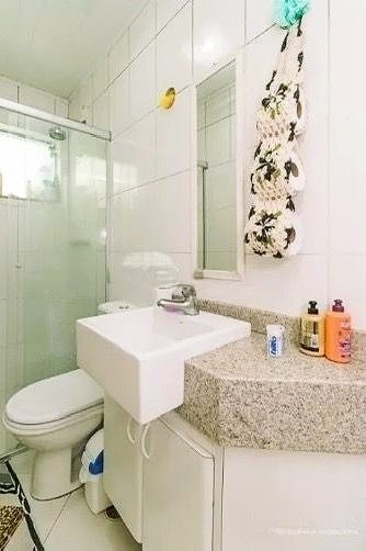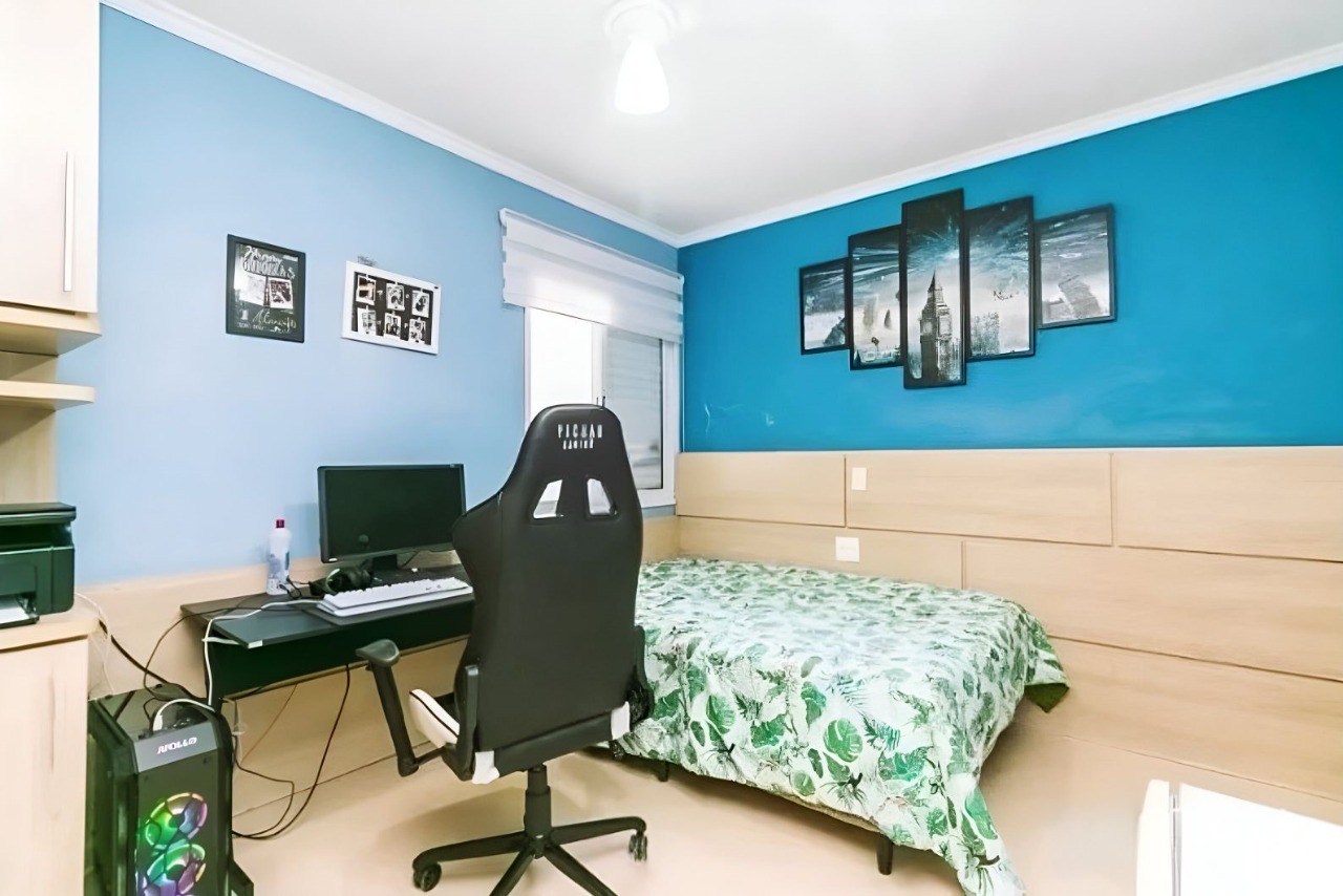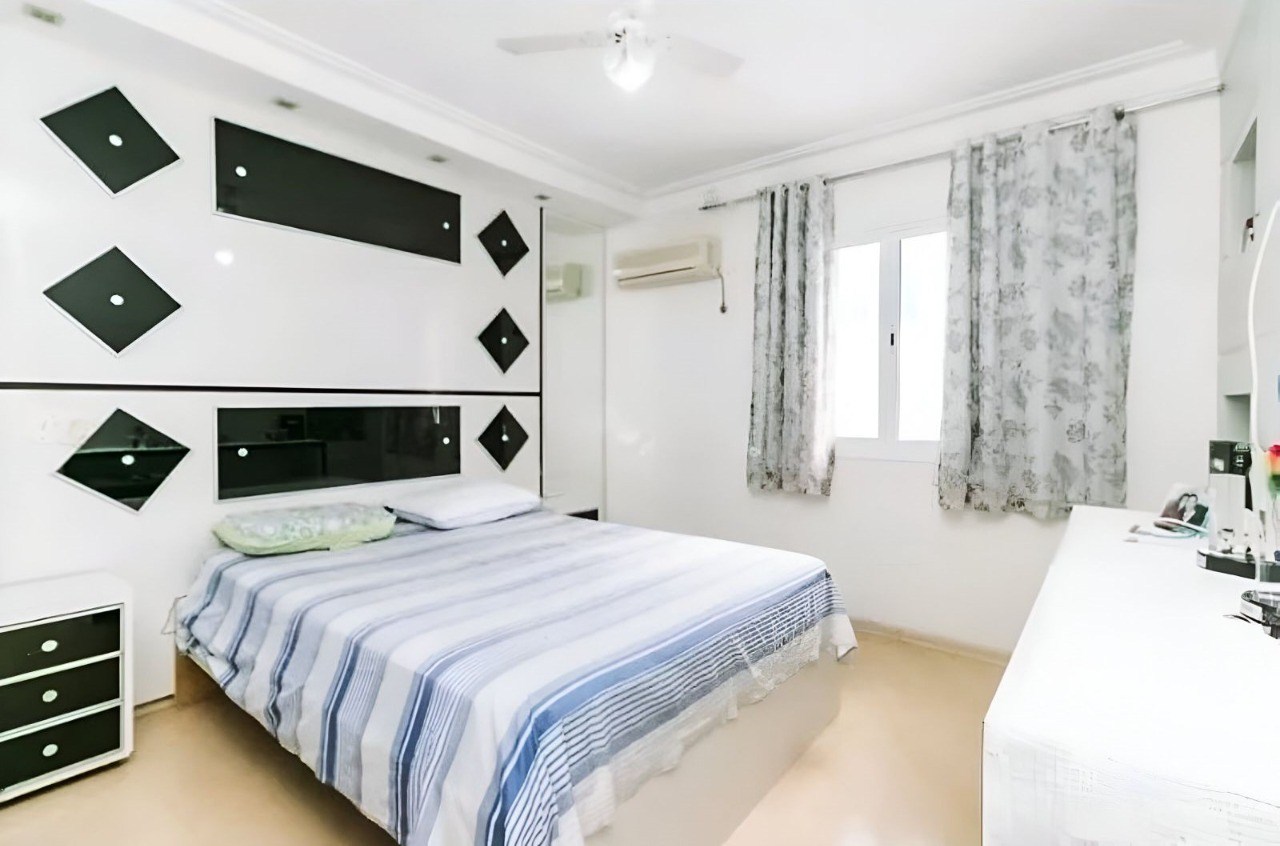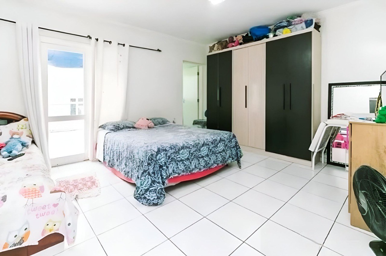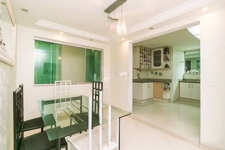 O imóvel possui 3 quartos, 3 banheiros e 2 vagas de garagem cobertas.