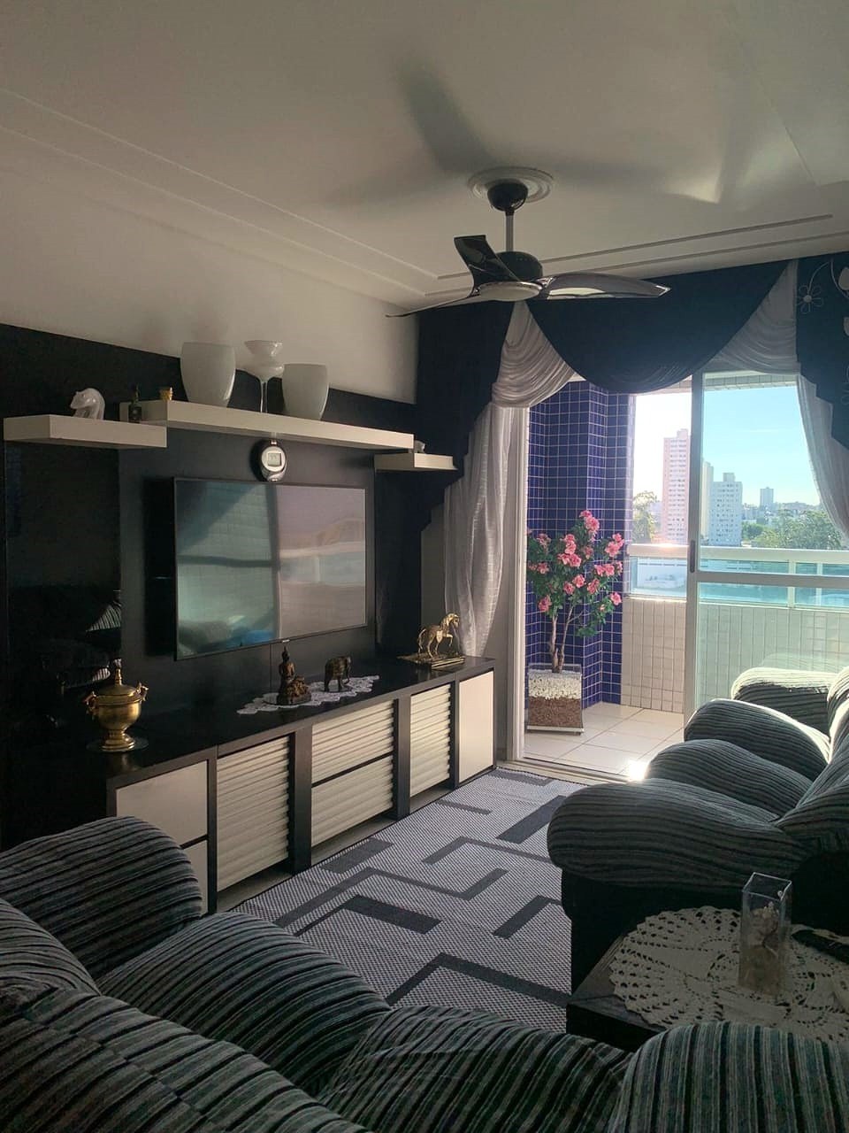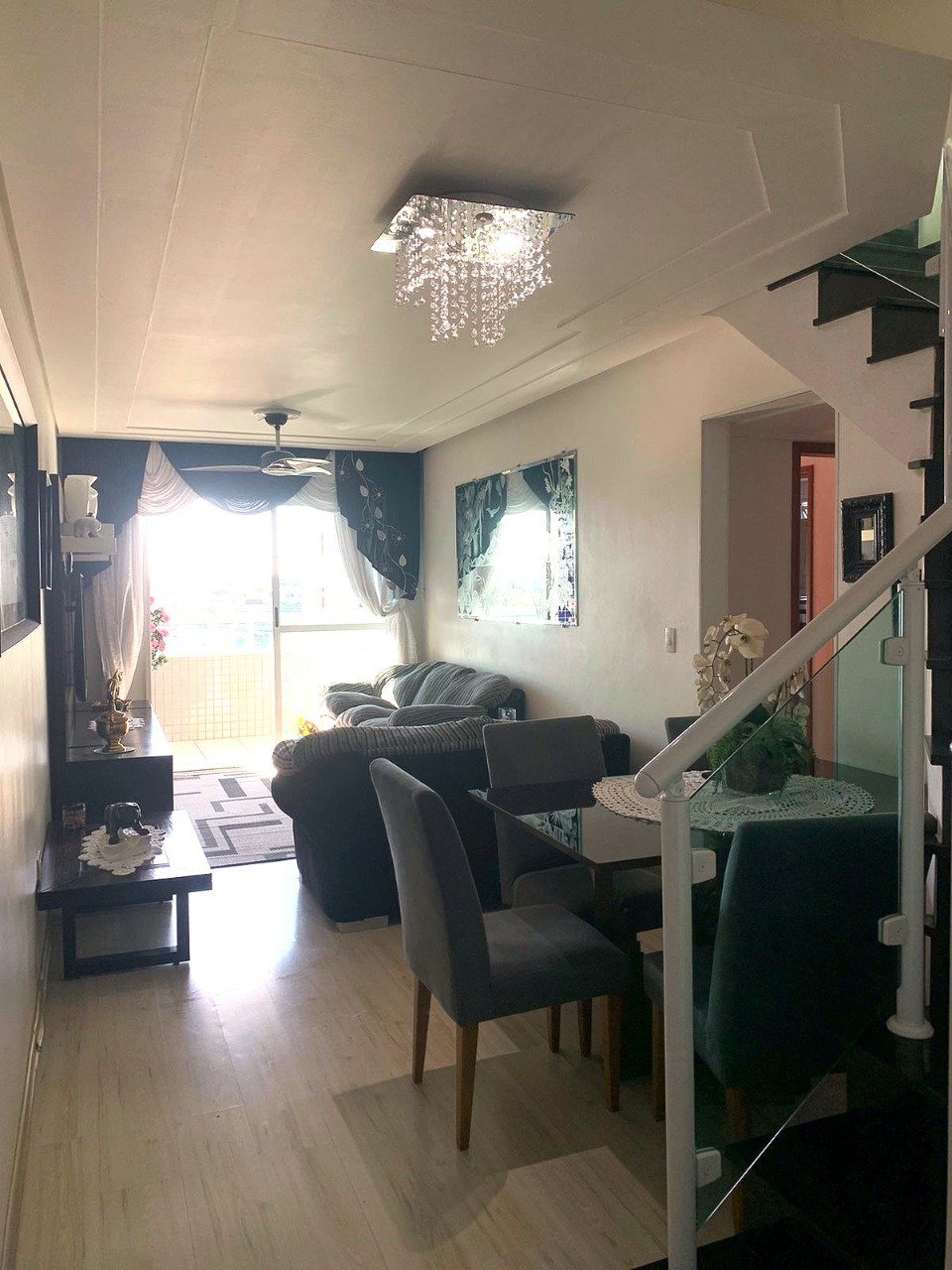 Sala ampla em dois ambientes.