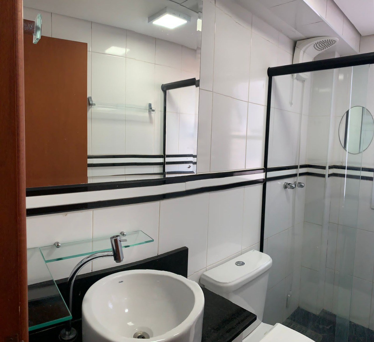 Banheiro com box em vidro.