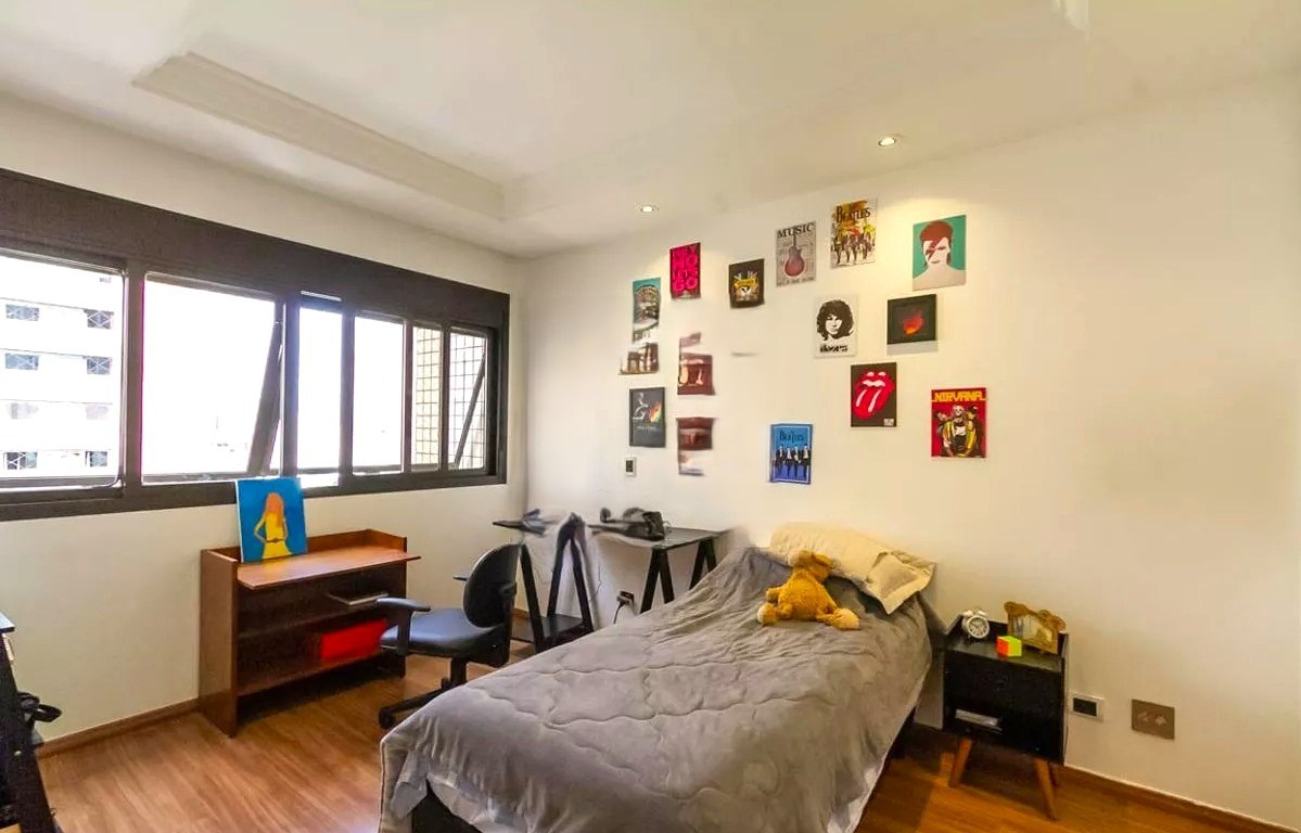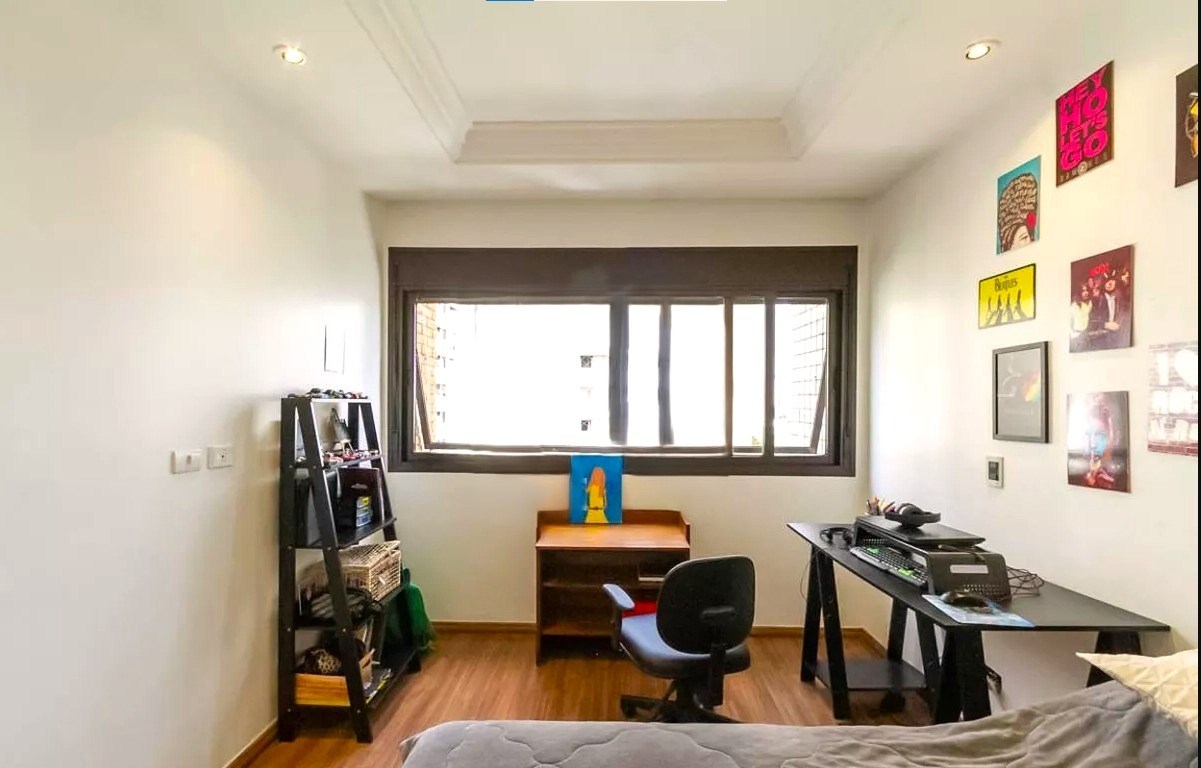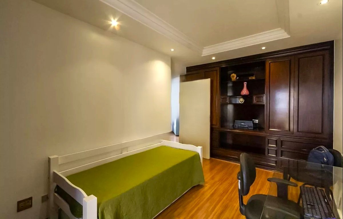 O imóvel possui 4 quartos, sendo 2 suítes, 4 banheiros e 4 vagas de garagem.