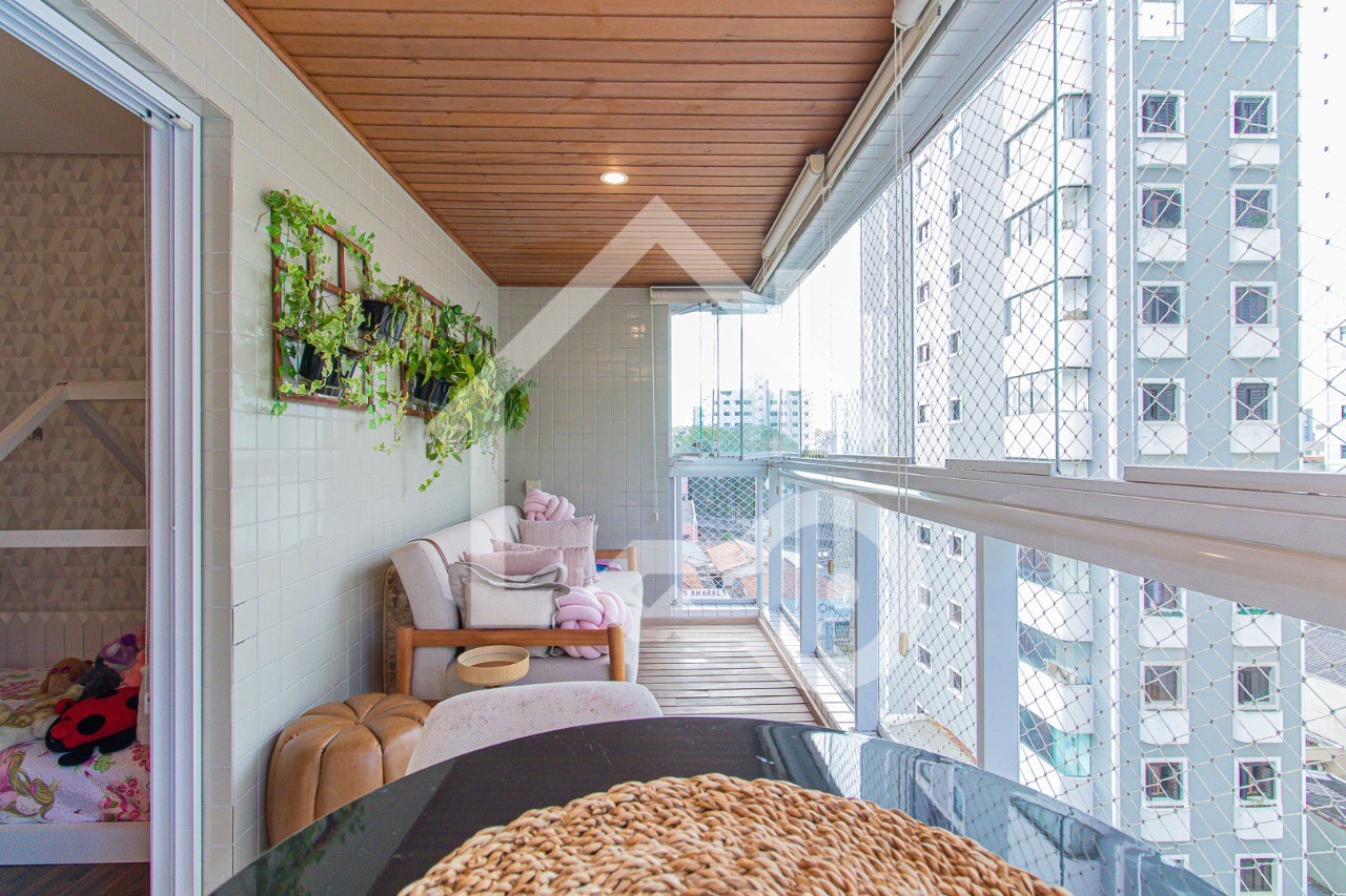Varanda com fechamento em vidro.