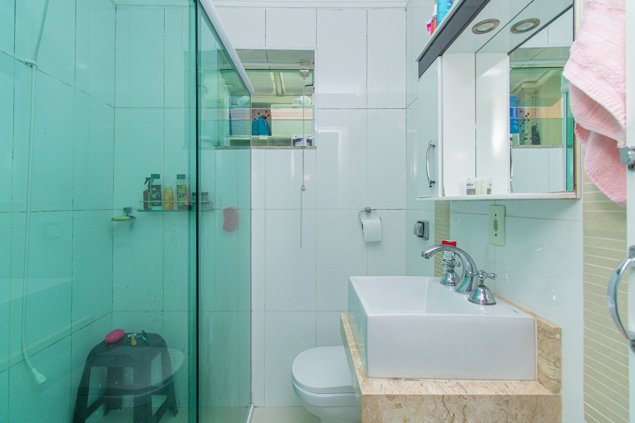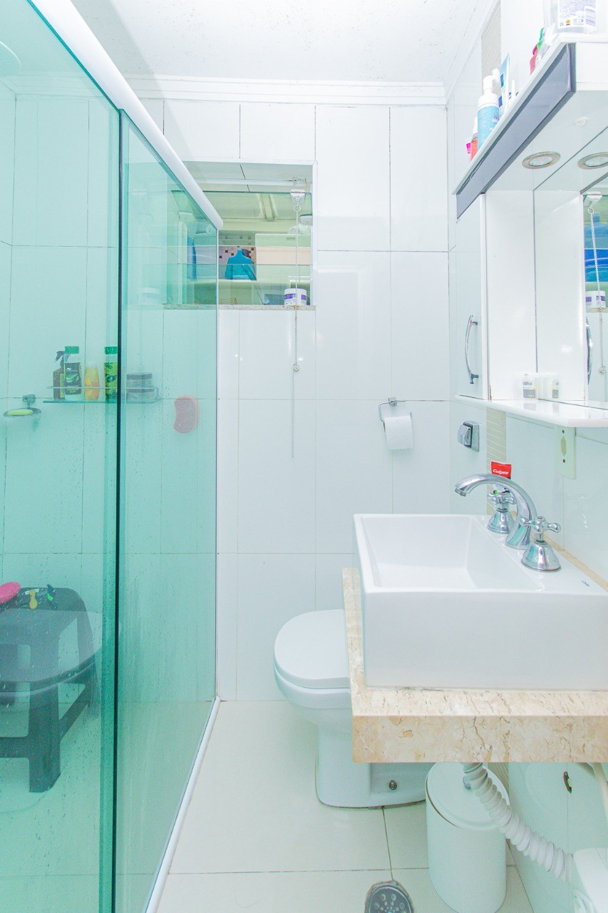 Banheiro com box em vidro.