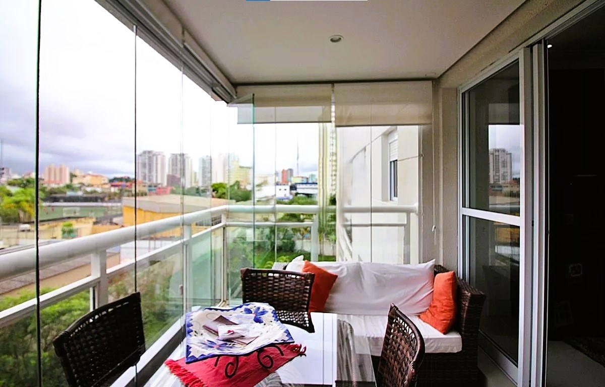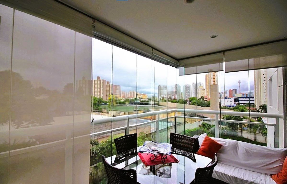 Varanda com fechamento em vidro.