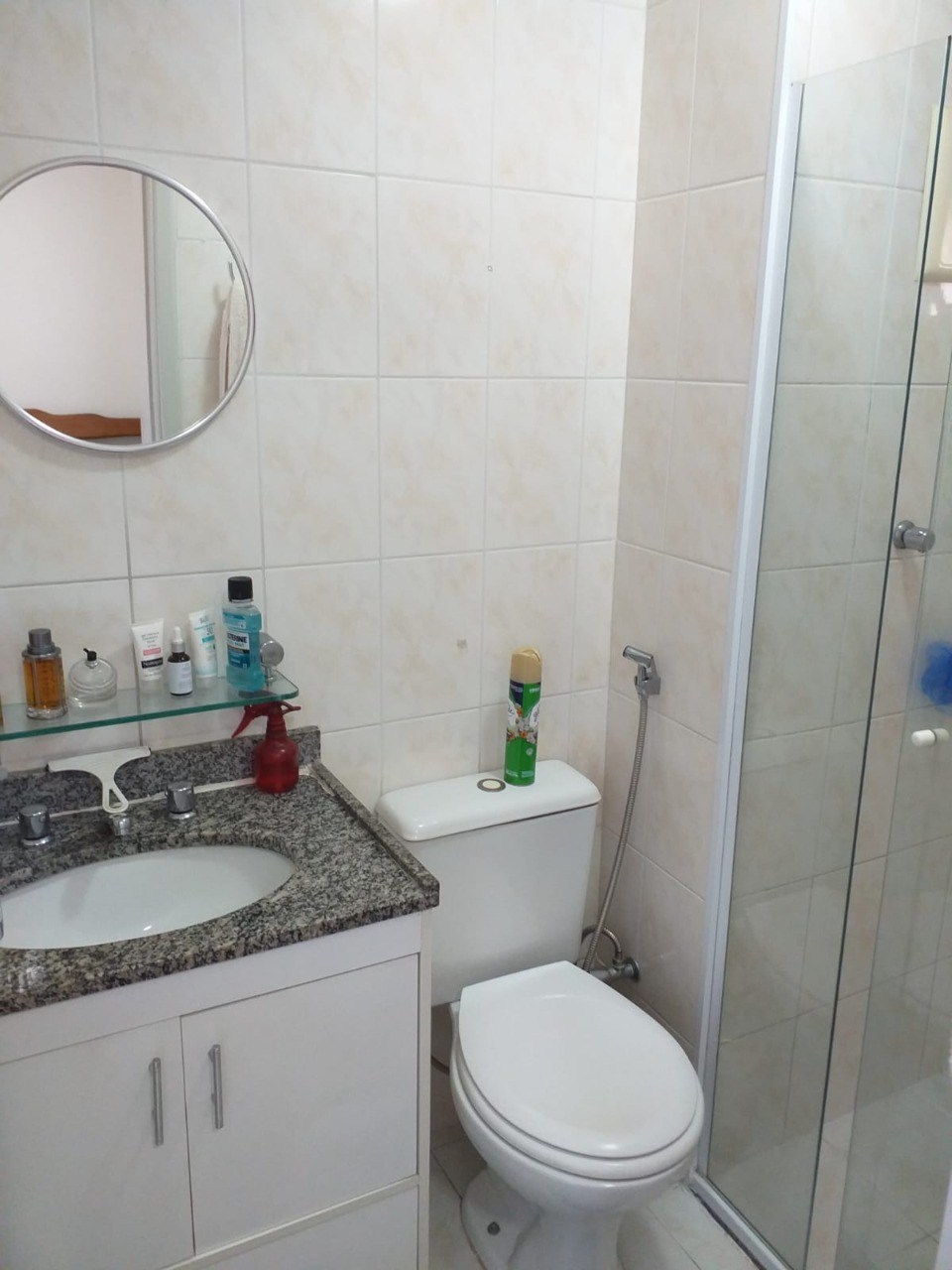 Banheiros com box em vidro.