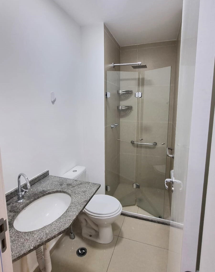 Banheiro com box em vidro.