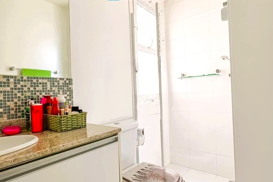 Banheiros com box em vidro.