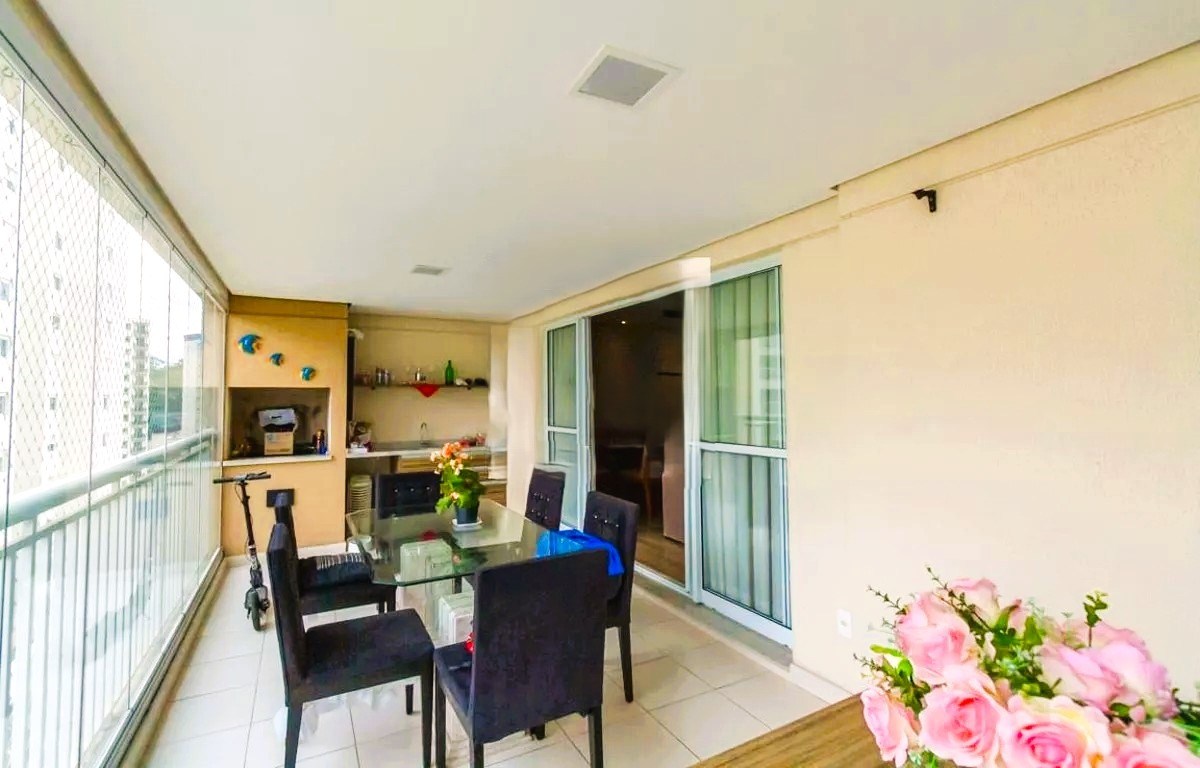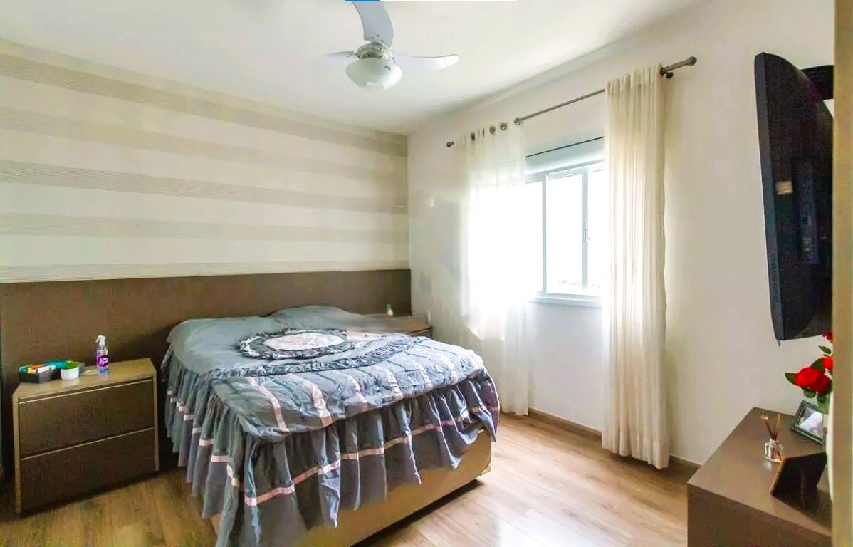 O imóvel possui 4 quartos, sendo 3 suítes, 4 banheiros e 3 vagas de garagem.