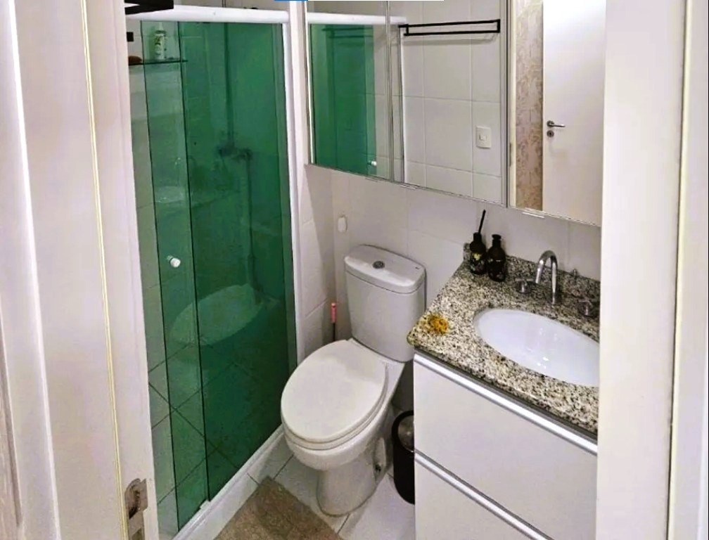 Banheiros com box em vidro.