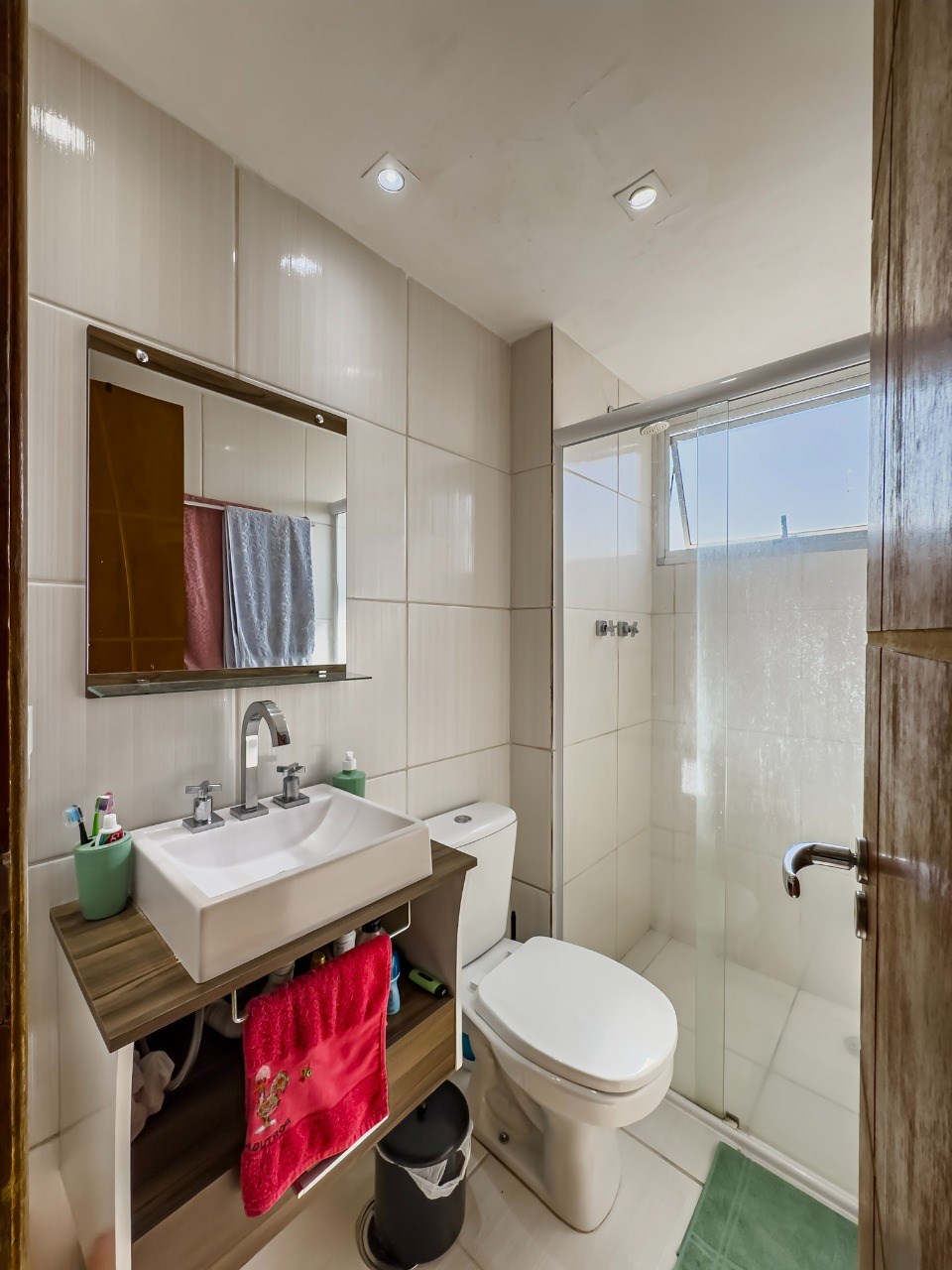 Banheiro com box em vidro.