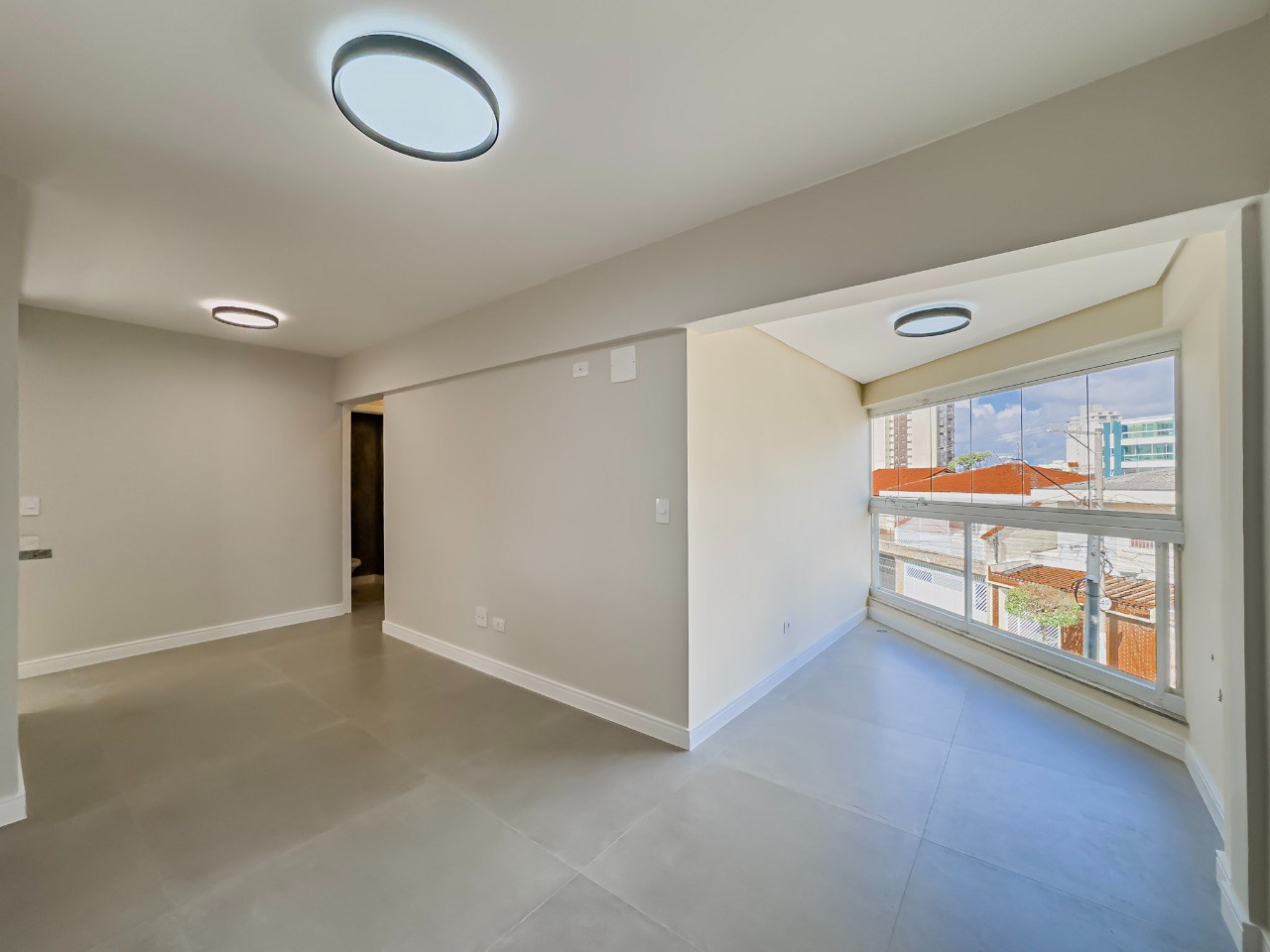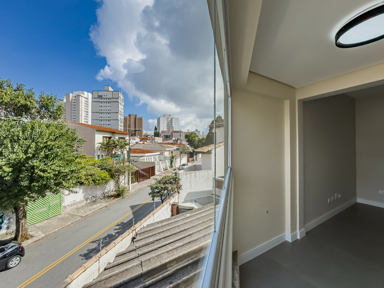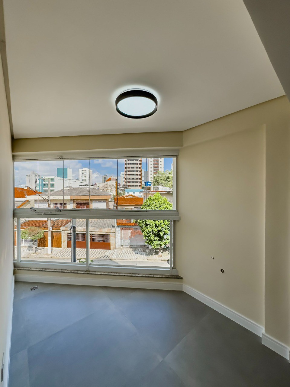 Varanda com fechamento em vidro.