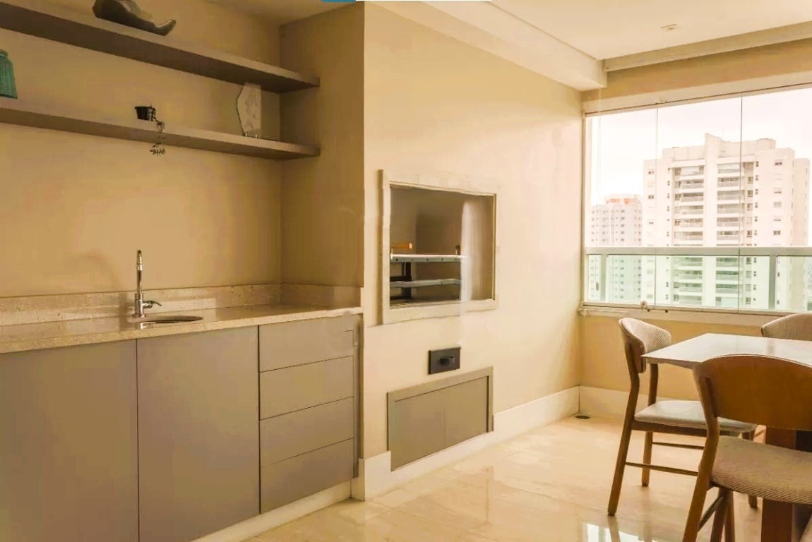 O imóvel possui 4 quartos, sendo 4 suítes, 5 banheiros e 4 vagas de garagem.