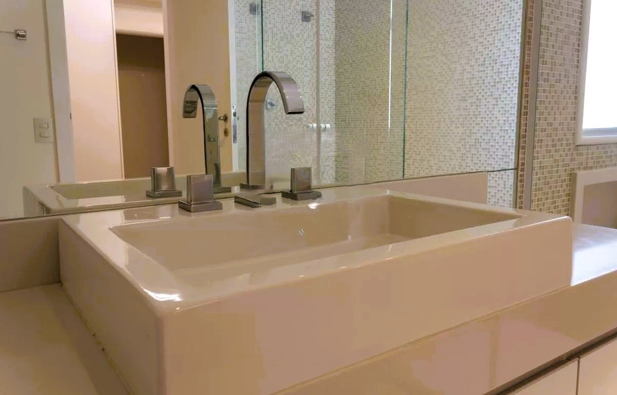 Banheiro com box em vidro.
