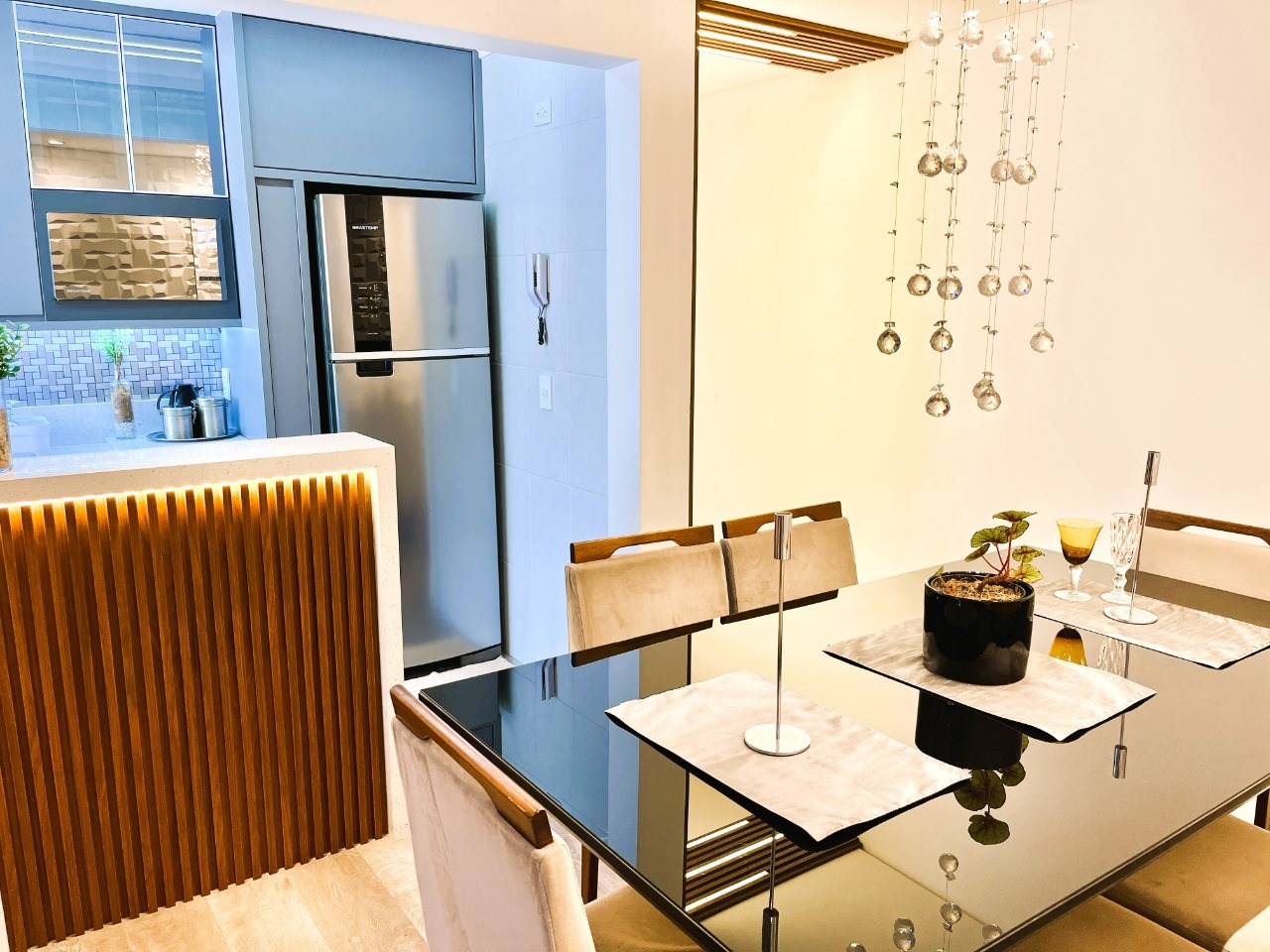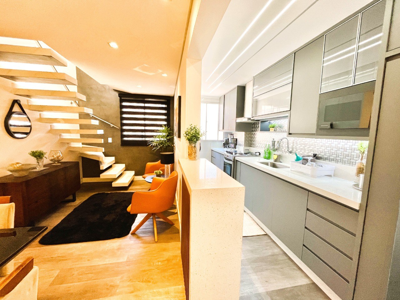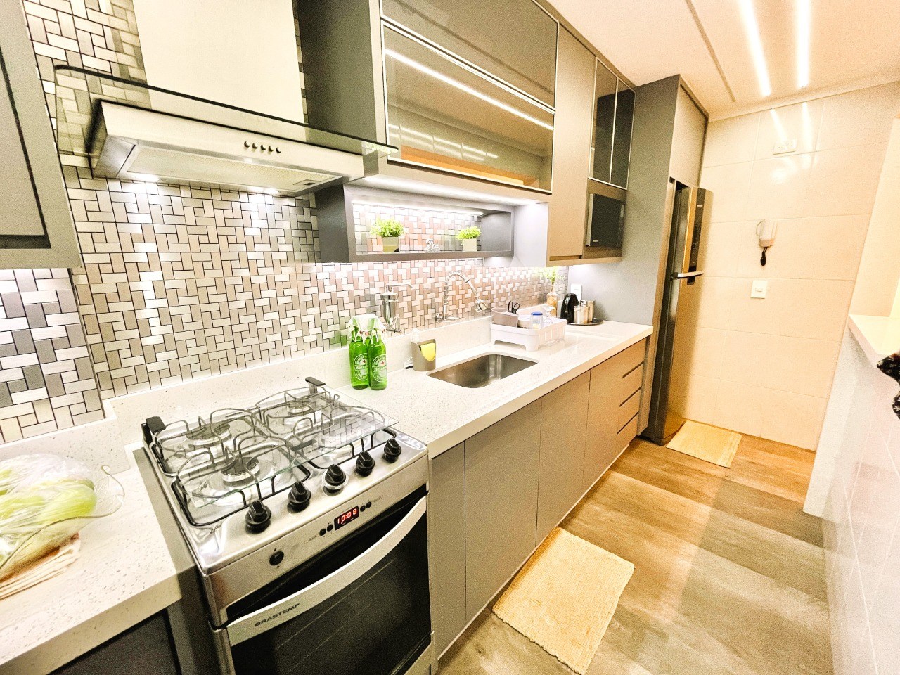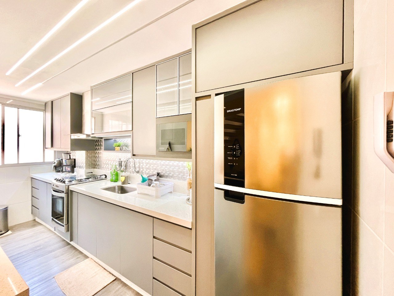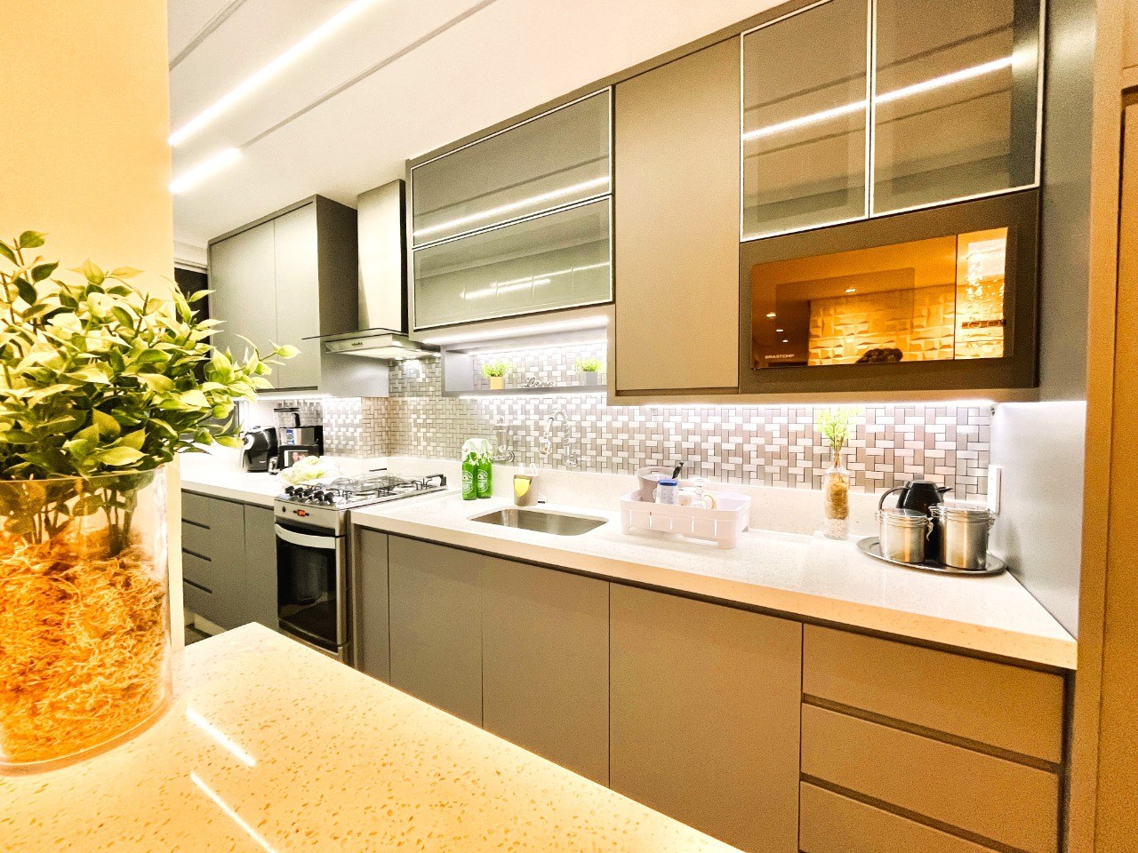 Cozinha com armários planejados.