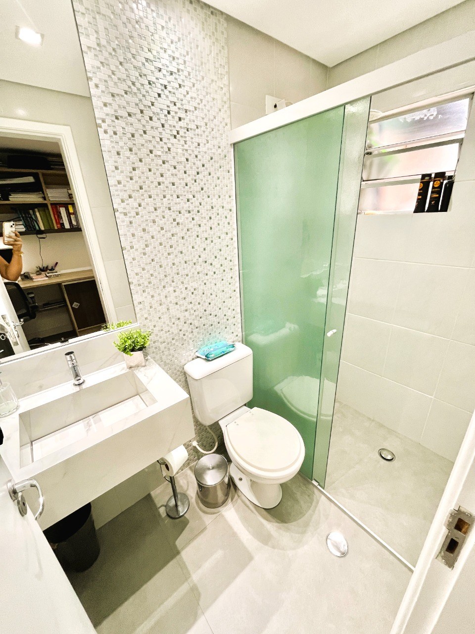 Banheiros com box em vidro.