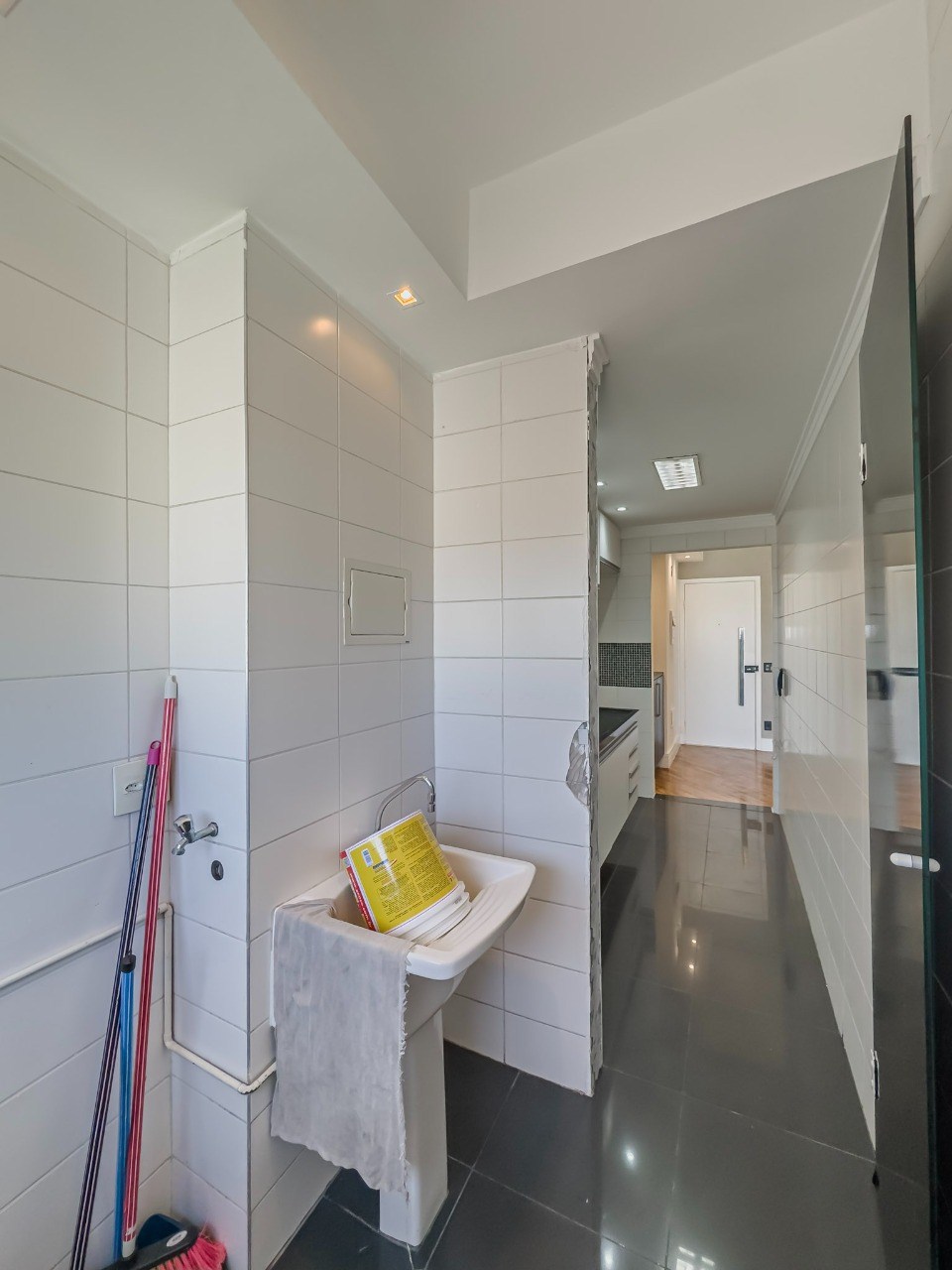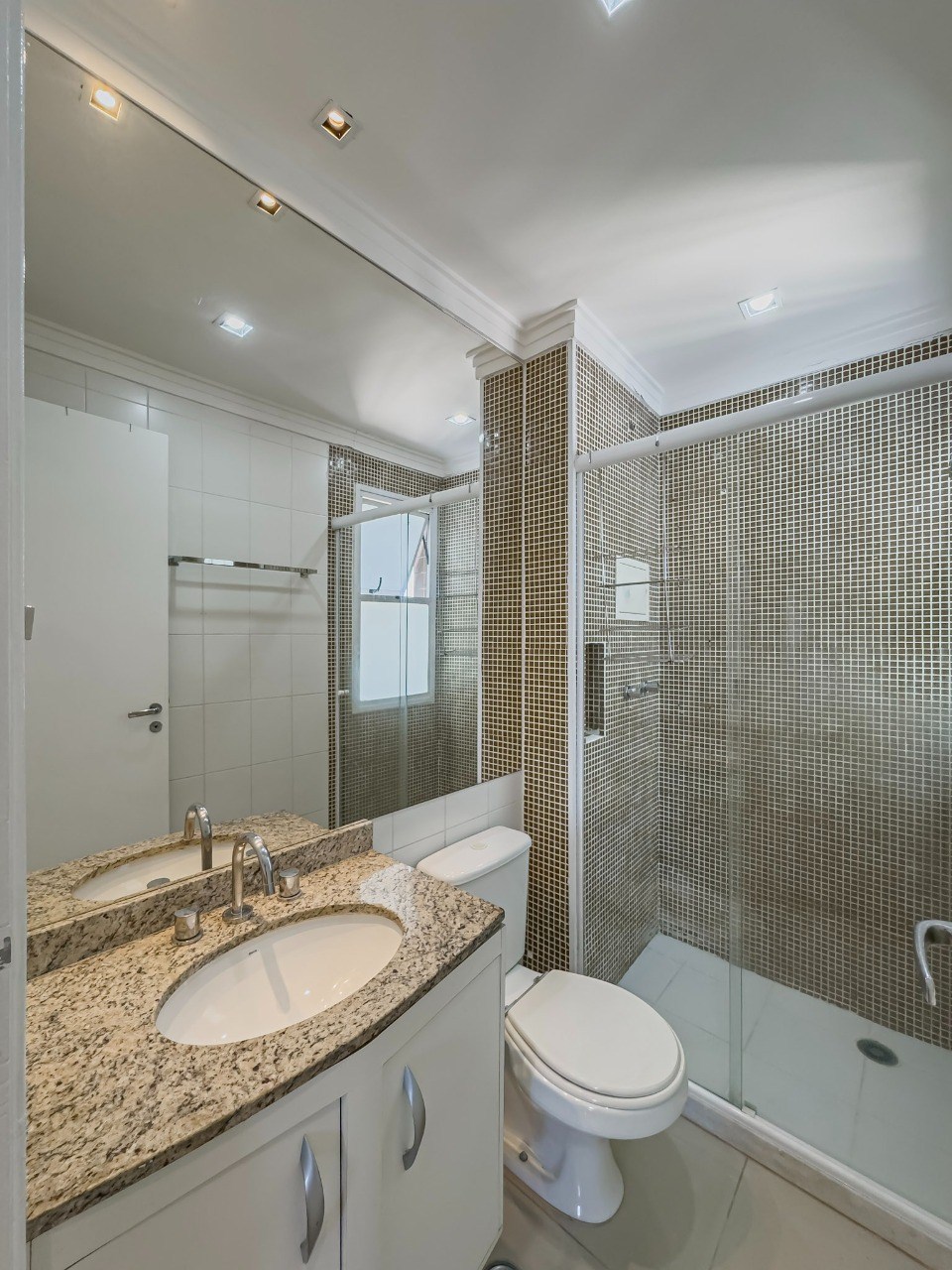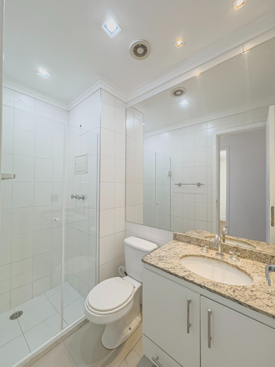 Banheiro com box em vidro.