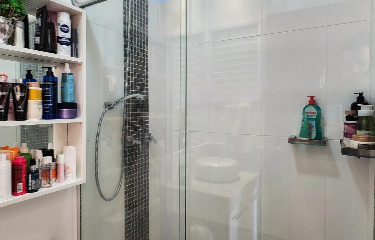Banheiros com box em vidro.