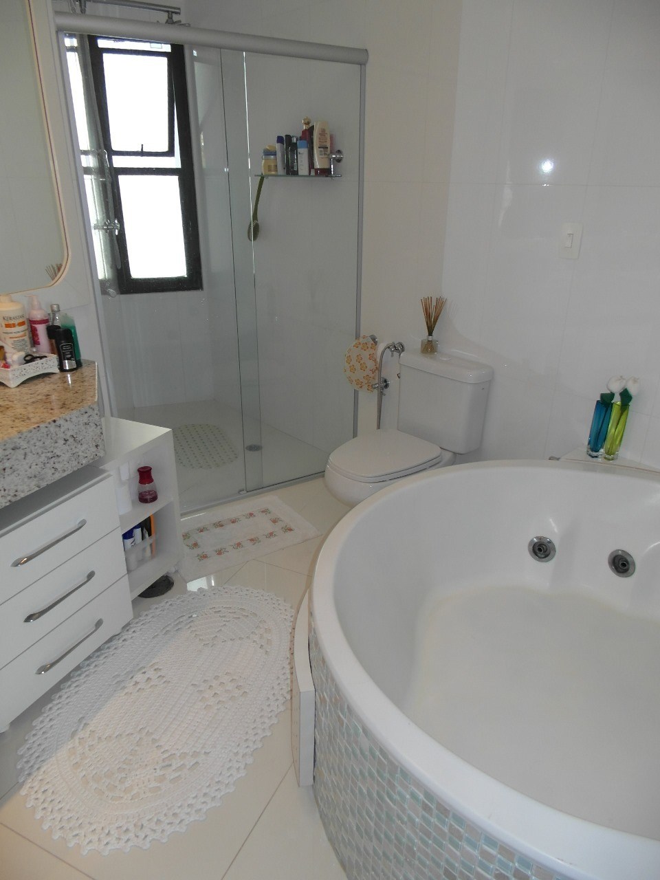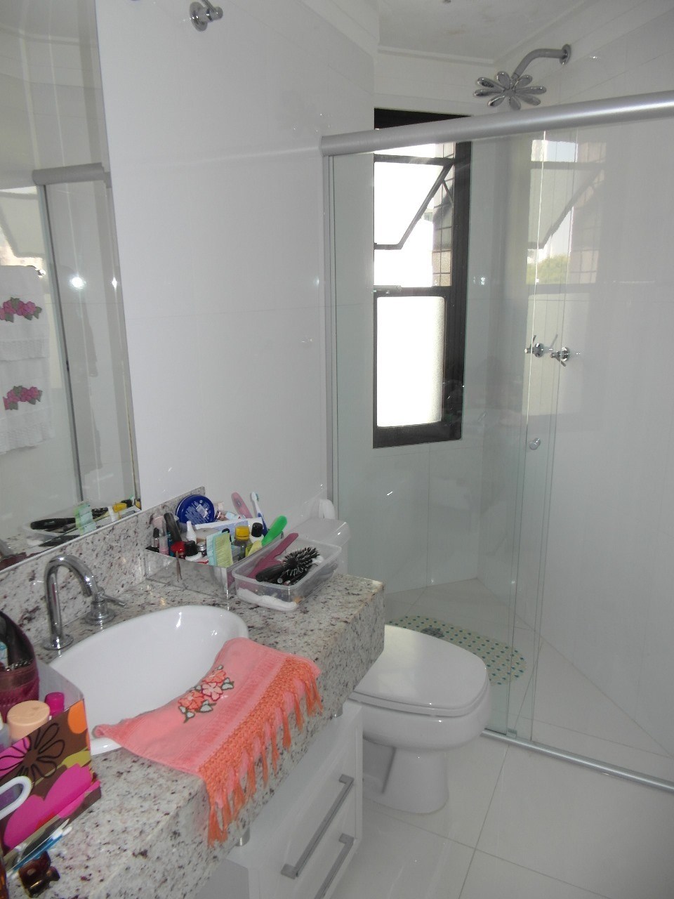 Banheiros com box em vidro.