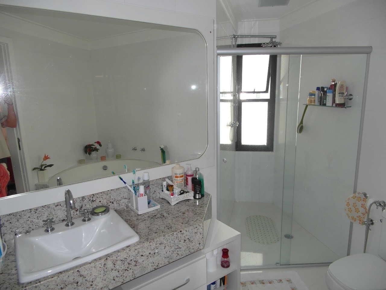 Banheiros com box em vidro.