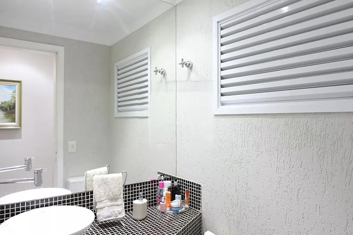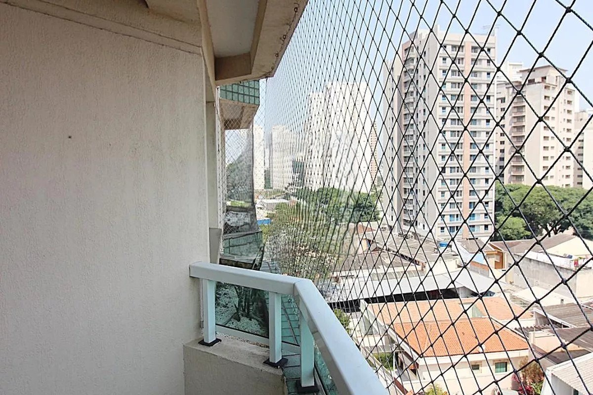 Varanda com telas de proteção.