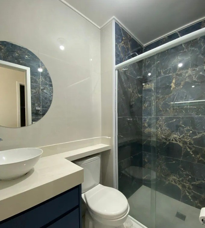 Banheiros com box em vidro.