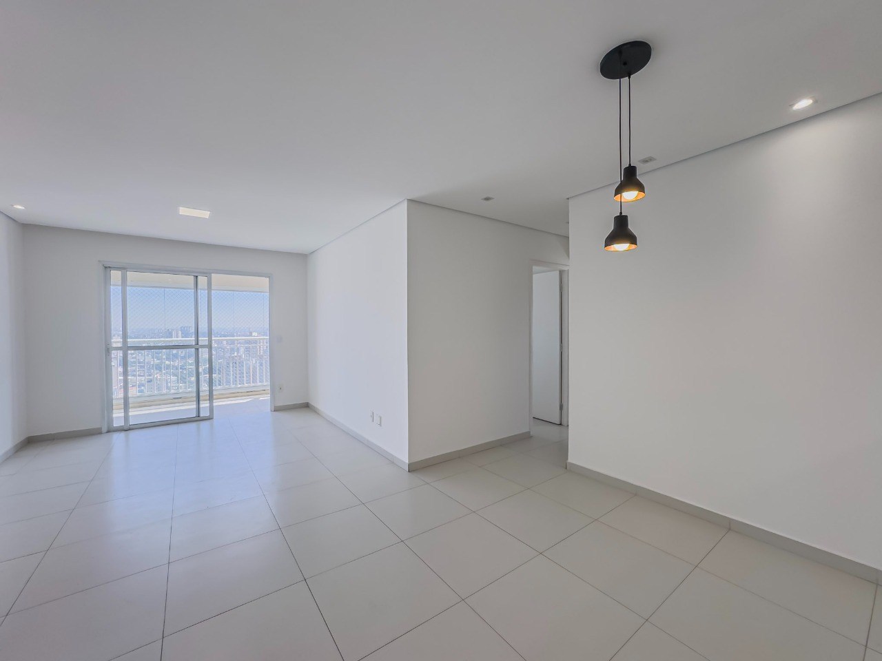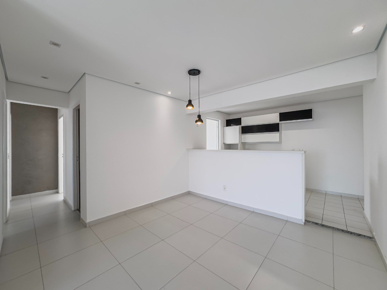 Sala ampla em dois ambientes.