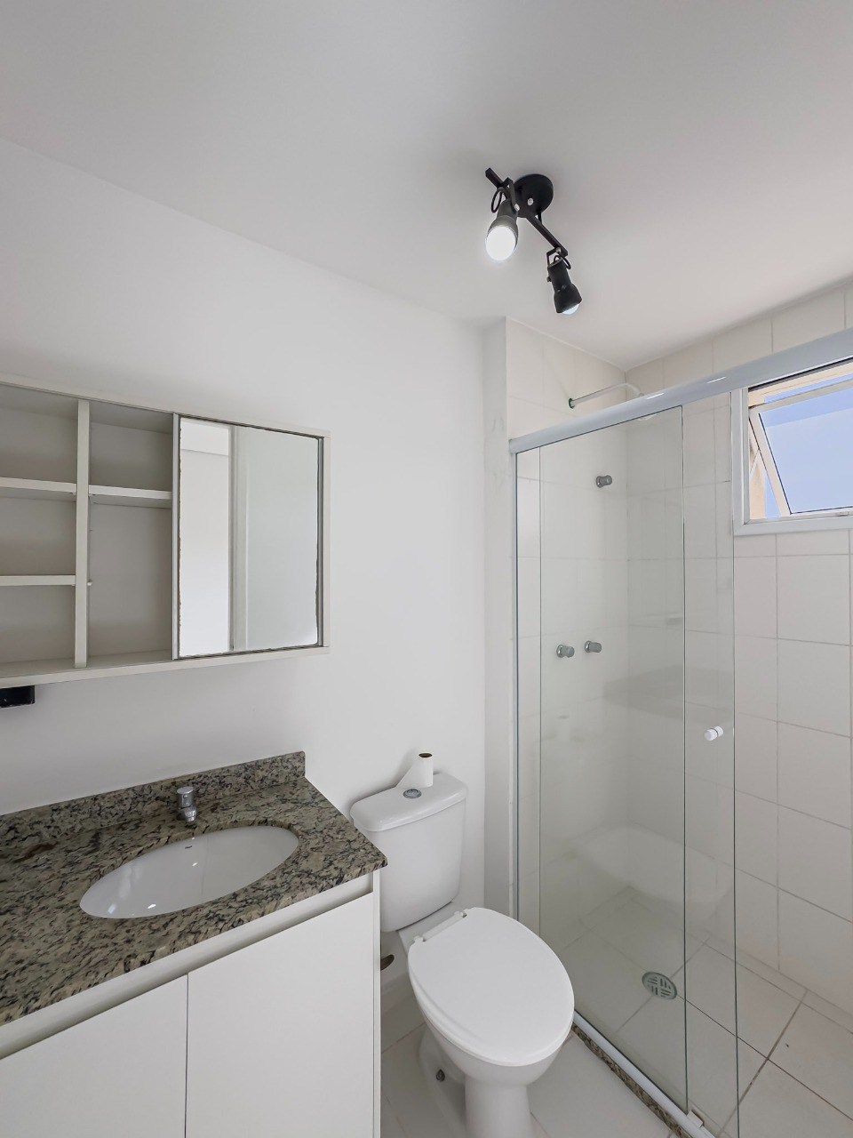 Banheiros com box em vidro.