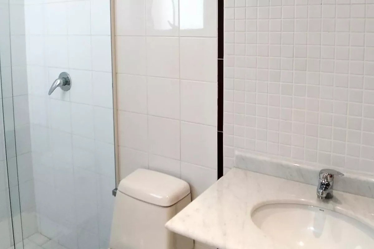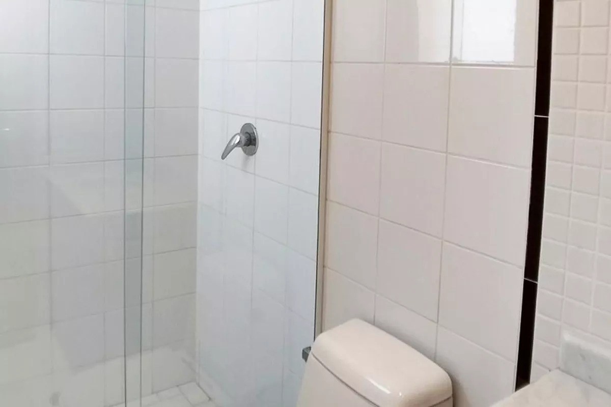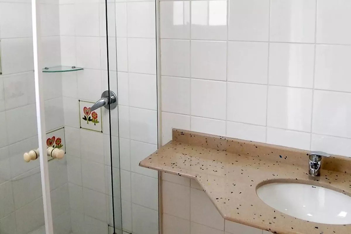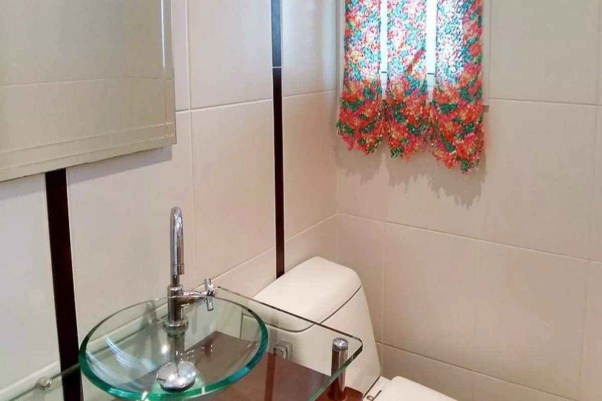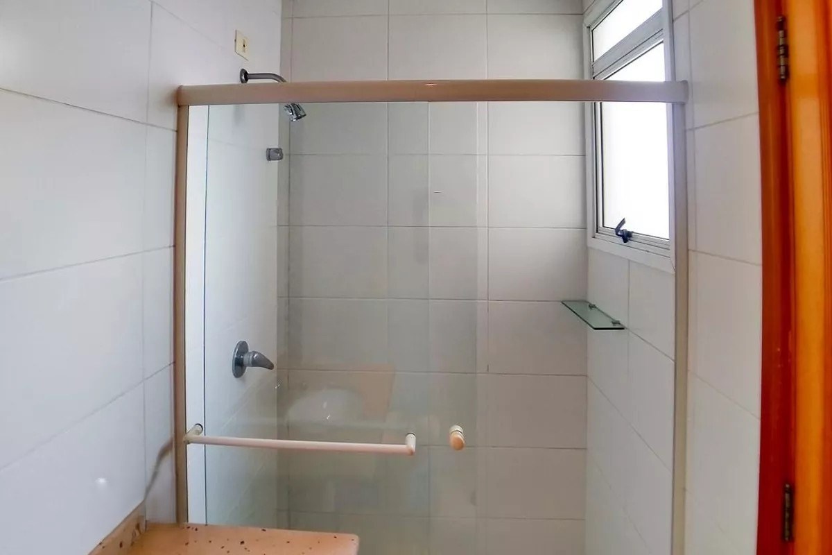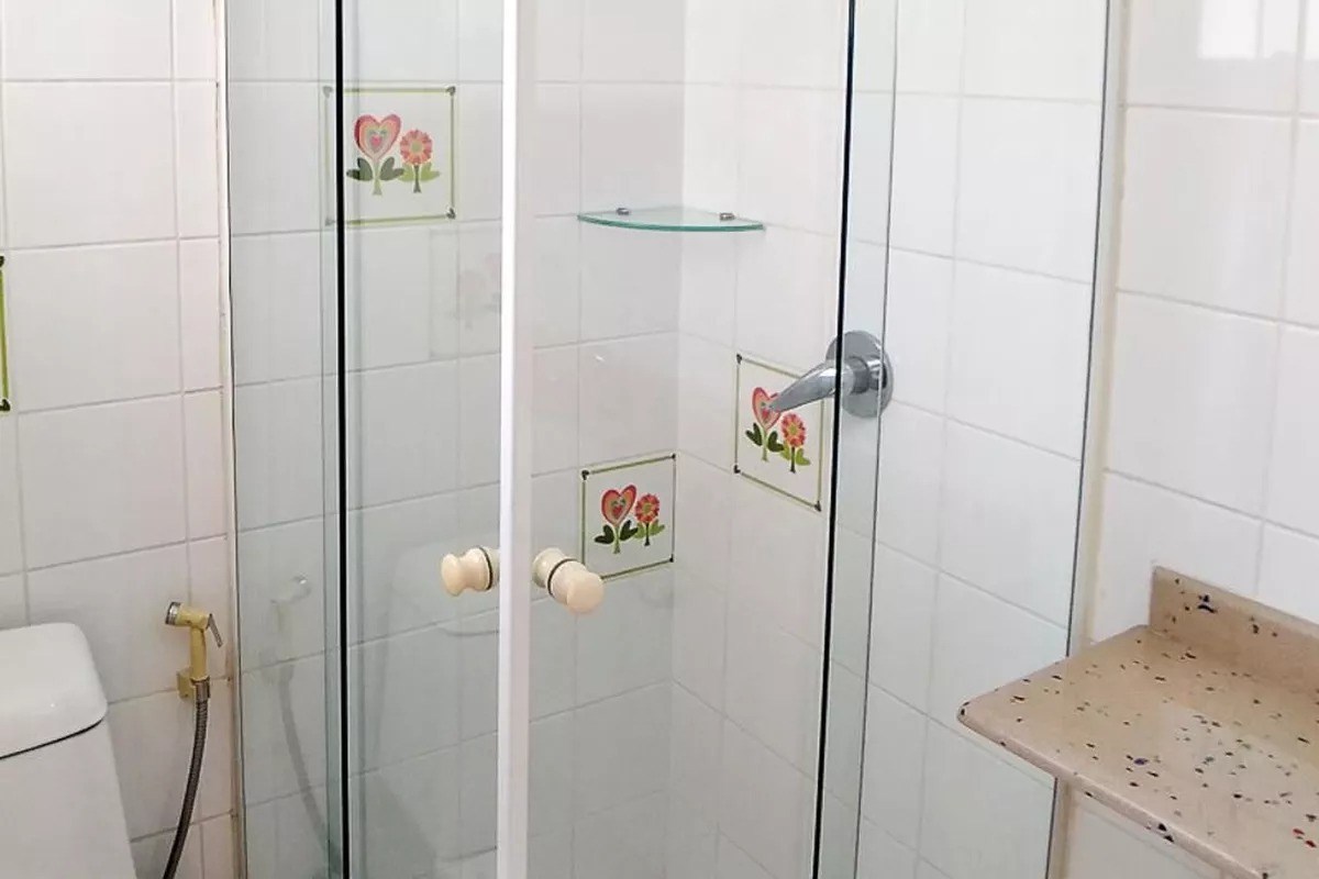 Banheiro com box em vidro.