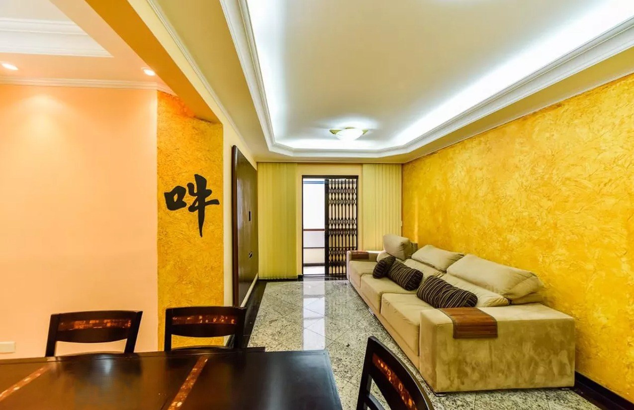 Sala ampla em dois ambientes.