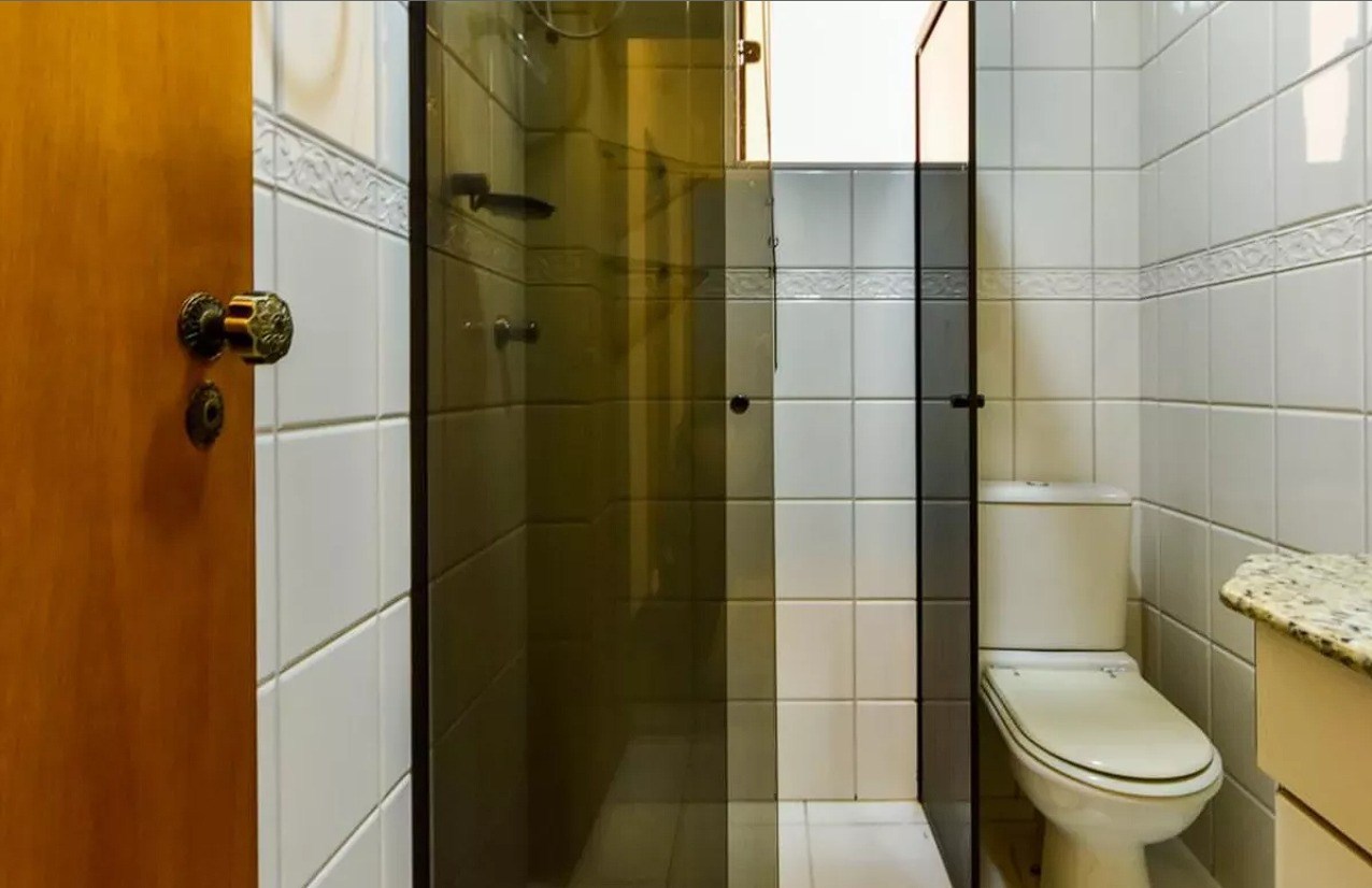 Banheiros com box em vidro.